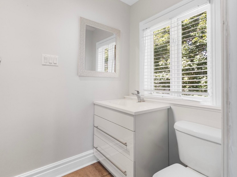 The bathroom, also fully renovated, showcases contemporary materials and a polished aesthetic. Upstairs, two inviting bedrooms provide comfort, flexibility, and natural light, enhanced by the character and warmth that define Hudson's classic homes.