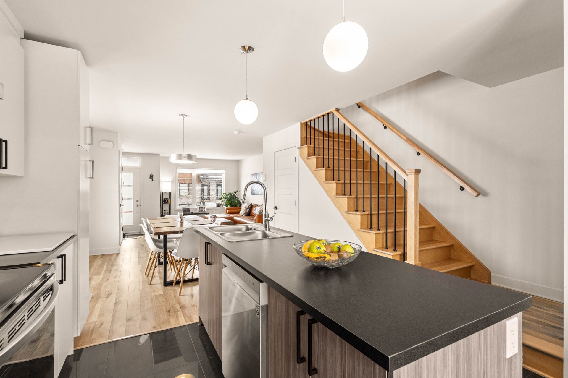 Welcome to 44 Rue Morell unit 12! Quality built corner unit townhouse in a very family-friendly area of Beauharnois! This property offers an open concept main level with spacious living and dining room, kitchen with island and ample cabinetry for storage, followed by the powder room. Upstairs are three spacious bedrooms with a full bathroom, including separate glass shower and bath. The finished basement has a family room and full bathroom with washer and dryer. Close to Highway 30, public transportation, amenities, schools, and parks!