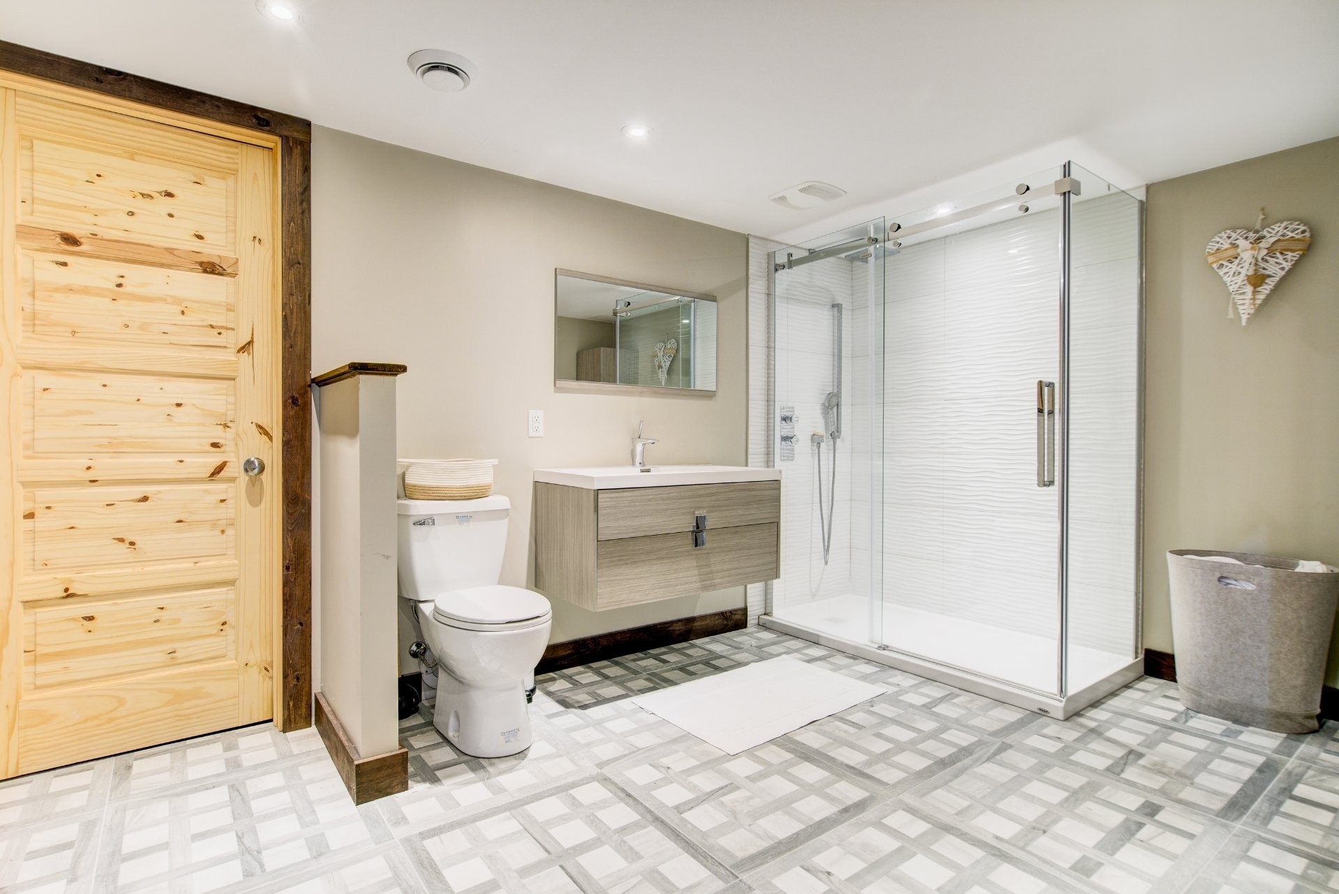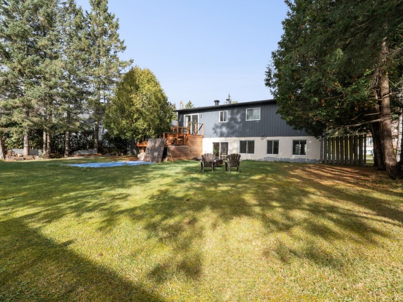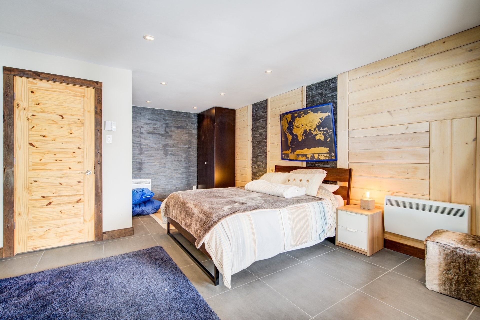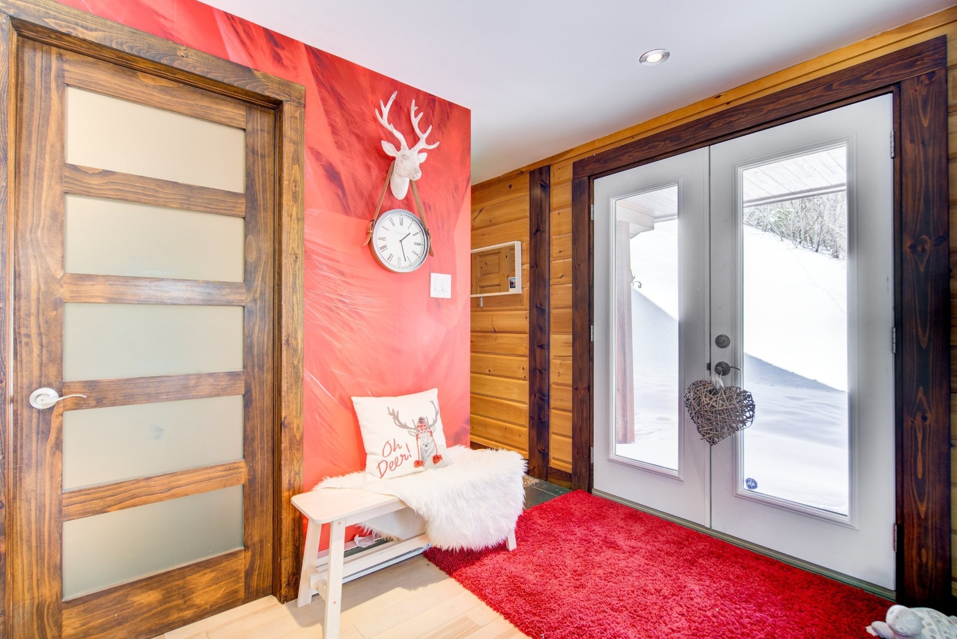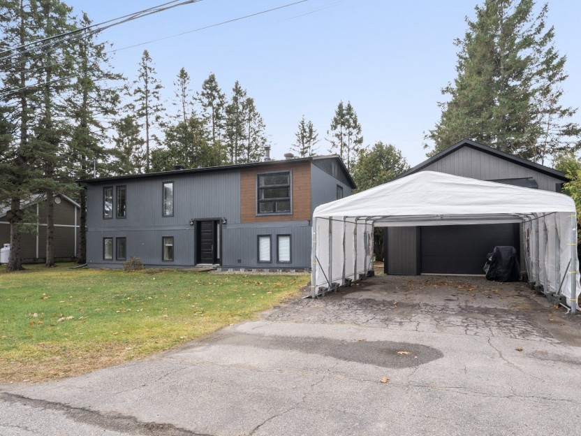 Stunning fully furnished chalet on the shore of Lac-des-Becs-Scie FORL LONG TERM RENTAL ONLY with 96 feet of private waterfront and breathtaking views. Built in 2014, it features 5 bedrooms, 4 bathrooms, and a double garage, in a peaceful location at the end of a cul-de-sac. Its bright open-concept living space includes a high-end kitchen, a living room with a wood-burning fireplace, and a three-season veranda. The garden level offers 3 bedrooms, one with access to a private terrace and spa. Private dock for boating on this navigable lake. Near Saint-Sauveur and ski slopes, luxury in nature!