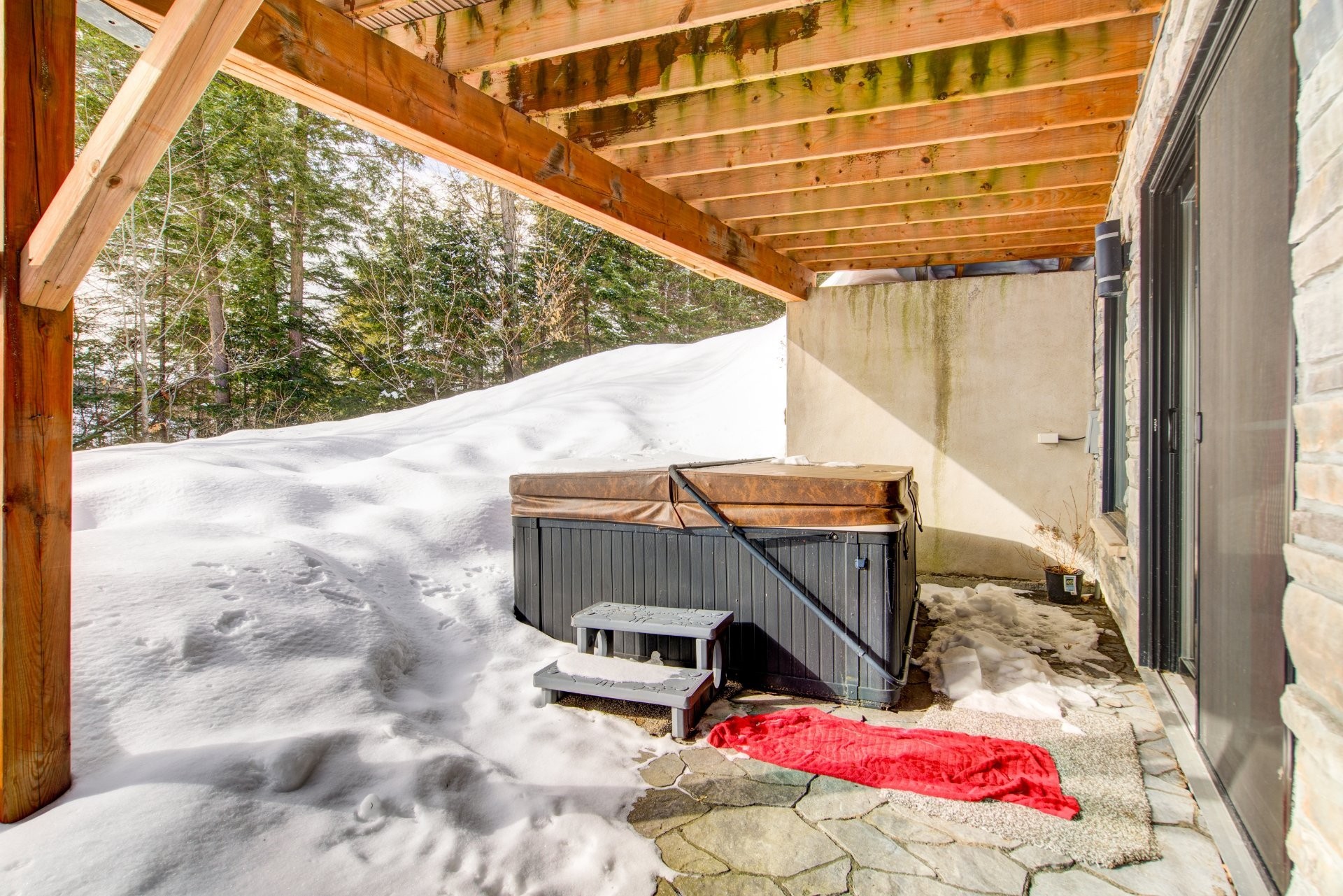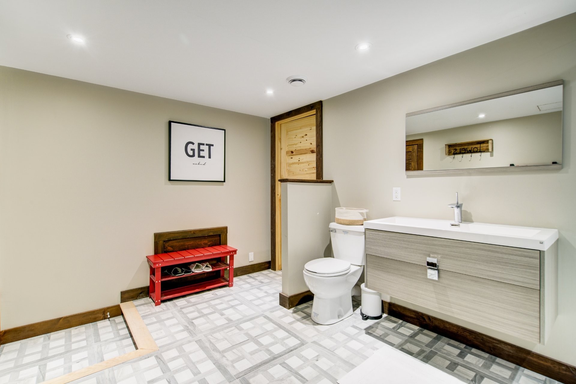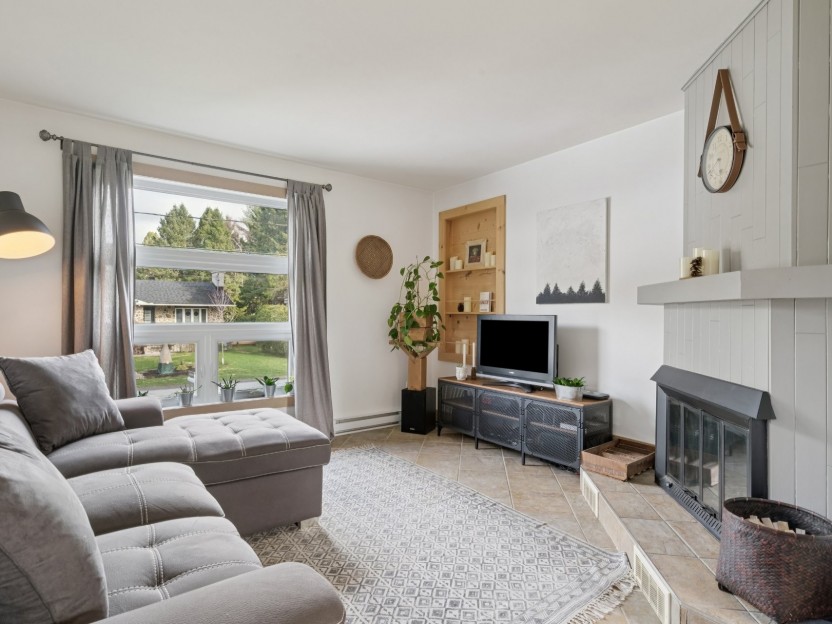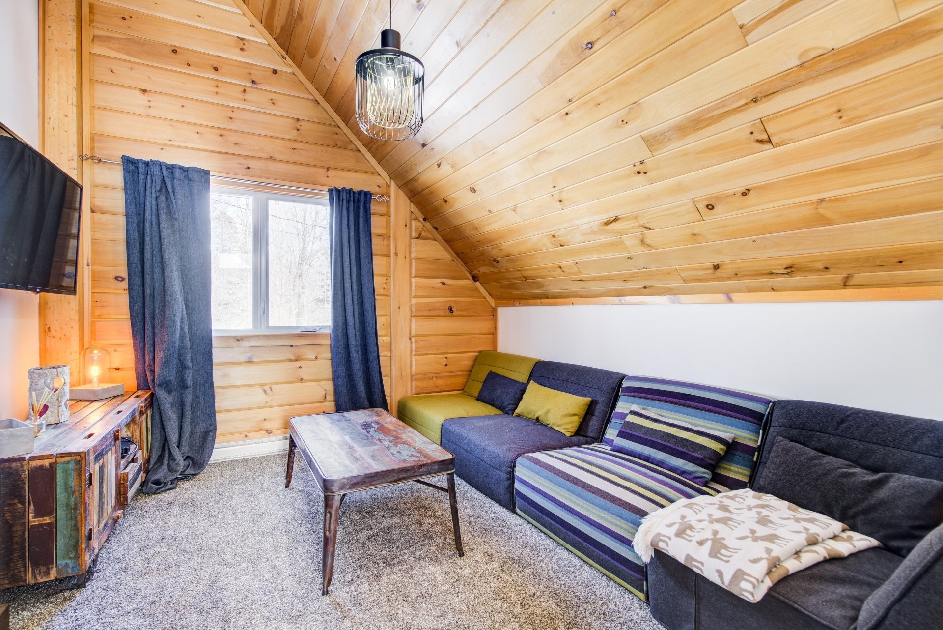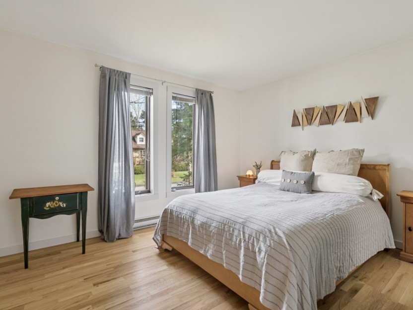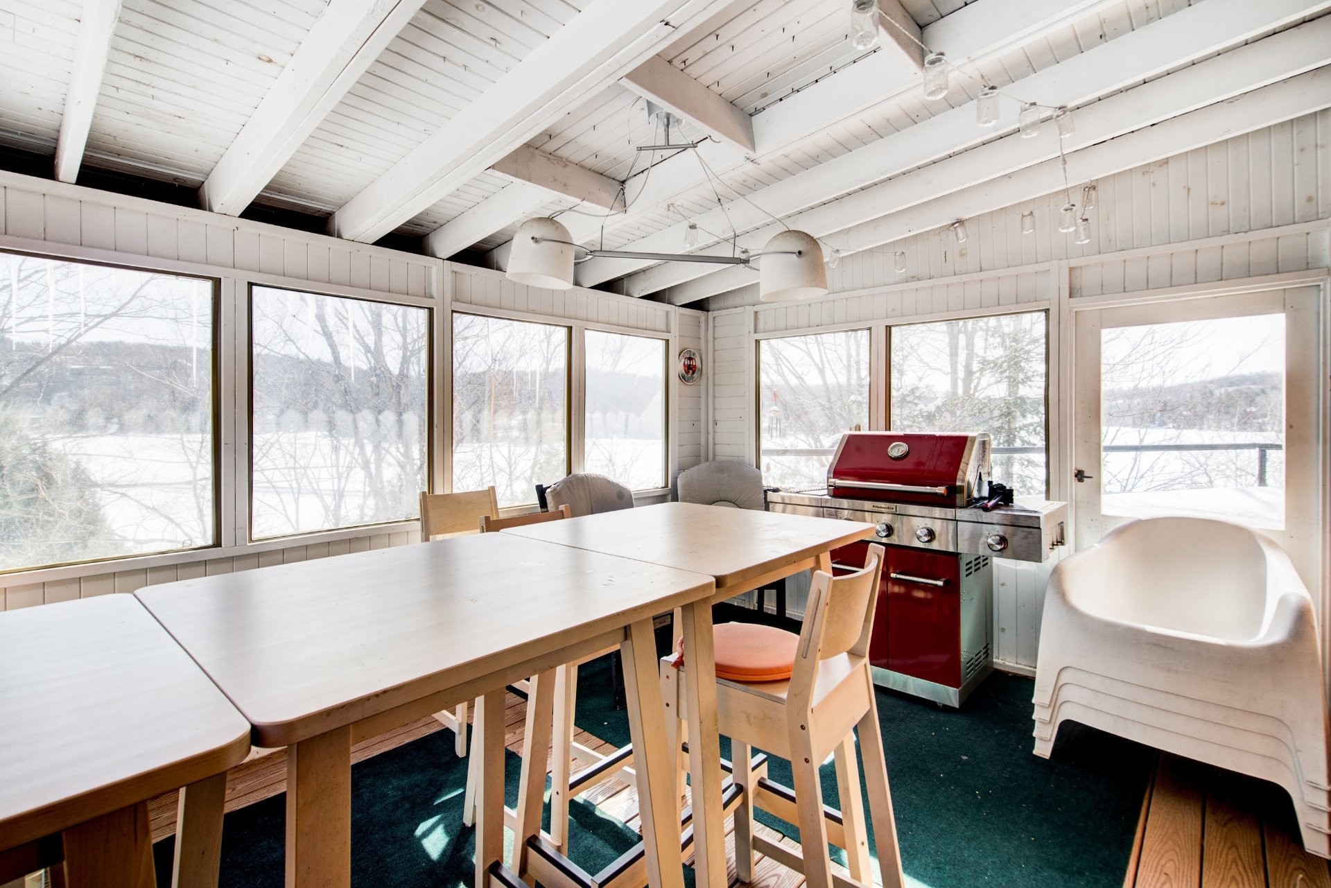 Stunning fully furnished chalet on the shore of Lac-des-Becs-Scie FORL LONG TERM RENTAL ONLY with 96 feet of private waterfront and breathtaking views. Built in 2014, it features 5 bedrooms, 4 bathrooms, and a double garage, in a peaceful location at the end of a cul-de-sac. Its bright open-concept living space includes a high-end kitchen, a living room with a wood-burning fireplace, and a three-season veranda. The garden level offers 3 bedrooms, one with access to a private terrace and spa. Private dock for boating on this navigable lake. Near Saint-Sauveur and ski slopes, luxury in nature!