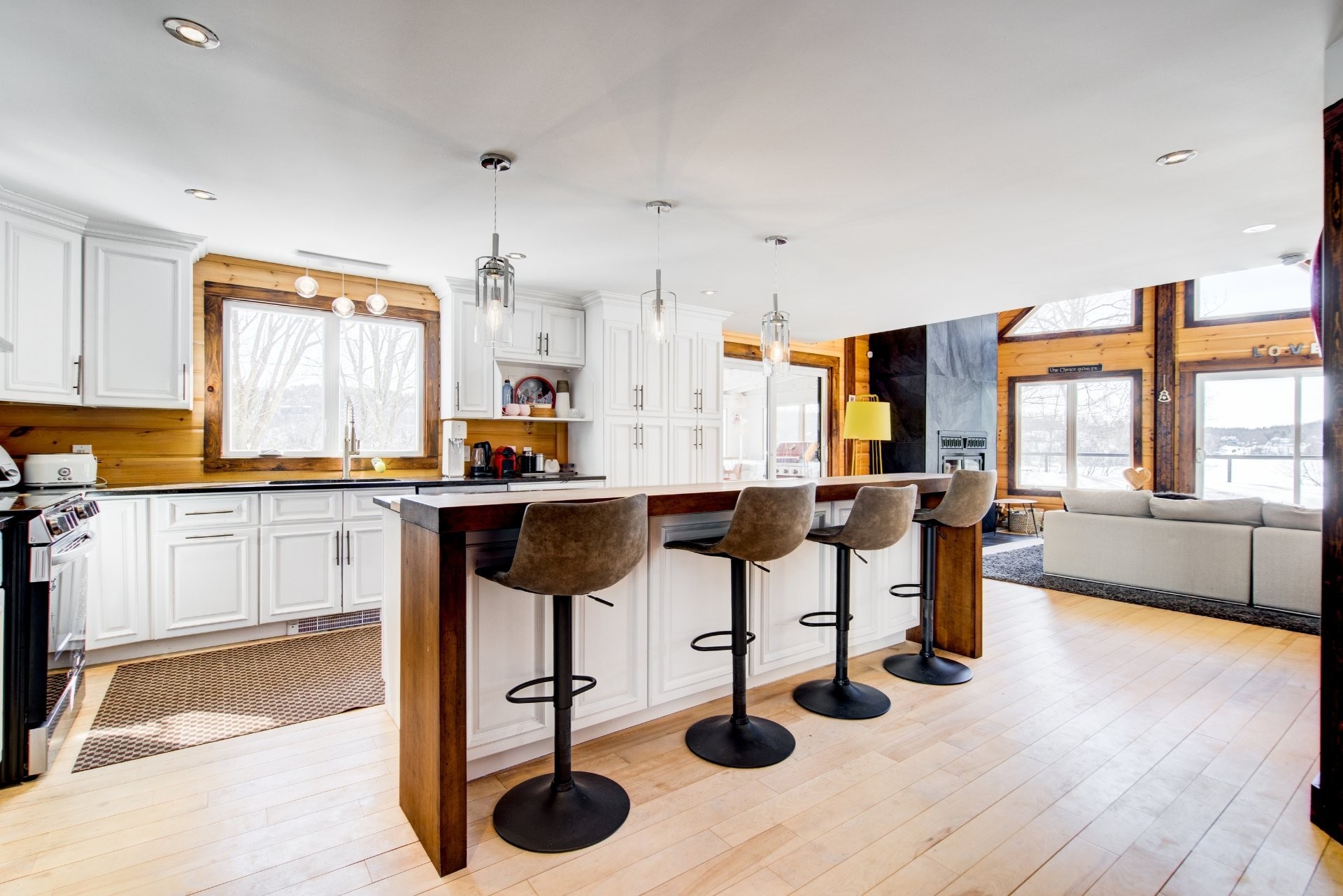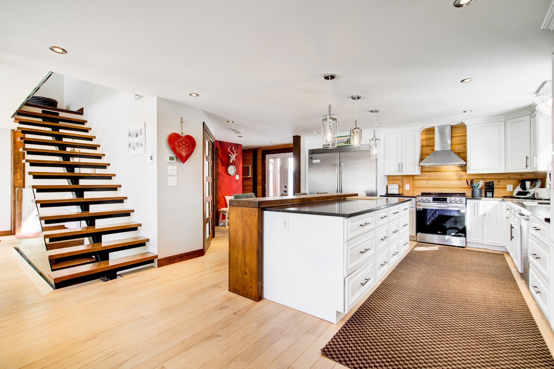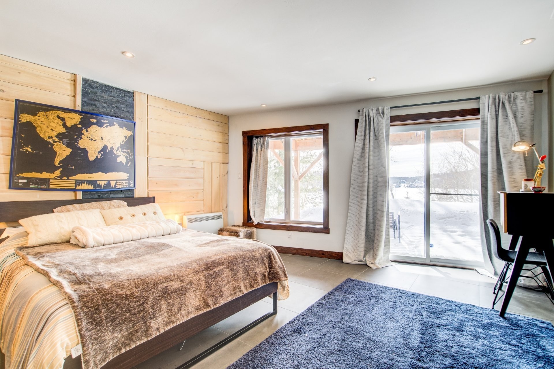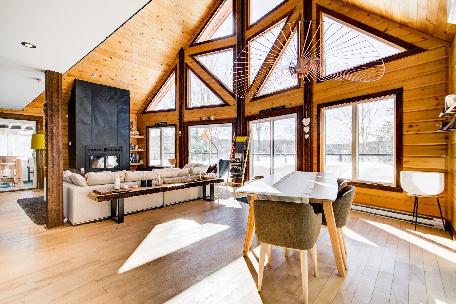 Discover a true haven of peace on the shores of Lac-des-Becs-Scie, where this sumptuous property blends elegance, comfort, and nature in an enchanting setting. With 96 feet of private waterfront and an ideal sun orientation, this prestigious 2014-built chalet offers abundant windows and breathtaking views of the lake and surrounding nature. Its refined, fully furnished interior features 5 spacious bedrooms and 4 modern bathrooms, perfect for hosting family and friends. The bright, open-concept main floor exudes warmth with a high-end kitchen featuring wooden cabinetry, granite countertops, and an island, along with a welcoming living room with a slow-combustion wood-burning fireplace (BIS) under a stunning cathedral ceiling. The dining area offers panoramic views of the water, while a three-season veranda extends the living space. A large balcony and double garage complete the amenities. Upstairs, the primary bedroom with walk-in closet boasts an elegant ensuite with a large shower and bathtub, while a second bedroom and a reading nook on the mezzanine add a touch of serenity. The garden level reveals three additional bedrooms, including one with direct access to a private terrace and spa, perfect for relaxing while admiring the lake. A bathroom with a shower complete this level. Outside, a private terrace and dock allow you to fully enjoy this navigable lake, ideal for kayaking, pedal boating, pontoon rides, and water skiing in summer, as well as snowshoeing and cross-country skiing in winter. Nestled at the end of a quiet cul-de-sac, this property ensures peace and privacy, while remaining close to the charming village of Saint-Sauveur and its ski slopes. A rare opportunity to experience exceptional lakeside living, combining luxury, comfort, and nature!