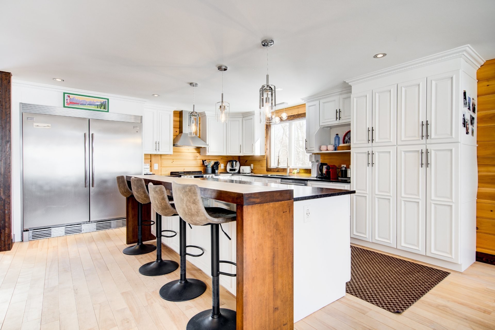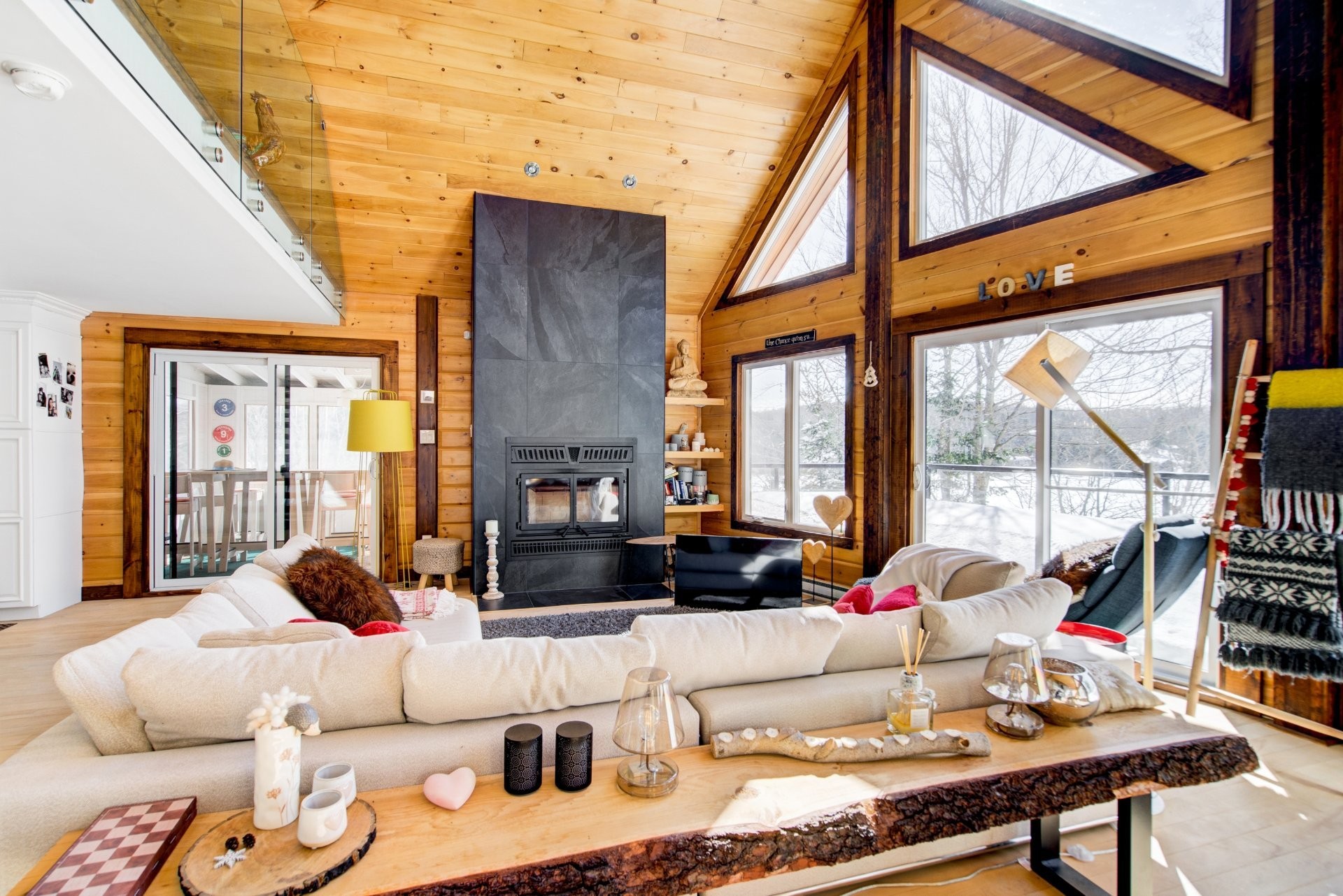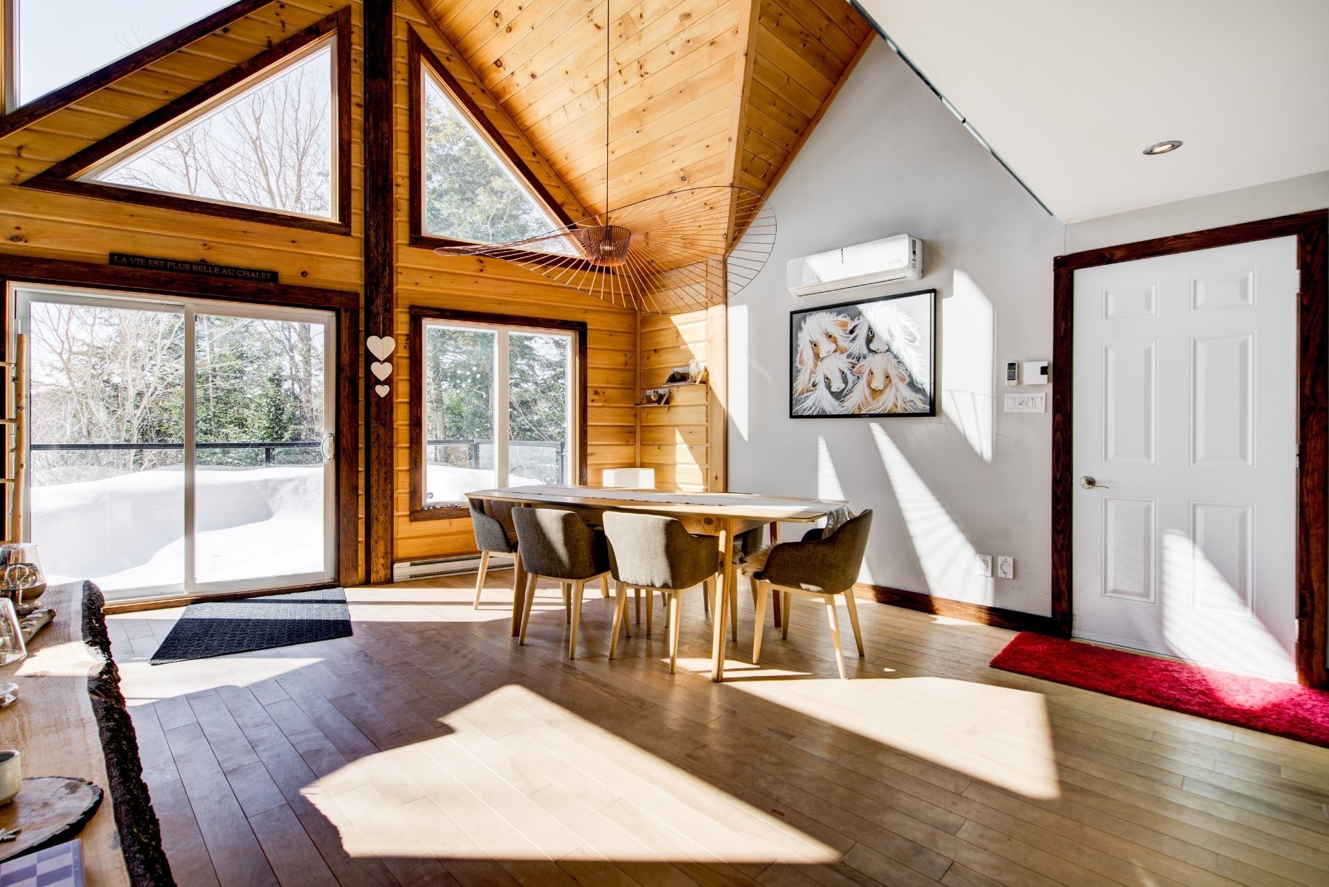 Discover a true haven of peace on the shores of Lac-des-Becs-Scie, where this sumptuous property blends elegance, comfort, and nature in an enchanting setting. With 96 feet of private waterfront and an ideal sun orientation, this prestigious 2014-built chalet offers abundant windows and breathtaking views of the lake and surrounding nature. Its refined, fully furnished interior features 5 spacious bedrooms and 4 modern bathrooms, perfect for hosting family and friends. The bright, open-concept main floor exudes warmth with a high-end kitchen featuring wooden cabinetry, granite countertops, and an island, along with a welcoming living room with a slow-combustion wood-burning fireplace (BIS) under a stunning cathedral ceiling. The dining area offers panoramic views of the water, while a three-season veranda extends the living space. A large balcony and double garage complete the amenities. Upstairs, the primary bedroom with walk-in closet boasts an elegant ensuite with a large shower and bathtub, while a second bedroom and a reading nook on the mezzanine add a touch of serenity. The garden level reveals three additional bedrooms, including one with direct access to a private terrace and spa, perfect for relaxing while admiring the lake. A bathroom with a shower complete this level. Outside, a private terrace and dock allow you to fully enjoy this navigable lake, ideal for kayaking, pedal boating, pontoon rides, and water skiing in summer, as well as snowshoeing and cross-country skiing in winter. Nestled at the end of a quiet cul-de-sac, this property ensures peace and privacy, while remaining close to the charming village of Saint-Sauveur and its ski slopes. A rare opportunity to experience exceptional lakeside living, combining luxury, comfort, and nature!