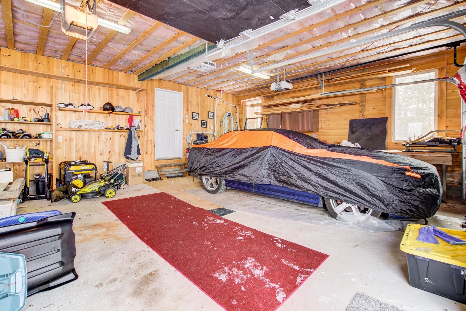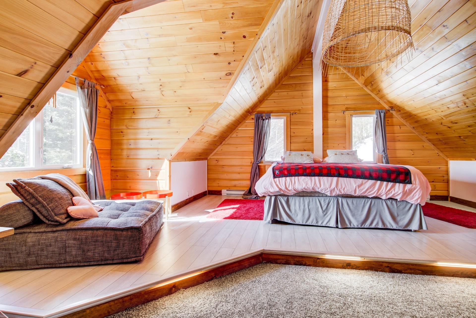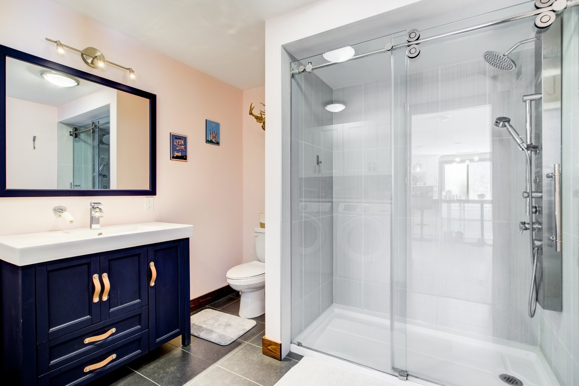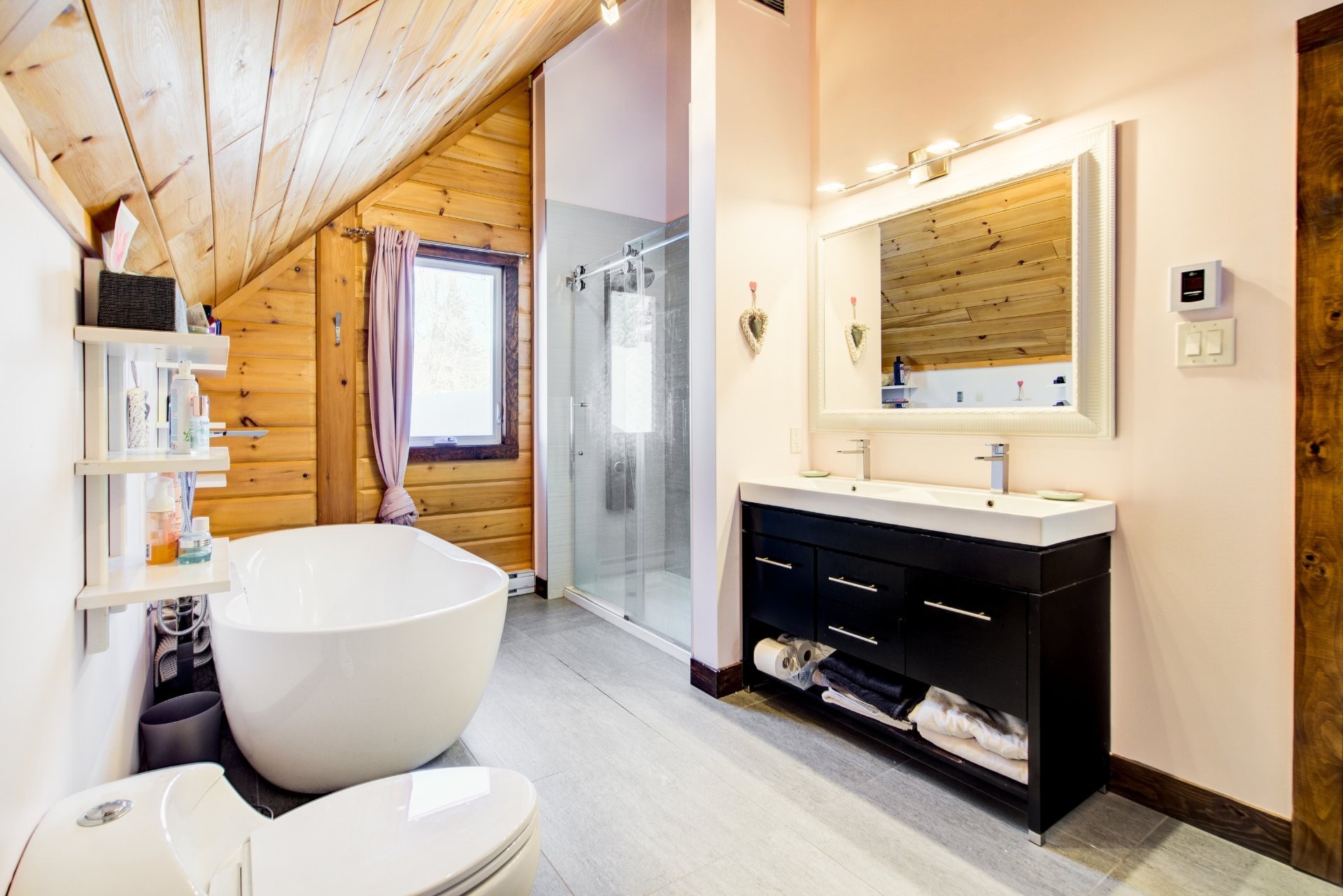 Discover a true haven of peace on the shores of Lac-des-Becs-Scie, where this sumptuous property blends elegance, comfort, and nature in an enchanting setting. With 96 feet of private waterfront and an ideal sun orientation, this prestigious 2014-built chalet offers abundant windows and breathtaking views of the lake and surrounding nature. Its refined, fully furnished interior features 5 spacious bedrooms and 4 modern bathrooms, perfect for hosting family and friends. The bright, open-concept main floor exudes warmth with a high-end kitchen featuring wooden cabinetry, granite countertops, and an island, along with a welcoming living room with a slow-combustion wood-burning fireplace (BIS) under a stunning cathedral ceiling. The dining area offers panoramic views of the water, while a three-season veranda extends the living space. A large balcony and double garage complete the amenities. Upstairs, the primary bedroom with walk-in closet boasts an elegant ensuite with a large shower and bathtub, while a second bedroom and a reading nook on the mezzanine add a touch of serenity. The garden level reveals three additional bedrooms, including one with direct access to a private terrace and spa, perfect for relaxing while admiring the lake. A bathroom with a shower complete this level. Outside, a private terrace and dock allow you to fully enjoy this navigable lake, ideal for kayaking, pedal boating, pontoon rides, and water skiing in summer, as well as snowshoeing and cross-country skiing in winter. Nestled at the end of a quiet cul-de-sac, this property ensures peace and privacy, while remaining close to the charming village of Saint-Sauveur and its ski slopes. A rare opportunity to experience exceptional lakeside living, combining luxury, comfort, and nature!
