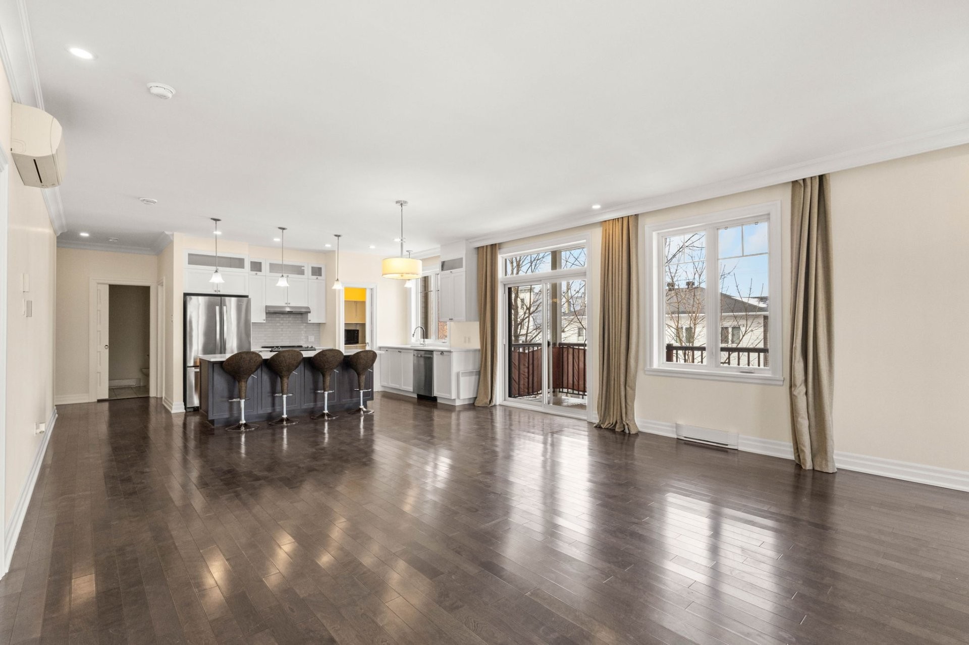 Hardwood floors, refined mouldings, and a beautifully designed open living and dining area create a warm and inviting space--perfect for entertaining. Patio doors lead to a generous private terrace, ideal for summer dining or relaxing outdoors.