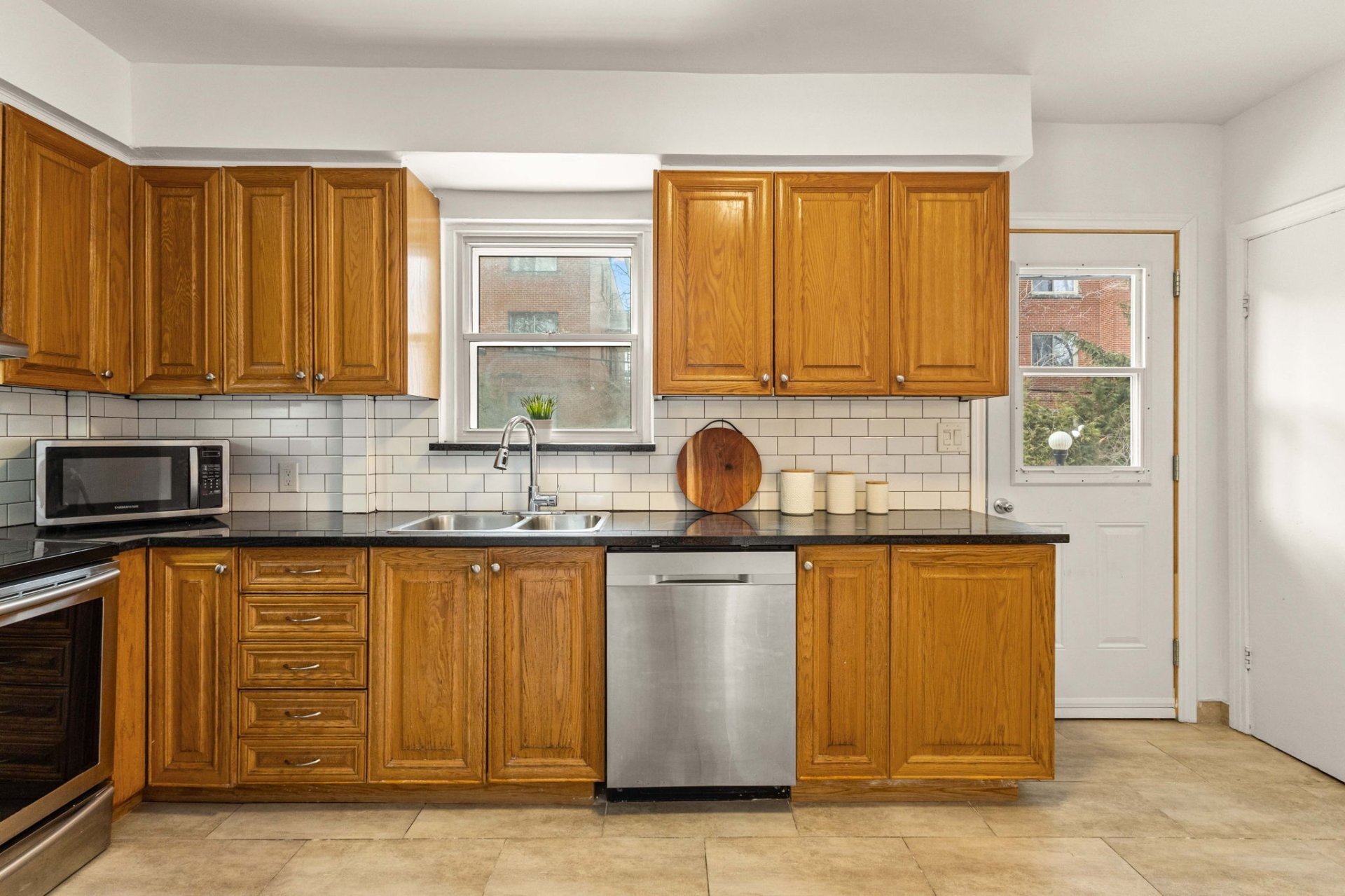 - Kitchen with plenty of storage and a large walk-in pantry, access to the covered patio to the back and full access to the backyard