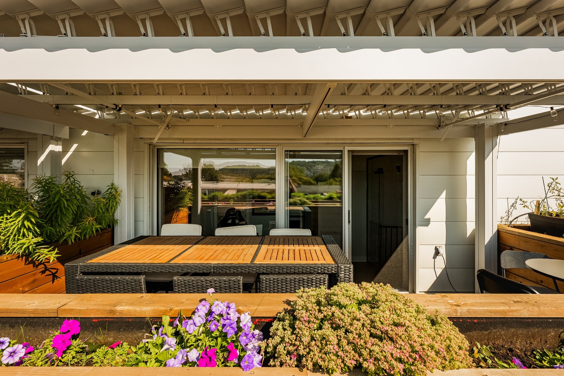 Refrigerator, Oven, Dishwasher, Washer, Dryer, Light fixtures, All electric blinds in the condo, blinds in the office bedroom, Pergola on the private terrace, EV charger