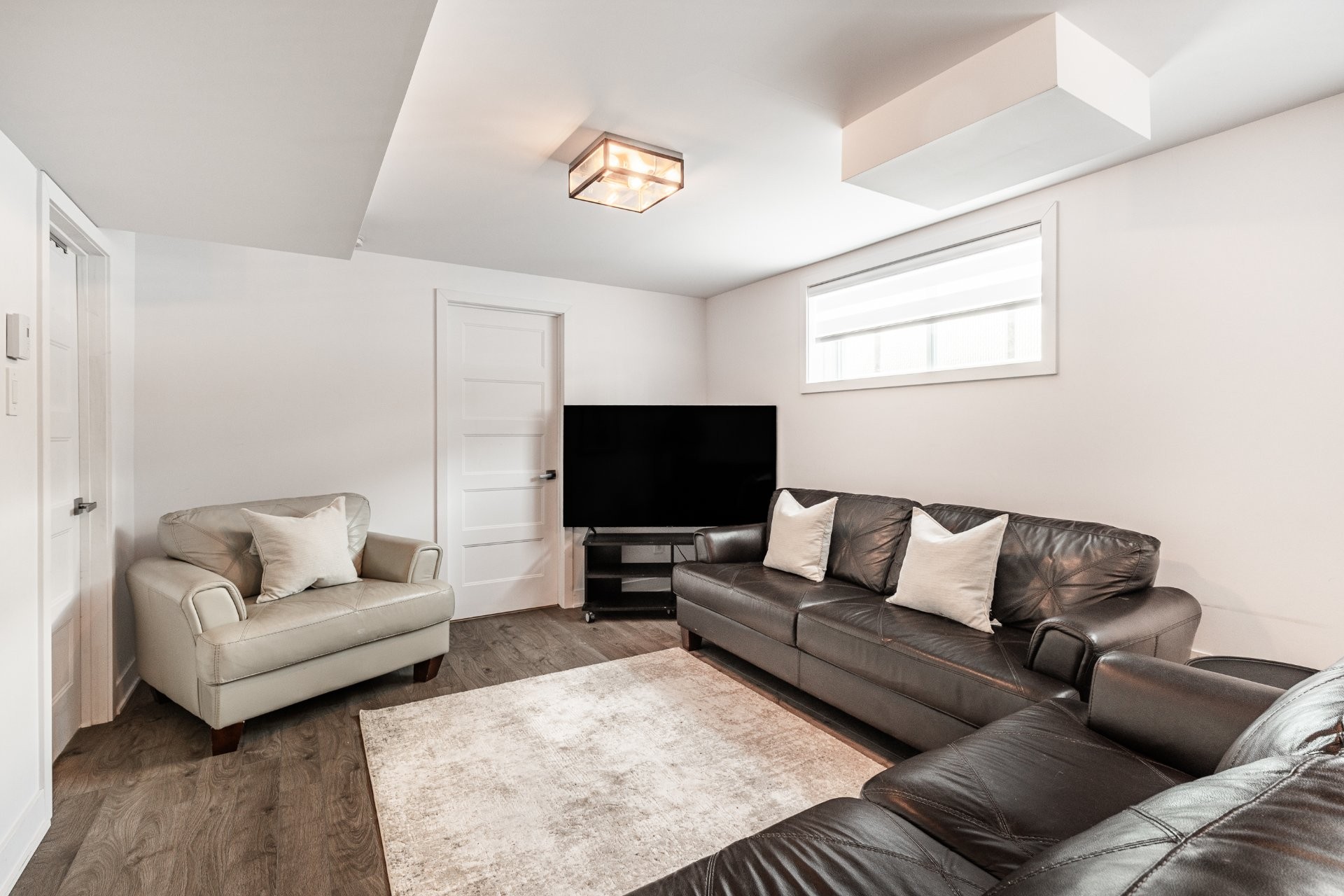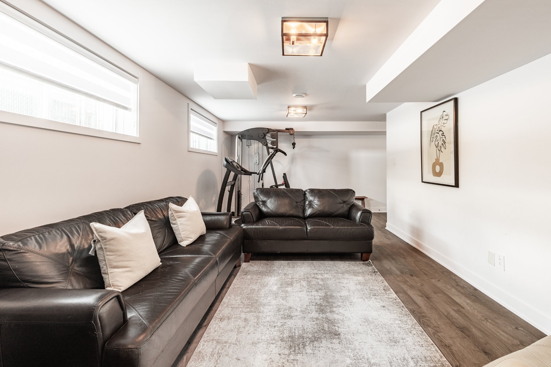 The fully finished basement offers a large family room that can be used as a home theater, playroom, gym or additional living space.