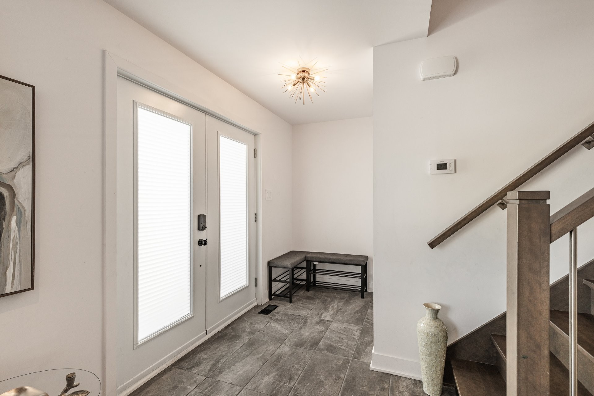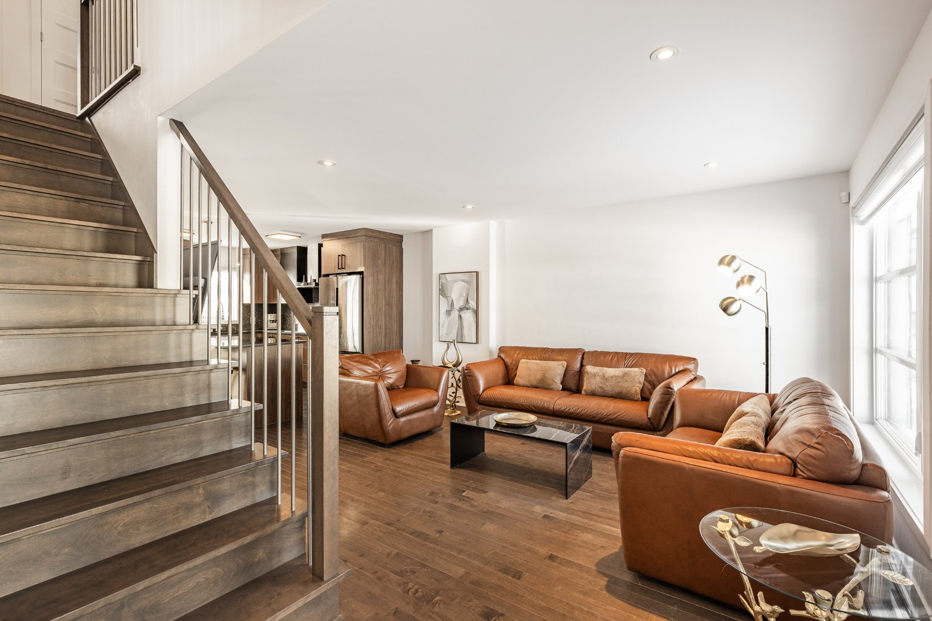 Welcoming entrance hall leading to the main living areas. The bright living room features large windows allowing abundant natural light and flows seamlessly into the dining room.