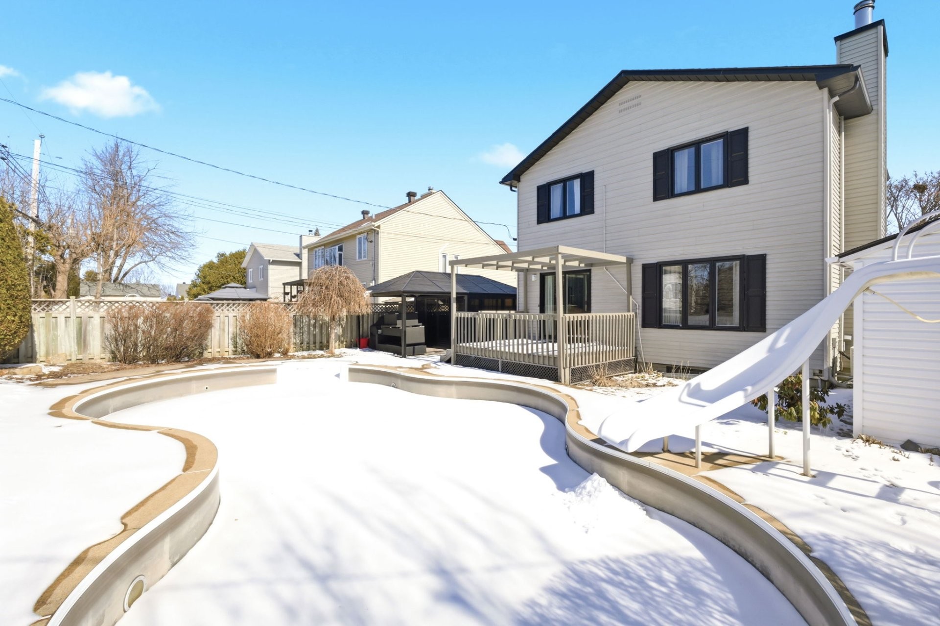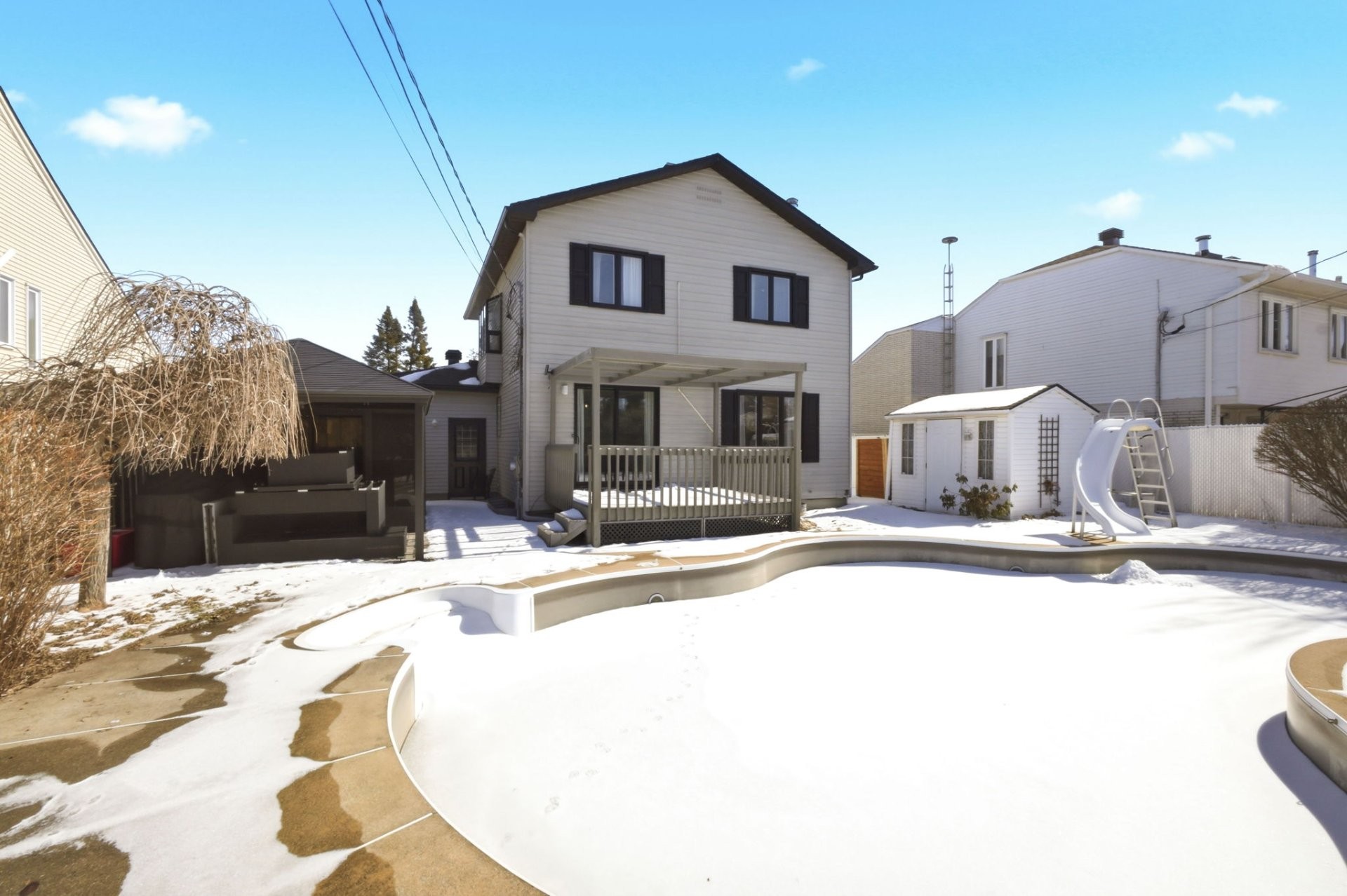 Exterior 2024 New electric pool heat pump 2023 Roof 2023 Exterior cladding: Complete painting of windows and aluminum (by Spray Net) 2023 New gutters 2022 Front interlocking pavers replaced (sidewalk) and garage entrance) 2021 Landscaping, expansion and replacement of interlocking pavers in the backyard 2020 New inground pool liner 2005 Windows and doors