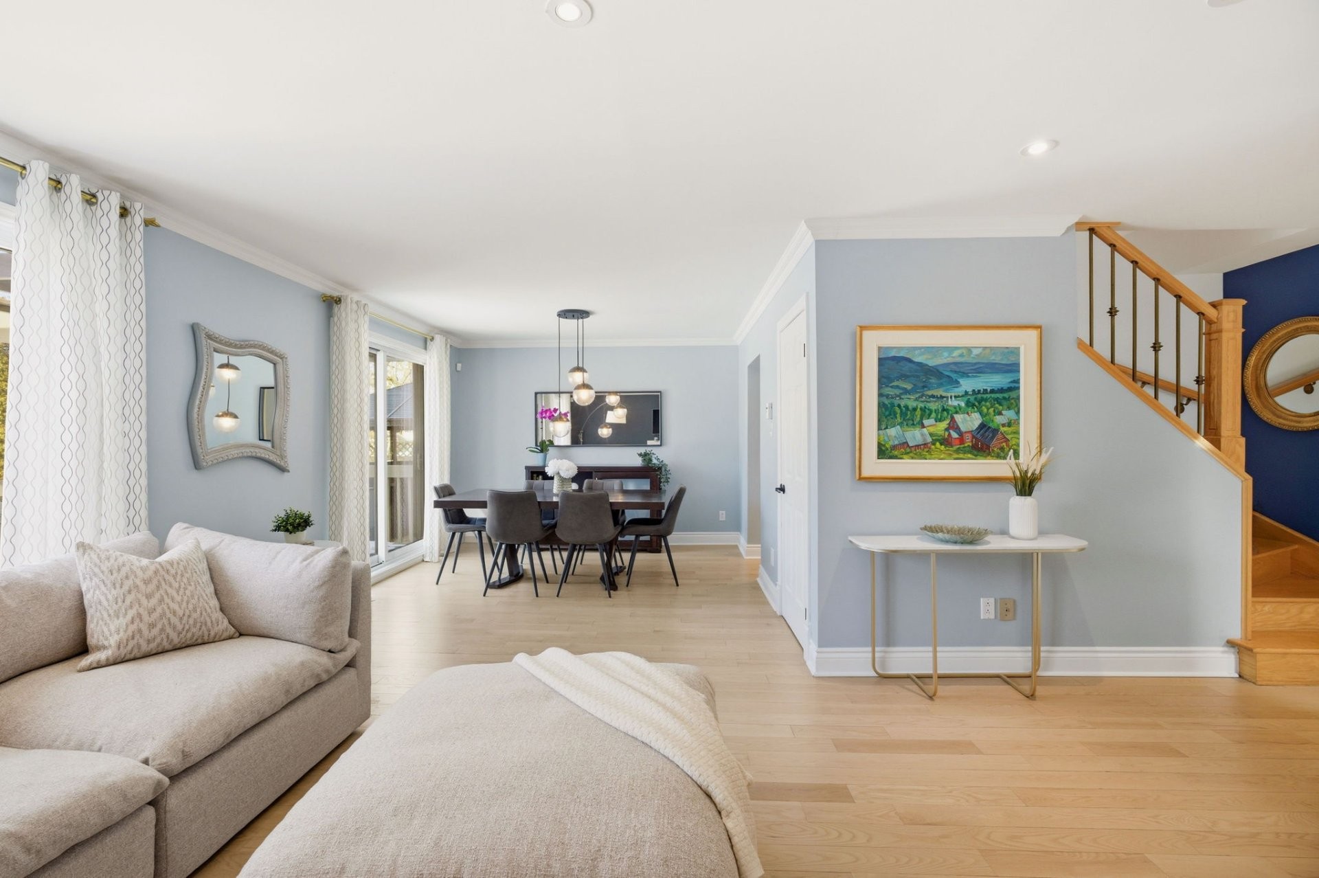 Lovingly cared for over the years, the home features numerous mechanical and aesthetic upgrades. The main floor boasts a bright, open-concept living and dining area, enhanced by rich hardwood flooring that flows seamlessly throughout the home. The updated kitchen with dinette is both stylish and functional, while a spacious powder room with integrated laundry adds everyday convenience.