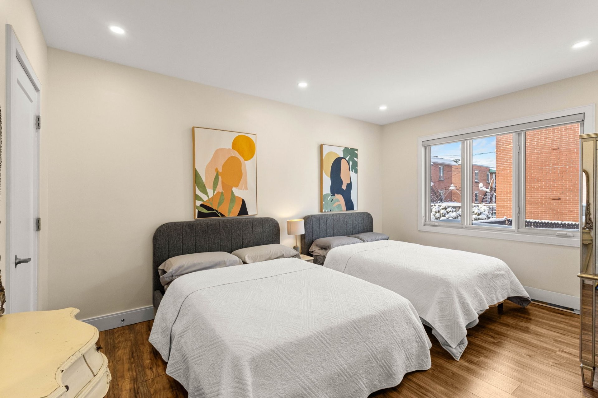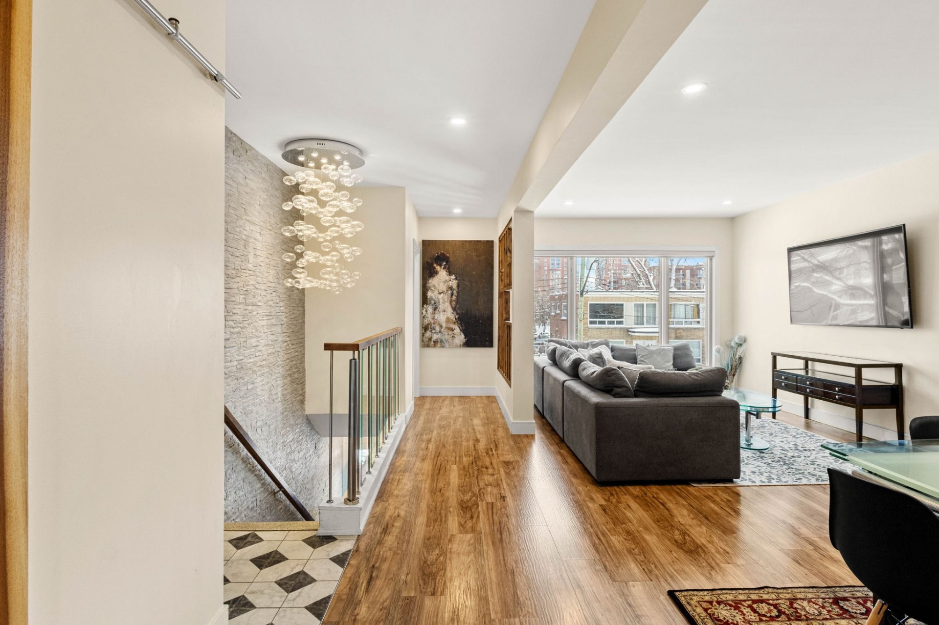 Completely vacant and fully renovated,corner semi-detached triplex on a hedged and fenced lot, ready for occupancy in sought-after St-Laurent. Steps from the Montpellier REM station! The top and middle floors offer bright 3 bedroom, 2-bath units with spacious living and dining areas, primary bedroom with ensuite and walk-in closet, high-end kitchens, heated bathroom floors, and patio doors opening to balconies. The basement features a modern 4 1/2 with two bedrooms, kitchen with island, heated bathroom floor, and laundry closet. Ideal for owner-occupants or investors seeking turnkey quality, excellent transit access, and strong rental appeal!