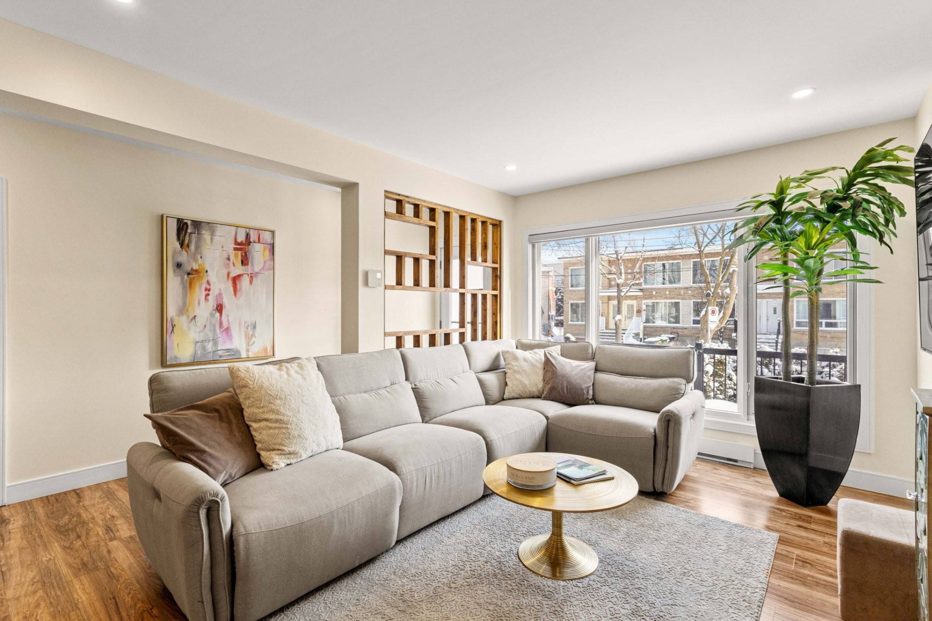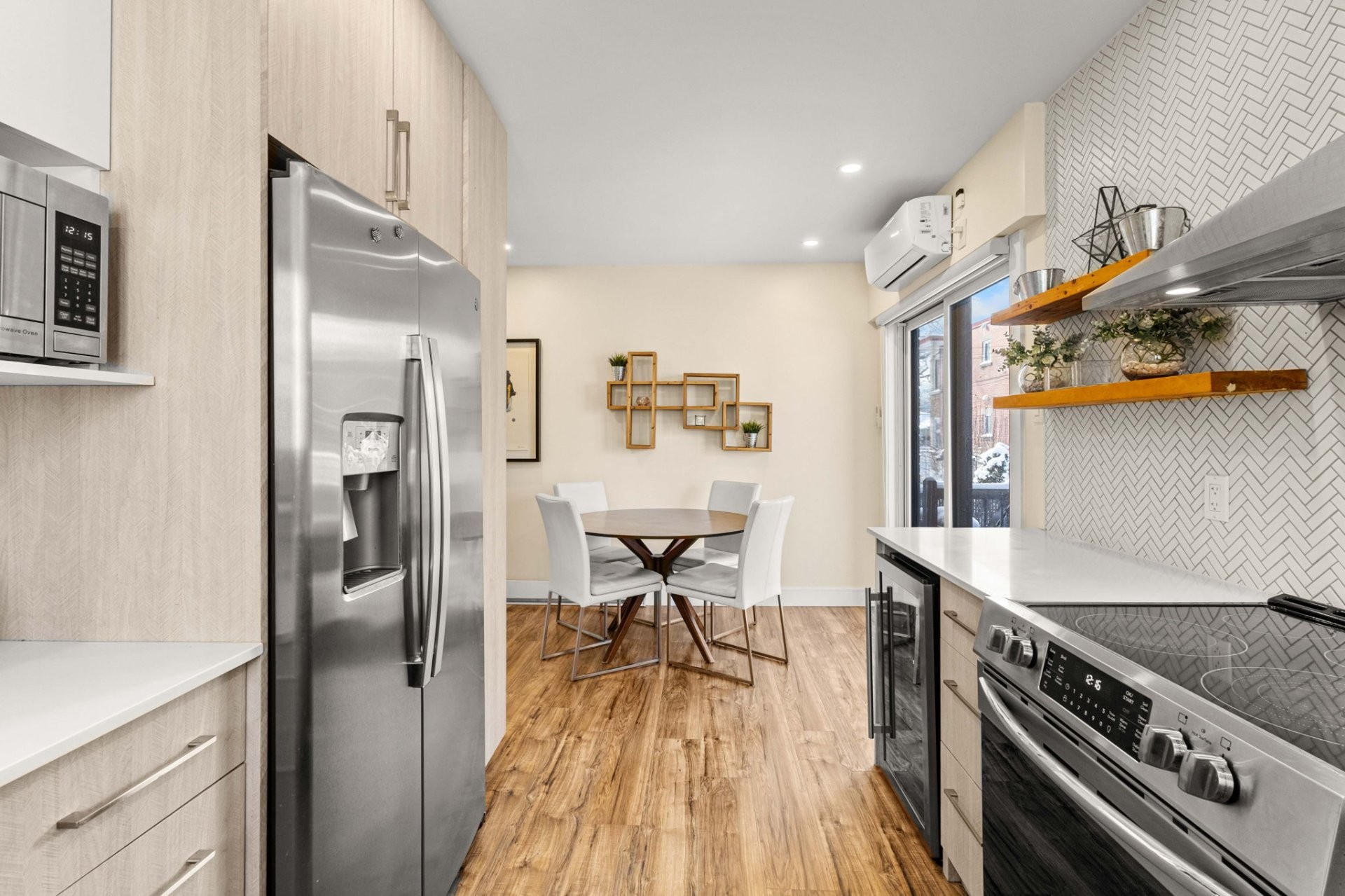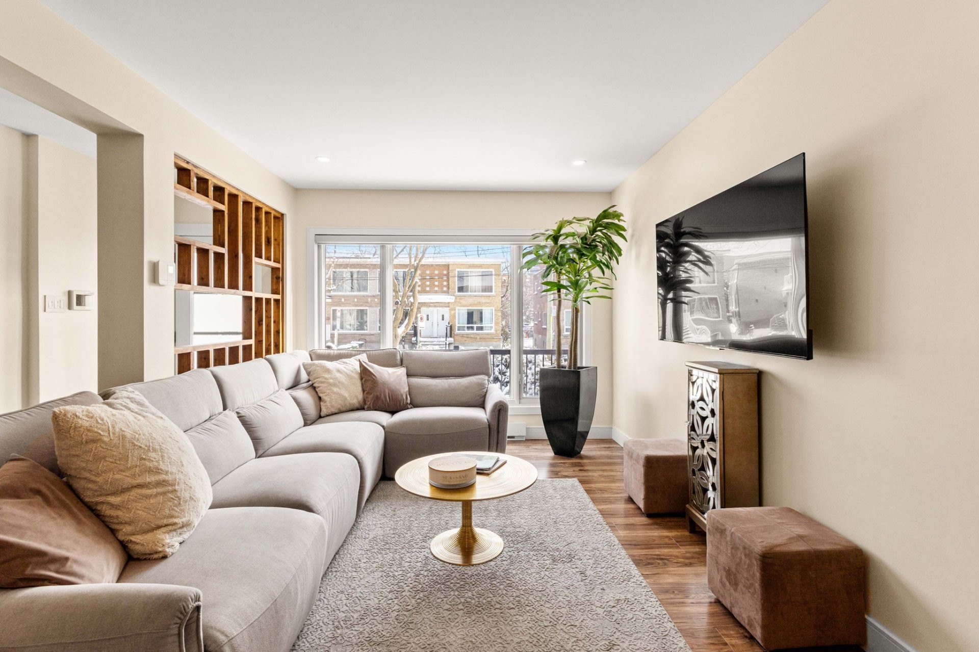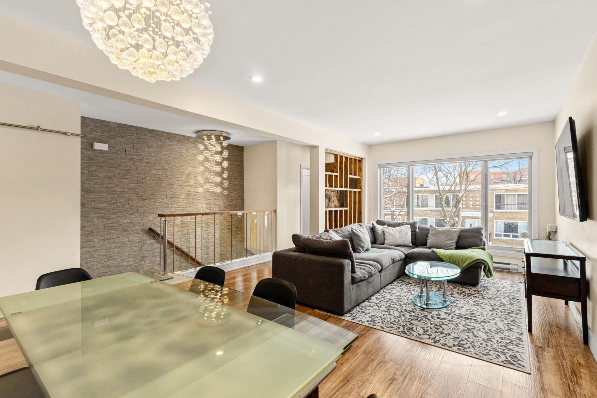 Fully furnished 5½ corner unit in a triplex, steps from the REM in St-Laurent! This middle floor unit is fully renovated with top-quality finishes. Modern kitchen, bathrooms with heated floors, primary bedroom with ensuite bathroom and walk-in closet. Bright, open living spaces with patio doors to a private balcony. Stylish, comfortable, and move-in ready in a prime location.