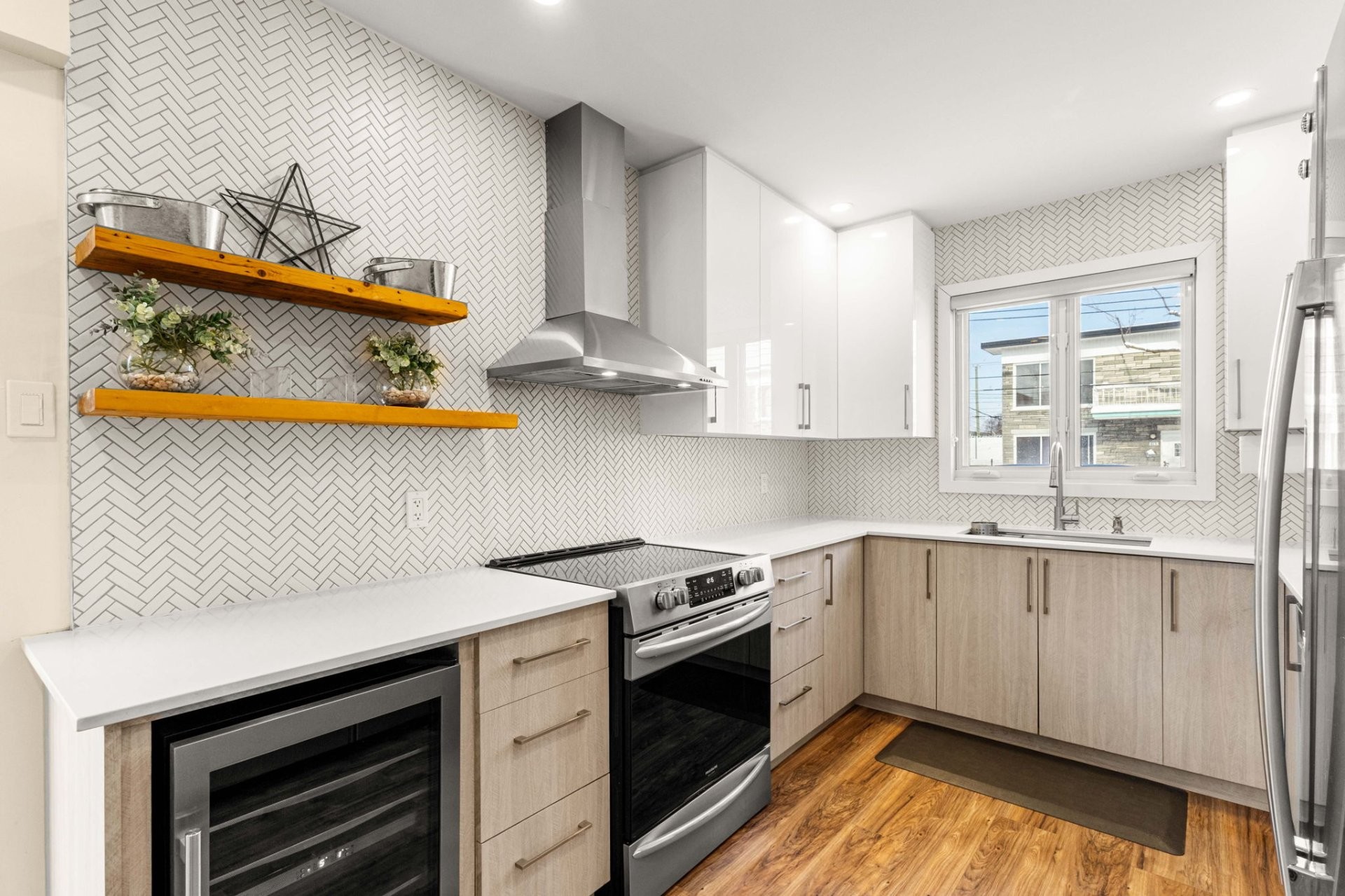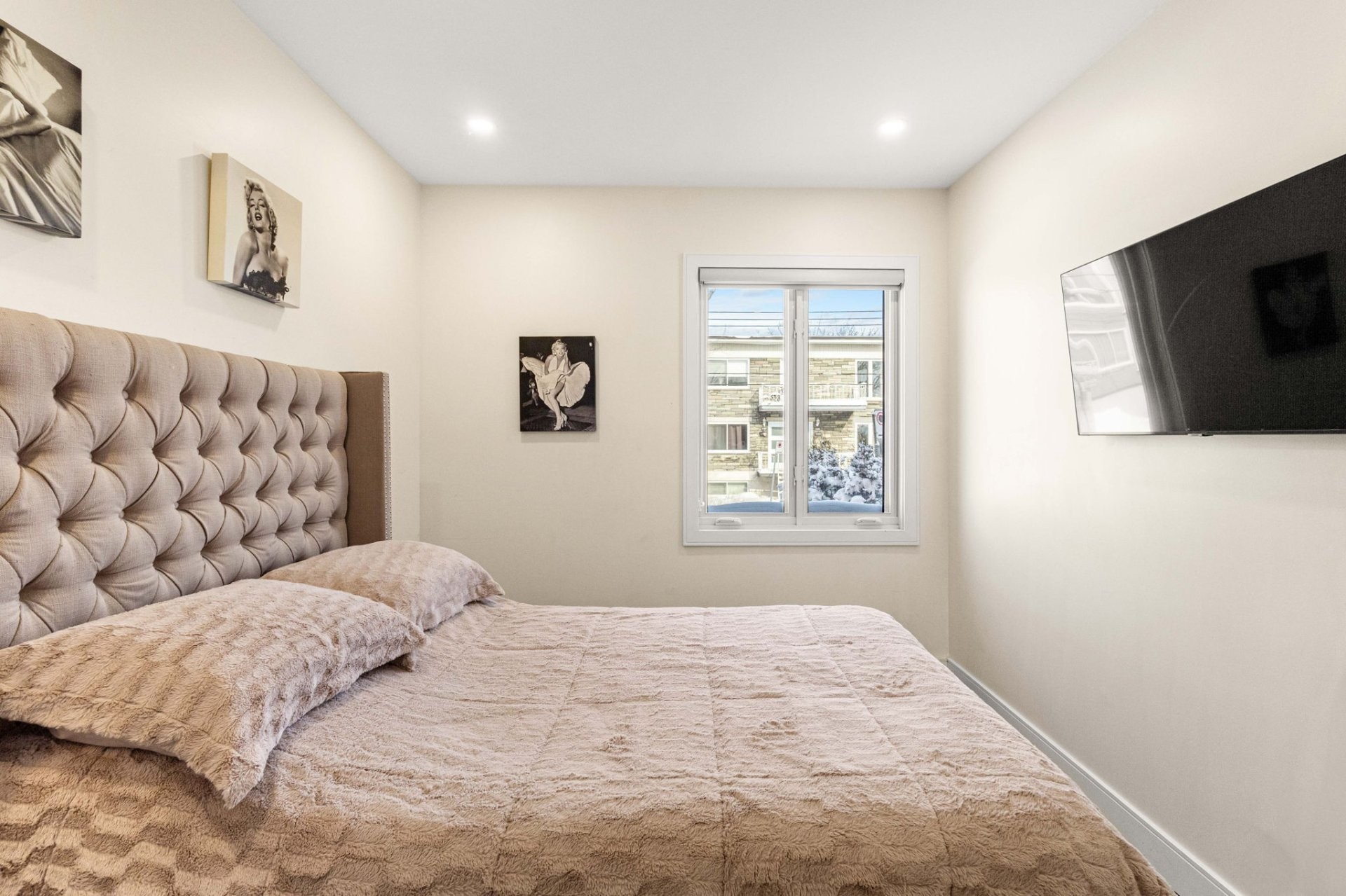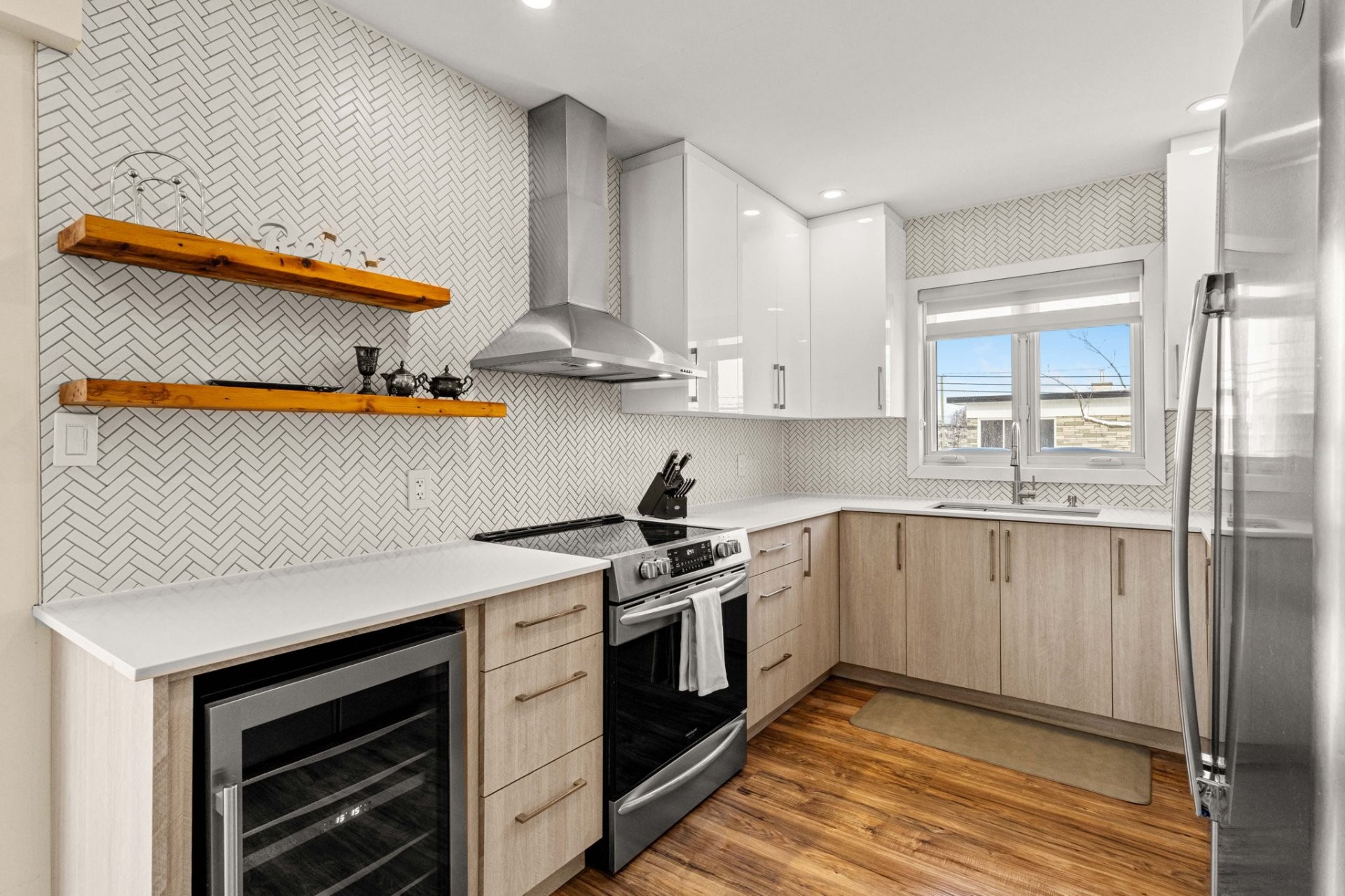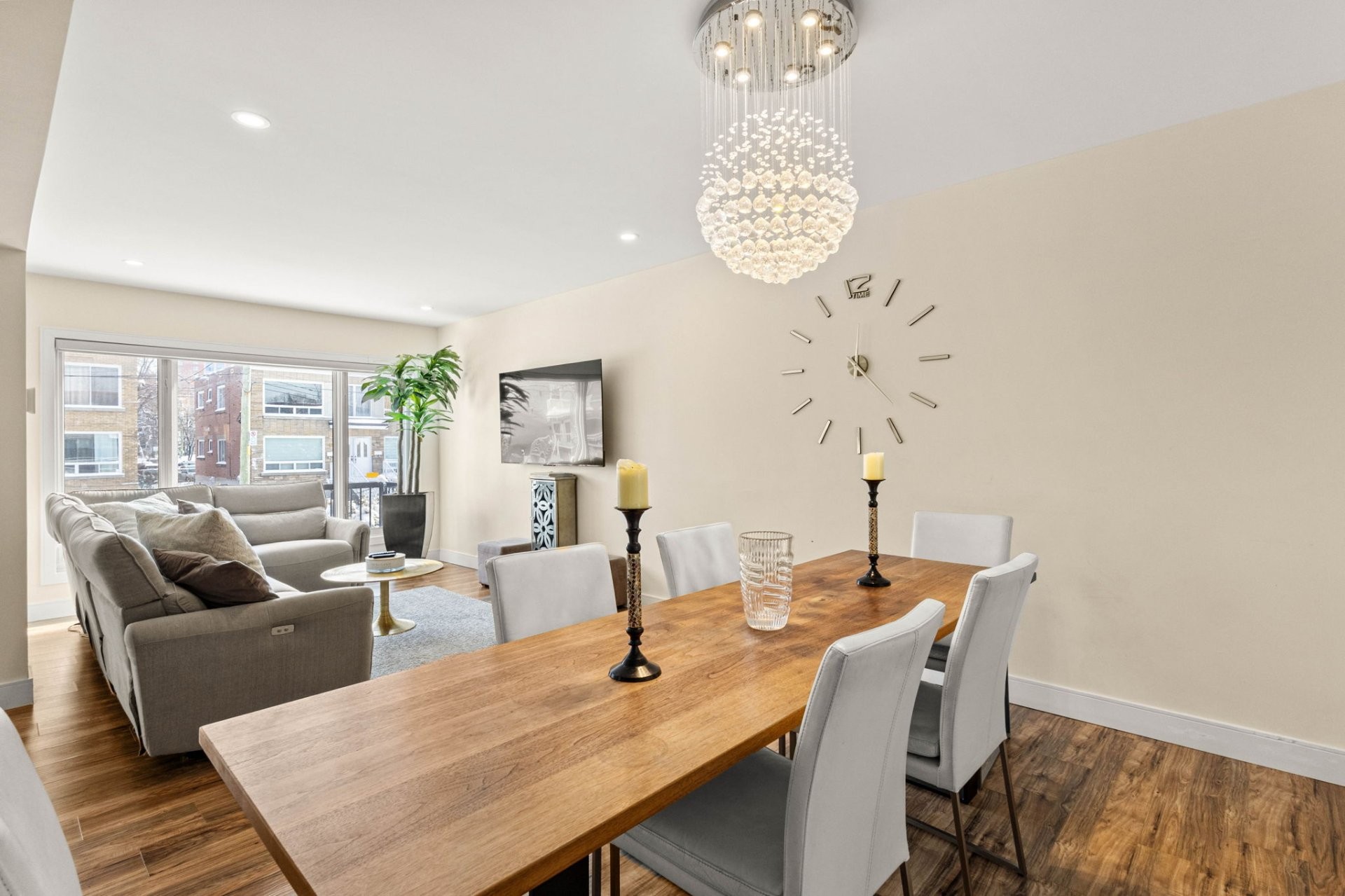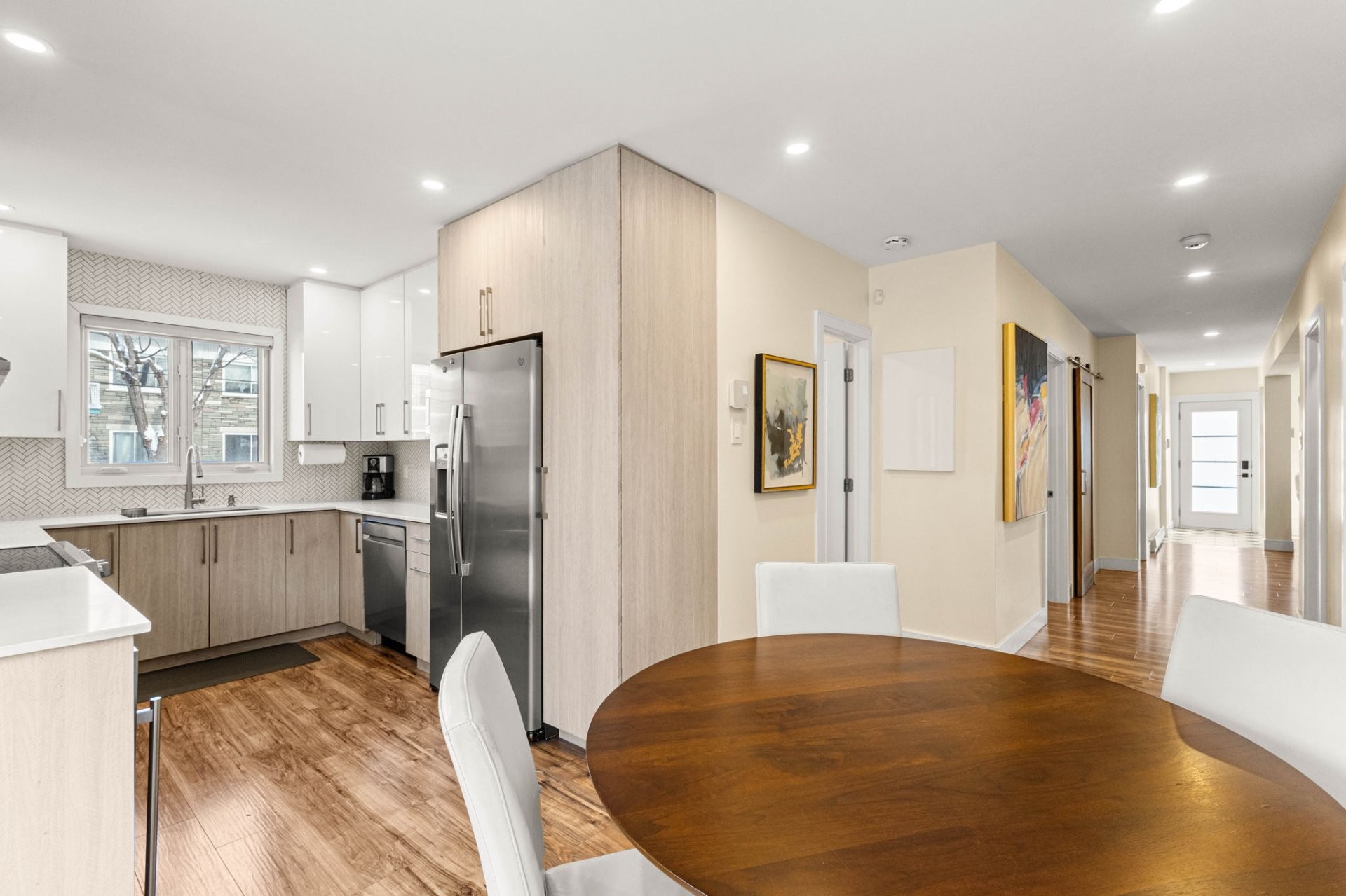 Fully furnished 5½ corner unit in a triplex, steps from the REM in St-Laurent! This middle floor unit is fully renovated with top-quality finishes. Modern kitchen, bathrooms with heated floors, primary bedroom with ensuite bathroom and walk-in closet. Bright, open living spaces with patio doors to a private balcony. Stylish, comfortable, and move-in ready in a prime location.