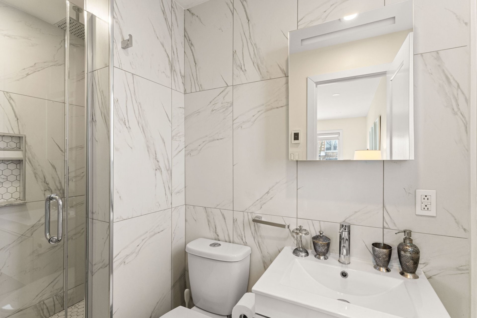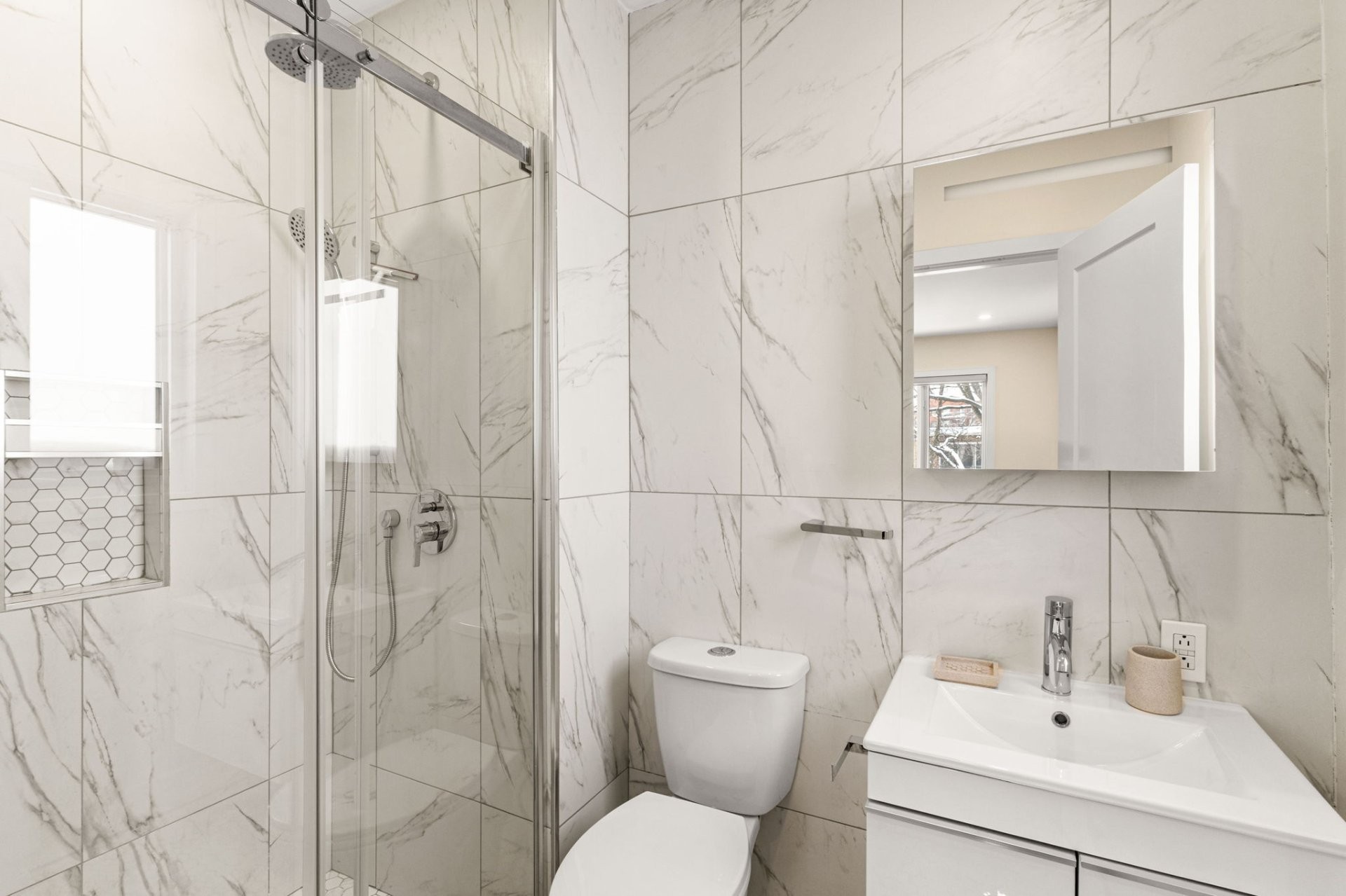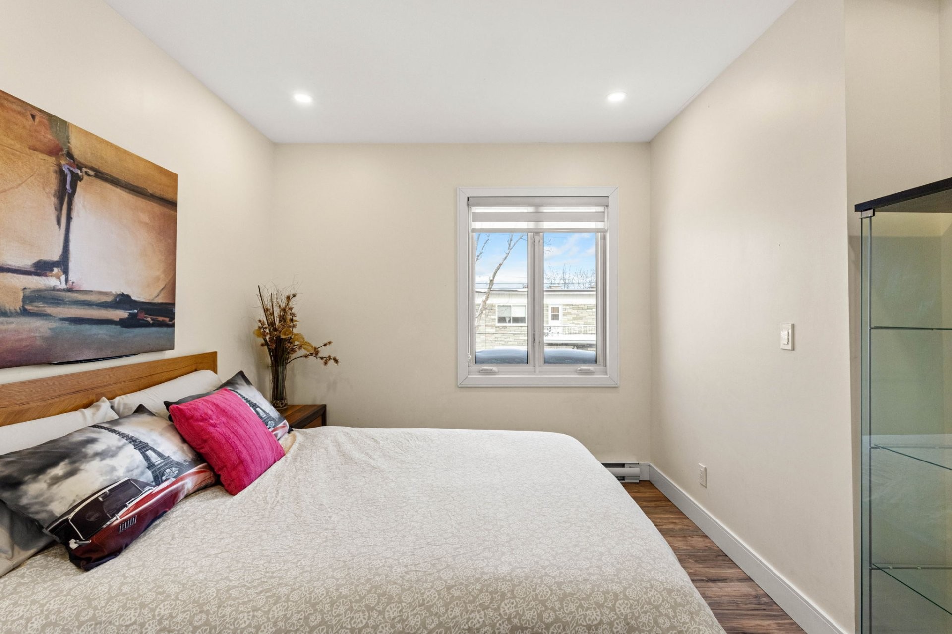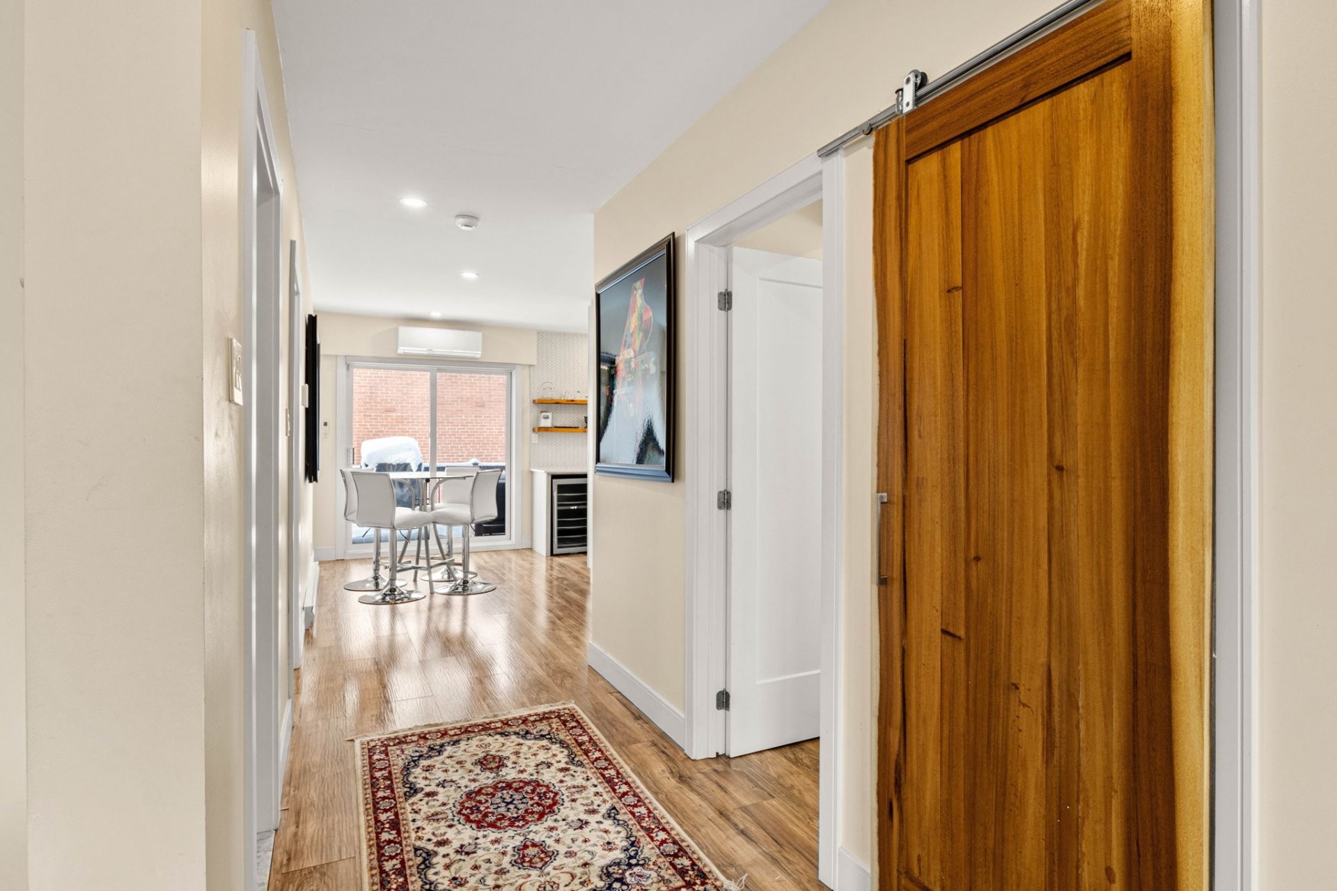 Fully furnished 5½ corner unit in a triplex, steps from the REM in St-Laurent! This middle floor unit is fully renovated with top-quality finishes. Modern kitchen, bathrooms with heated floors, primary bedroom with ensuite bathroom and walk-in closet. Bright, open living spaces with patio doors to a private balcony. Stylish, comfortable, and move-in ready in a prime location.