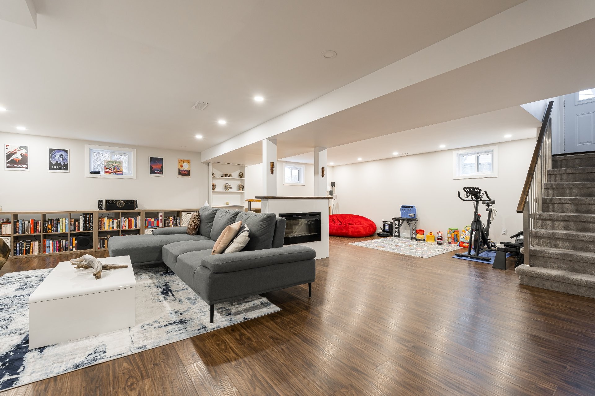 - Two electric fireplaces; one in the main living space and the other in the basement