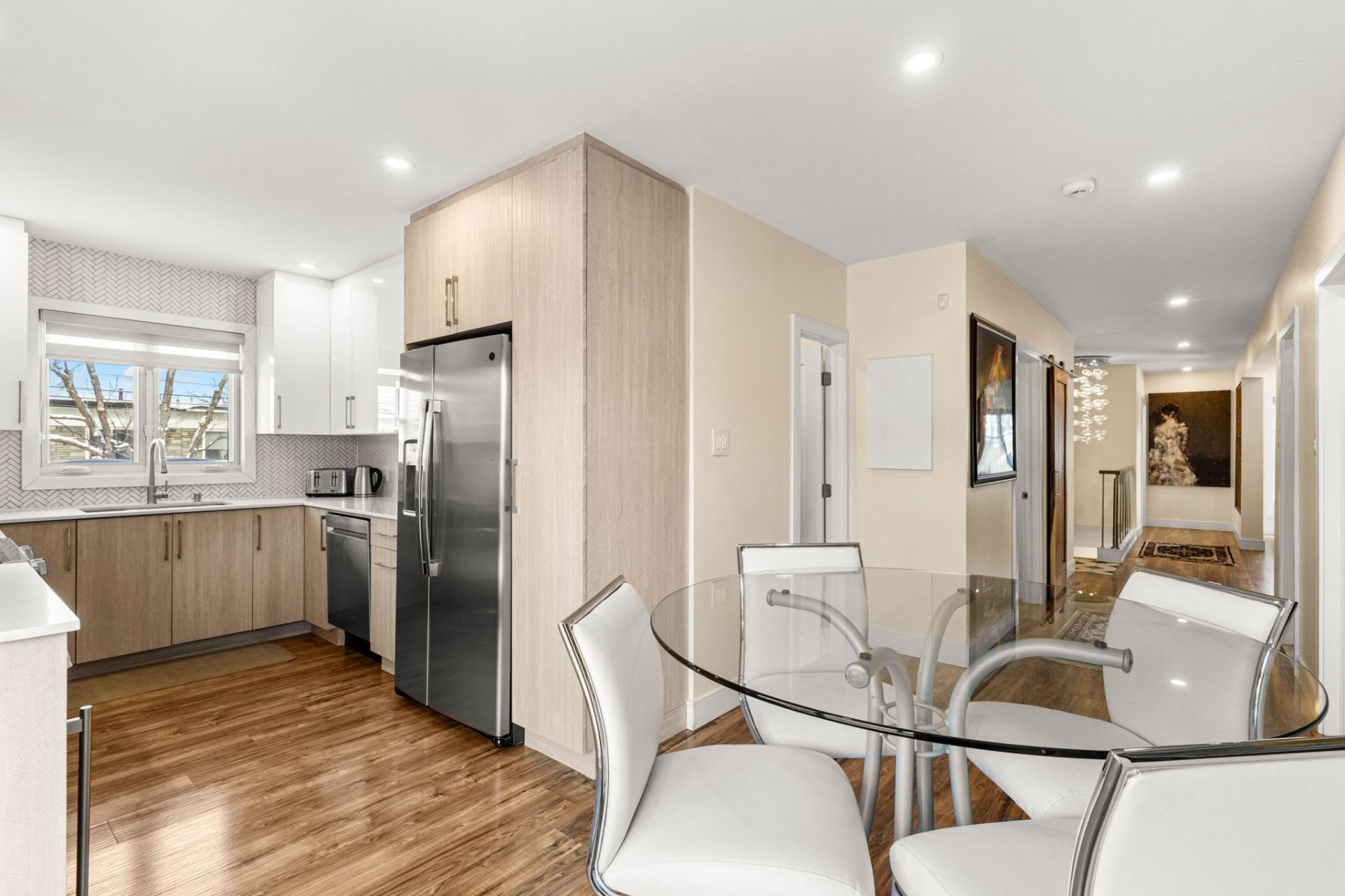 Available for immediate occupancy - Fully furnished 5½ corner unit in a triplex, steps from the REM in St-Laurent! This top-floor unit is fully renovated with premium finishes. Modern kitchen, bathrooms with heated floors, primary bedroom with ensuite and walk-in closet. Bright, open living spaces with patio doors to a private balcony. Stylish, comfortable, and move-in ready in a prime location.