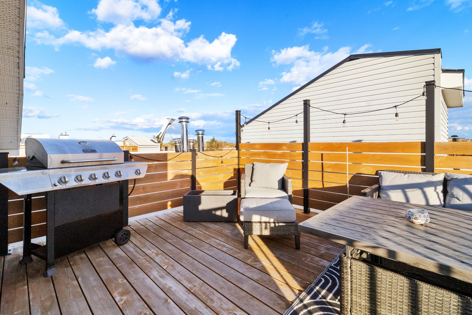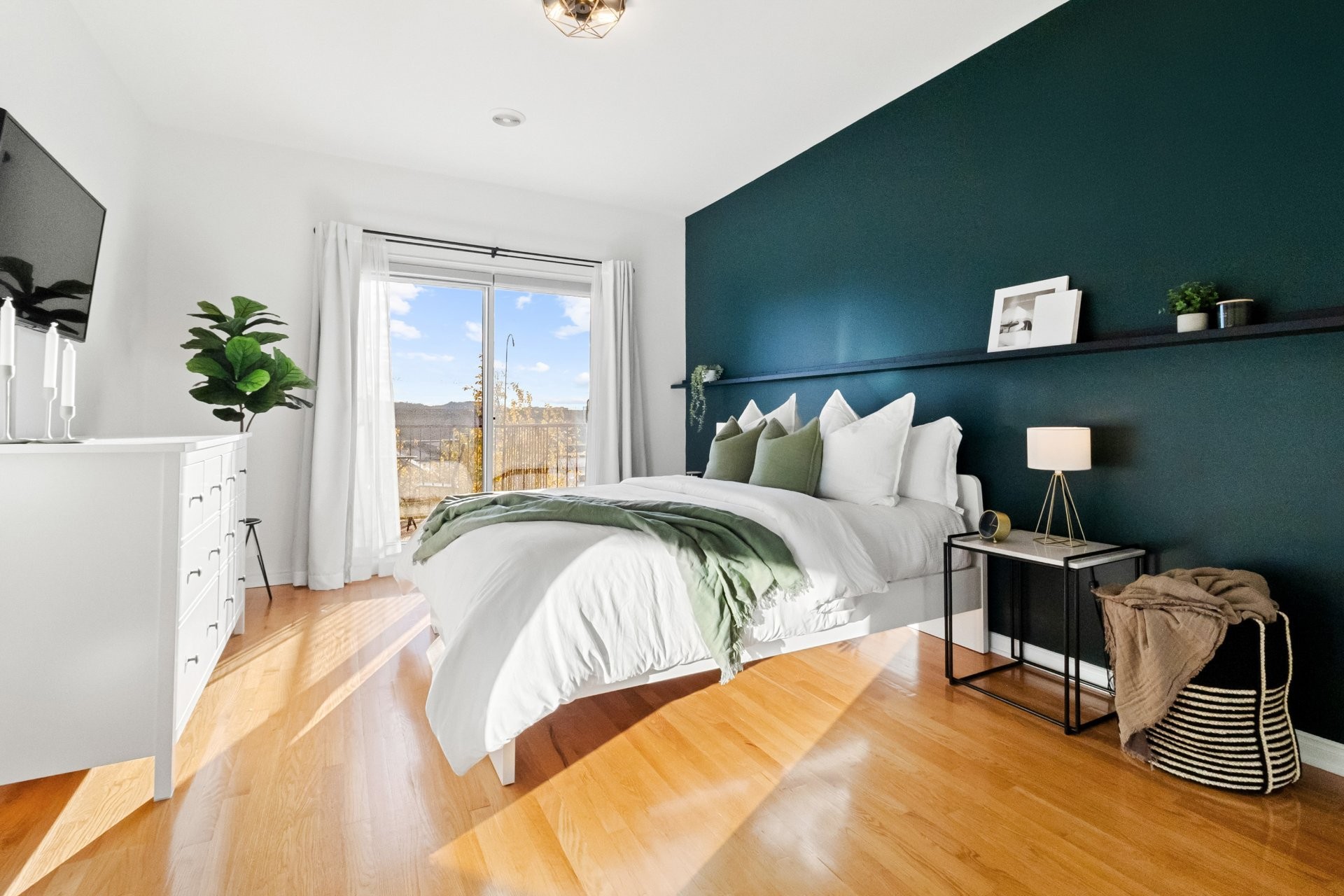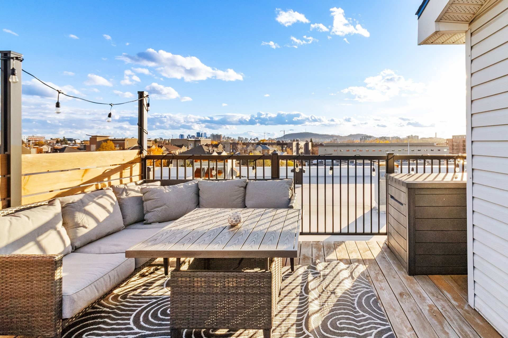Bright and spacious 2-bedroom condo offering 1,122 sq. ft. of living space in the sought-after Shop Angus district. Top-floor corner unit with open-concept layout, quartz kitchen counters, hardwood floors, bathroom with separate shower, and private laundry room. Enjoy two balconies and a large private rooftop terrace, ideal for relaxing or entertaining. Includes private indoor garage and storage locker. Peaceful location near Promenade Masson, parks, cafés, metro, and major roads.