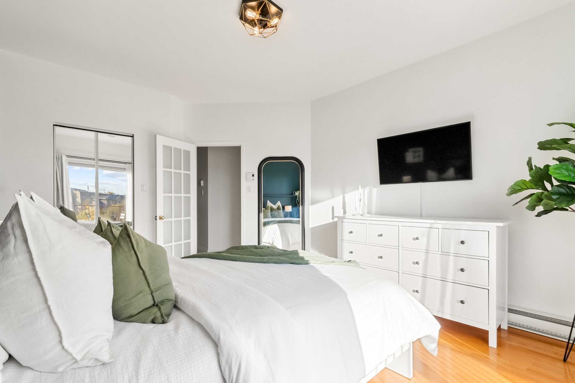 Washer, dryer, all artwork, all mirrors, shelving units, IKEA Pax unit, bistro lights outside, microwave, TV attached to TV mount in primary bedroom
