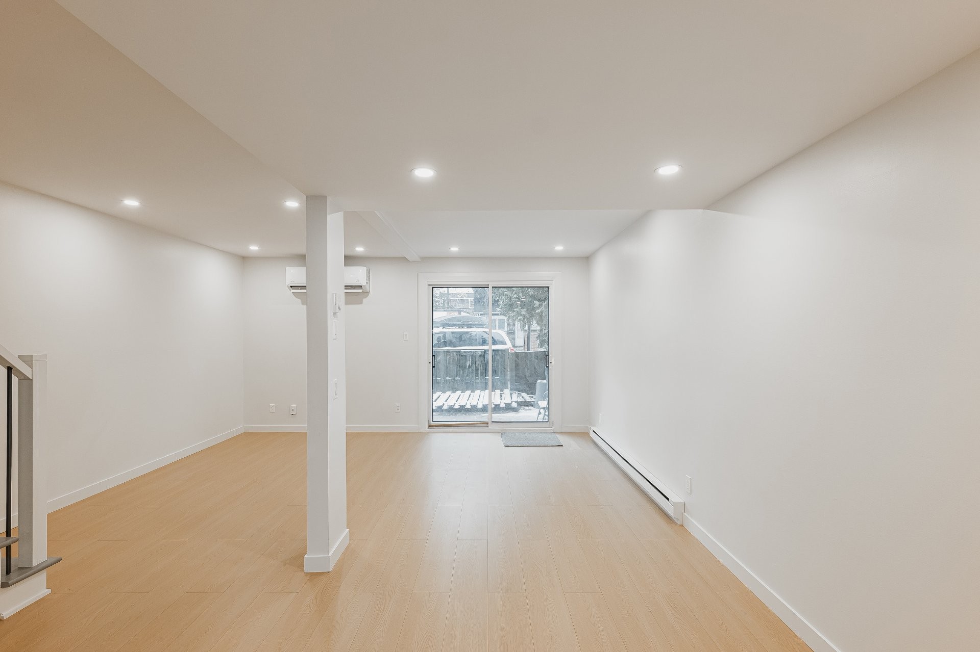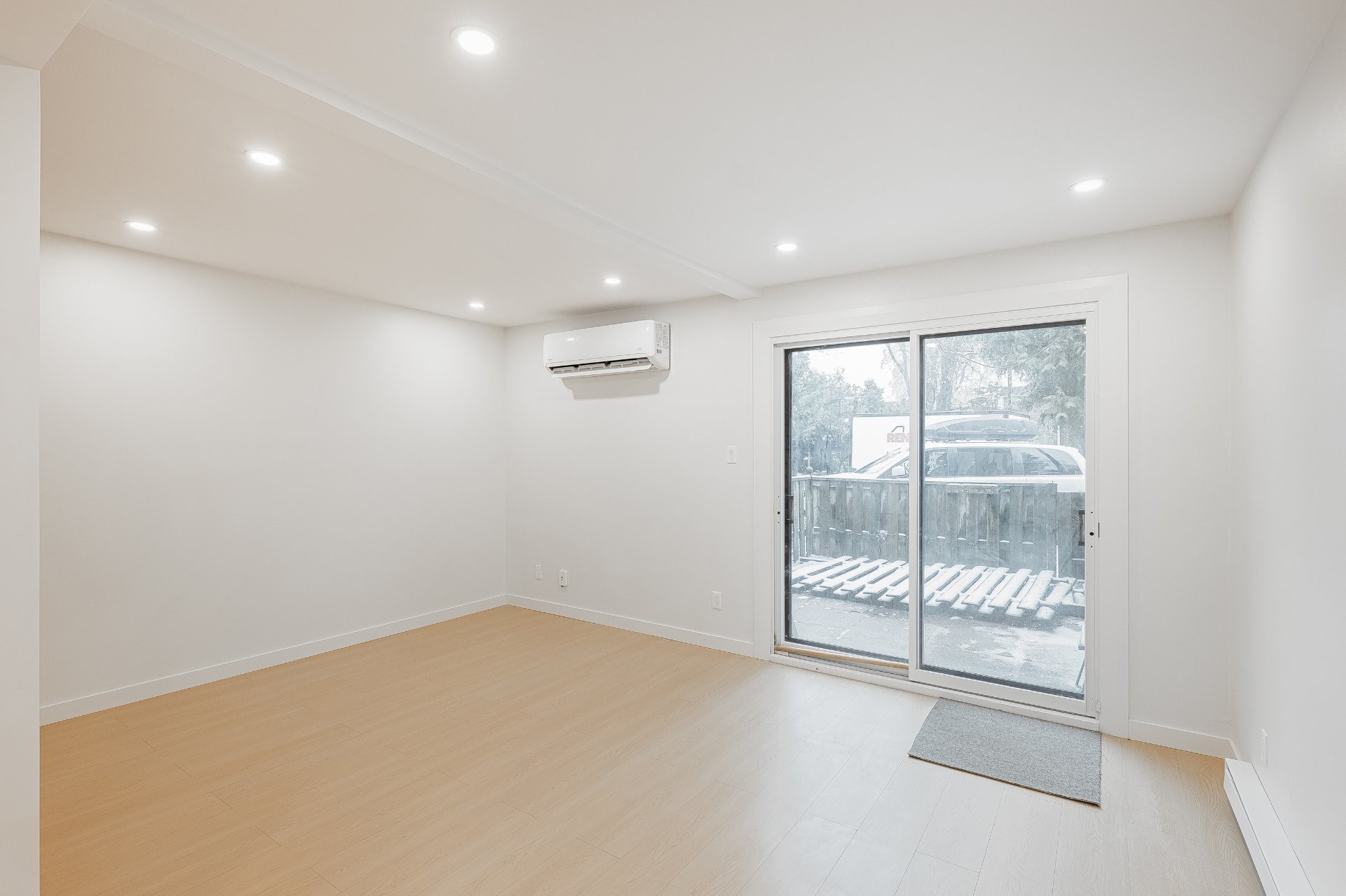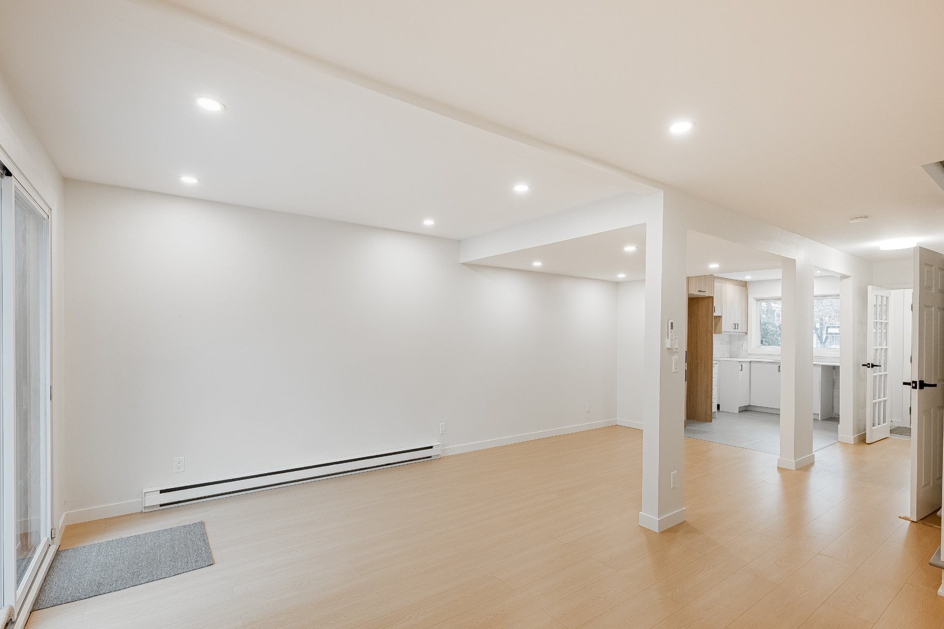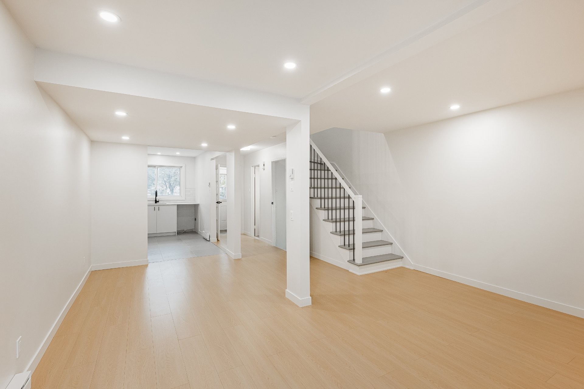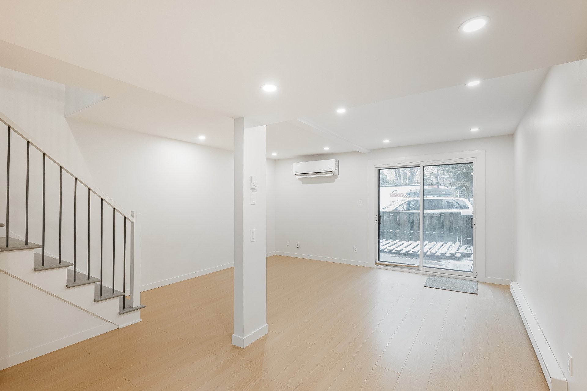**Welcome to 4878 Lake Road -- a fully renovated, turnkey townhouse located in the heart of Dollard-des-Ormeaux.**Recently completed from top to bottom, this home offers modern finishes, bright living spaces, and a thoughtfully redesigned layout ideal for today's lifestyle. The brand-new kitchen stands out with its clean contemporary design: two-tone cabinetry, soft wood accents, sleek black hardware, tiled backsplash, recessed lighting, and a large window that fills the space with natural light. Perfect for cooking, hosting, or simply enjoying the open, airy atmosphere. The main living area has been completely refreshed with new flooring, recessed lighting, and a smooth flow leading to the backyard through large patio doors -- an ideal extension for outdoor living. A new wall-mounted heat pump ensures year-round comfort. Upstairs, the renovated bathroom features modern fixtures, a deep tub/shower combo, matte-black hardware, and a clean, minimalist aesthetic. Each bedroom offers generous natural light and fresh finishes, ready for your personal touch. The basement expands the living space with a fully redone family room -- perfect for a home theatre, gym, playroom, or office -- along with excellent storage options. Located steps from parks, schools, Centennial Park, and multiple amenities, this property combines the peace of a residential street with the convenience of being near Fairview, public transit, and commuter routes.**Highlights:*** **Fully renovated in 2025*** Modern two-tone kitchen with new cabinetry, backs plash & lighting
