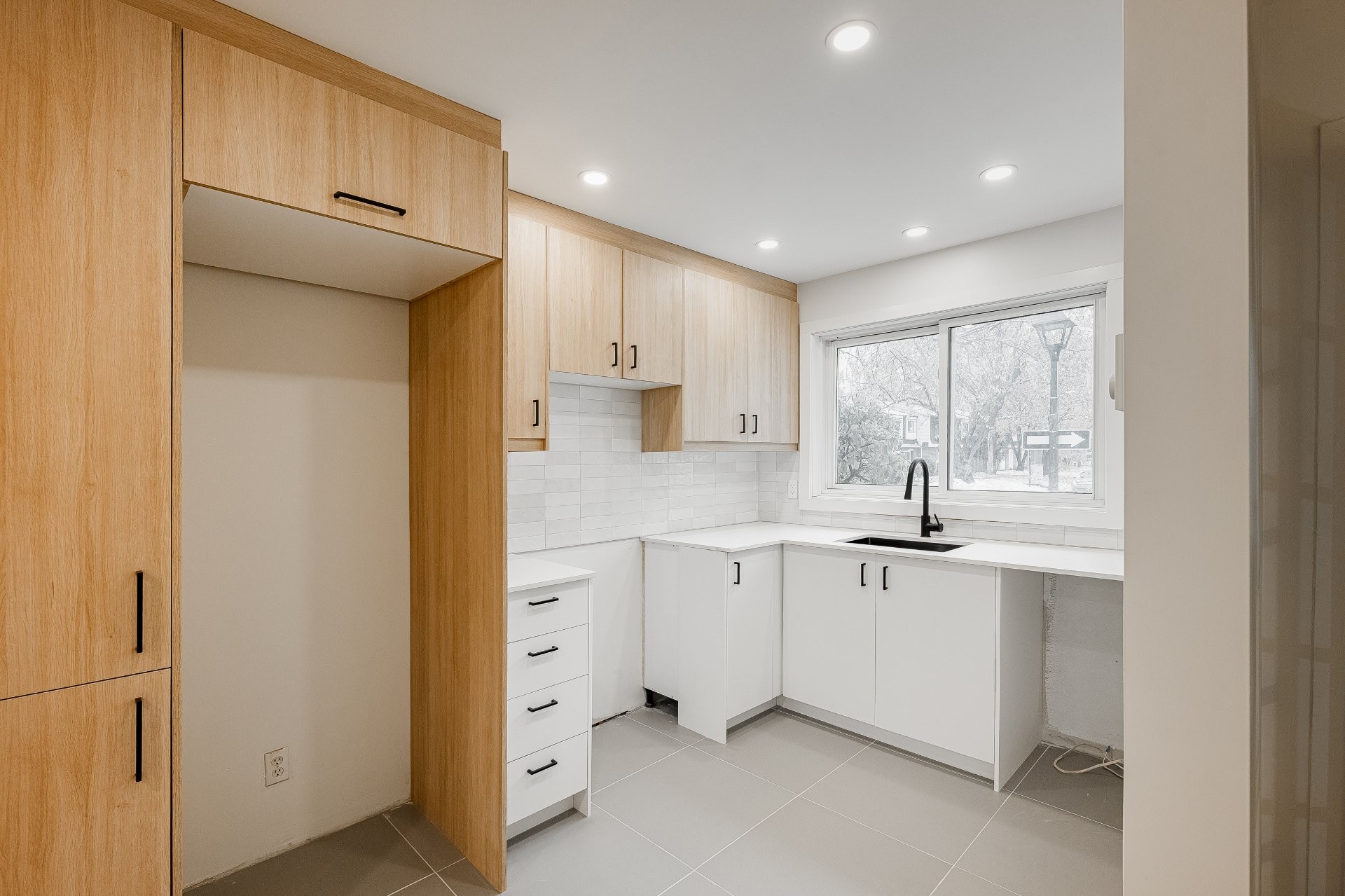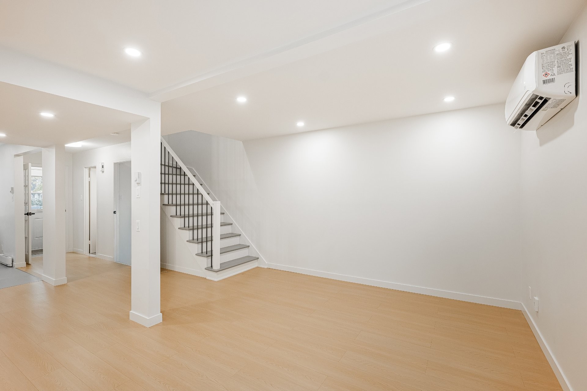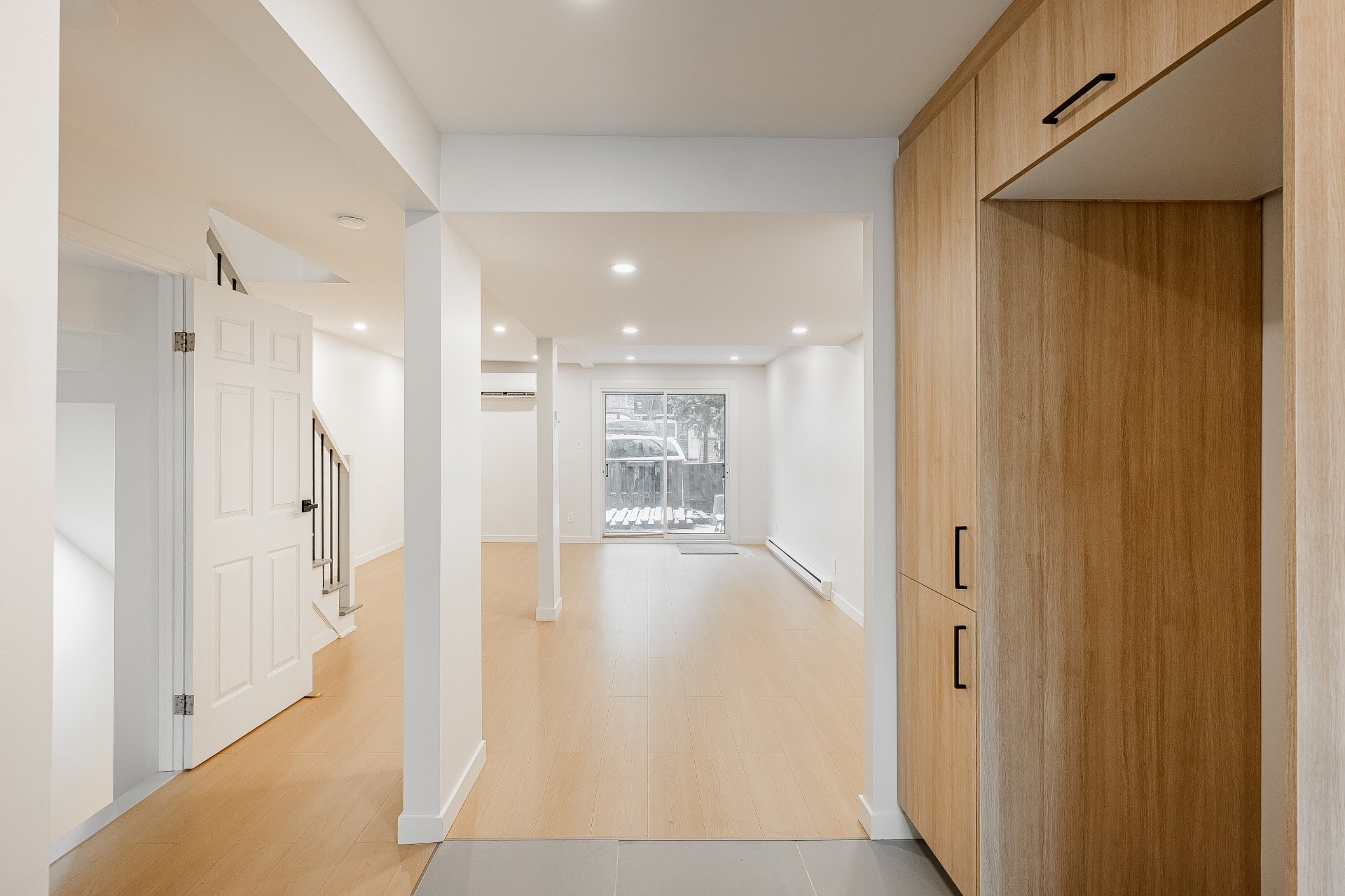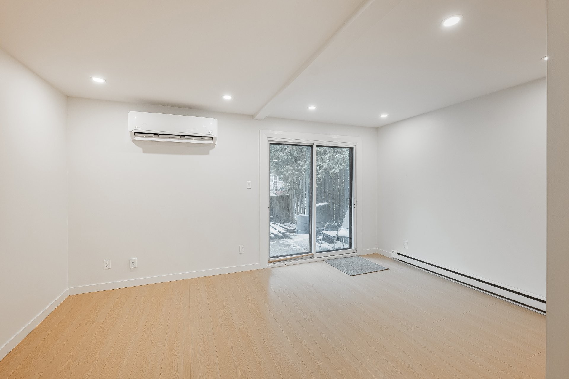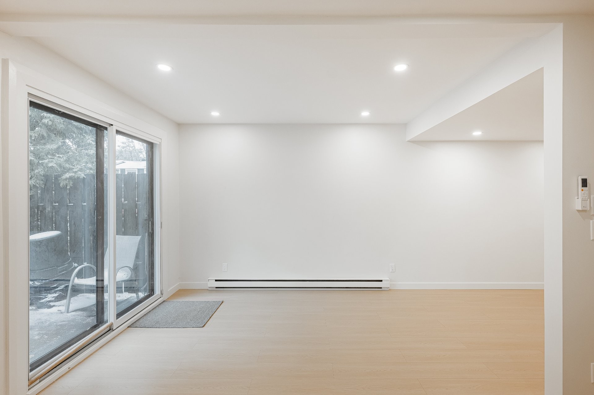 **Welcome to 4878 Lake Road -- a fully renovated, turnkey townhouse located in the heart of Dollard-des-Ormeaux.**Recently completed from top to bottom, this home offers modern finishes, bright living spaces, and a thoughtfully redesigned layout ideal for today's lifestyle. The brand-new kitchen stands out with its clean contemporary design: two-tone cabinetry, soft wood accents, sleek black hardware, tiled backsplash, recessed lighting, and a large window that fills the space with natural light. Perfect for cooking, hosting, or simply enjoying the open, airy atmosphere. The main living area has been completely refreshed with new flooring, recessed lighting, and a smooth flow leading to the backyard through large patio doors -- an ideal extension for outdoor living. A new wall-mounted heat pump ensures year-round comfort. Upstairs, the renovated bathroom features modern fixtures, a deep tub/shower combo, matte-black hardware, and a clean, minimalist aesthetic. Each bedroom offers generous natural light and fresh finishes, ready for your personal touch. The basement expands the living space with a fully redone family room -- perfect for a home theatre, gym, playroom, or office -- along with excellent storage options. Located steps from parks, schools, Centennial Park, and multiple amenities, this property combines the peace of a residential street with the convenience of being near Fairview, public transit, and commuter routes.**Highlights:*** **Fully renovated in 2025*** Modern two-tone kitchen with new cabinetry, backs plash & lighting