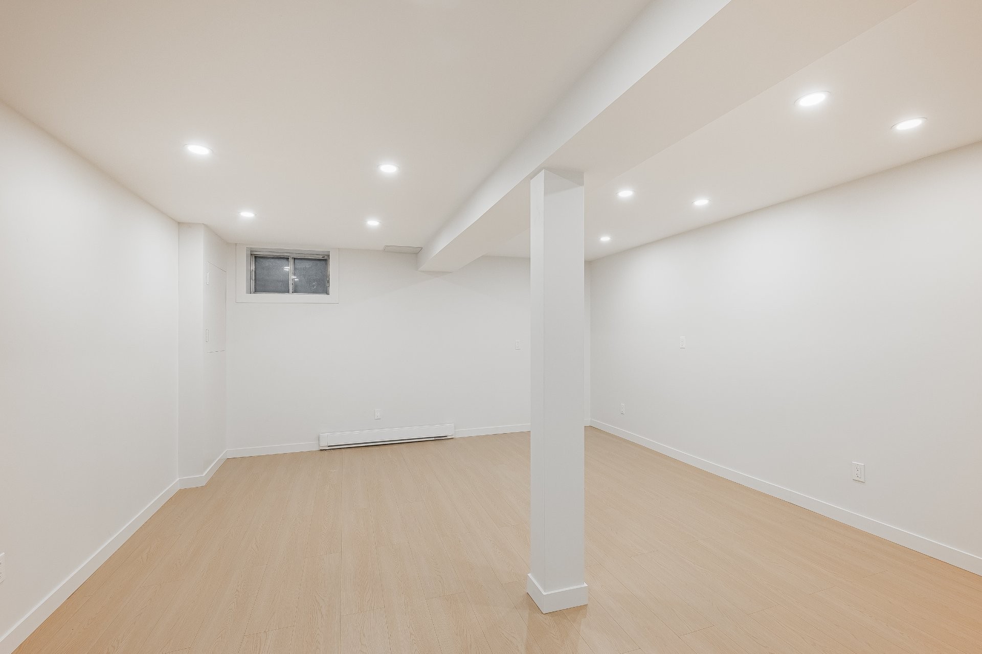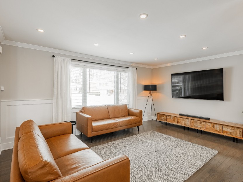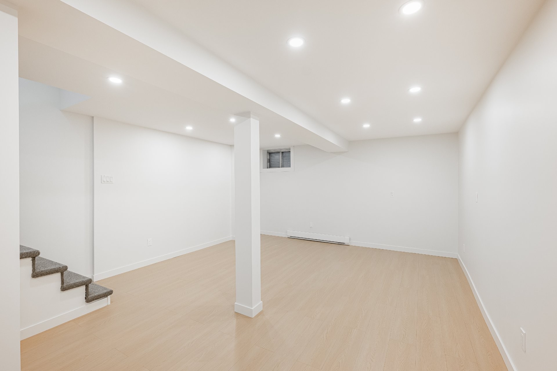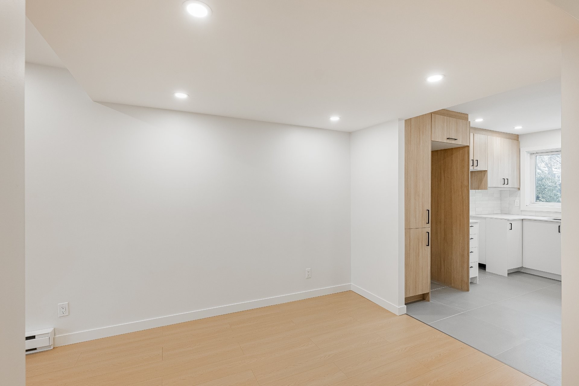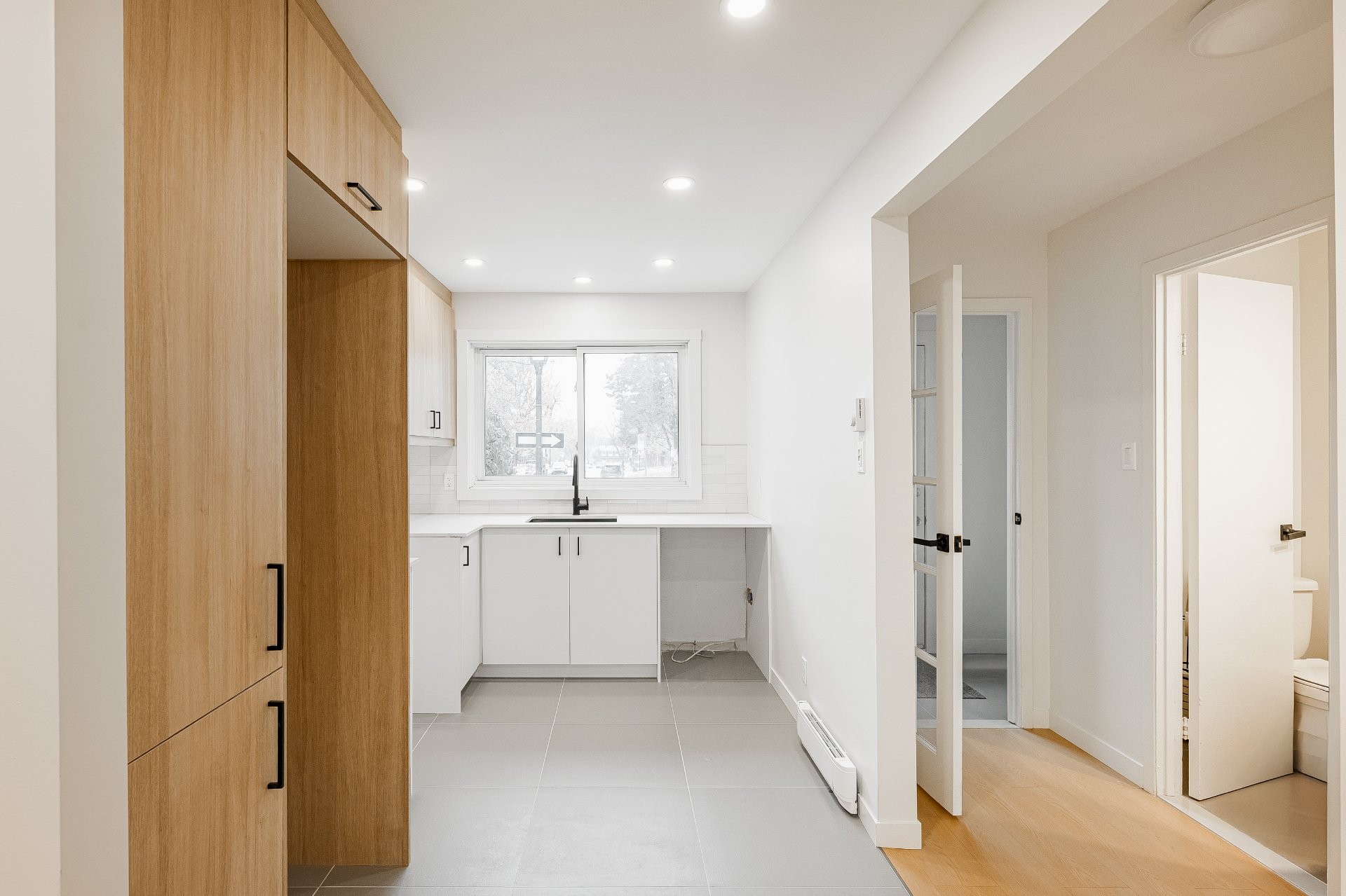 **Welcome to 4878 Lake Road -- a fully renovated, turnkey townhouse located in the heart of Dollard-des-Ormeaux.**Recently completed from top to bottom, this home offers modern finishes, bright living spaces, and a thoughtfully redesigned layout ideal for today's lifestyle. The brand-new kitchen stands out with its clean contemporary design: two-tone cabinetry, soft wood accents, sleek black hardware, tiled backsplash, recessed lighting, and a large window that fills the space with natural light. Perfect for cooking, hosting, or simply enjoying the open, airy atmosphere. The main living area has been completely refreshed with new flooring, recessed lighting, and a smooth flow leading to the backyard through large patio doors -- an ideal extension for outdoor living. A new wall-mounted heat pump ensures year-round comfort. Upstairs, the renovated bathroom features modern fixtures, a deep tub/shower combo, matte-black hardware, and a clean, minimalist aesthetic. Each bedroom offers generous natural light and fresh finishes, ready for your personal touch. The basement expands the living space with a fully redone family room -- perfect for a home theatre, gym, playroom, or office -- along with excellent storage options. Located steps from parks, schools, Centennial Park, and multiple amenities, this property combines the peace of a residential street with the convenience of being near Fairview, public transit, and commuter routes.**Highlights:*** **Fully renovated in 2025*** Modern two-tone kitchen with new cabinetry, backs plash & lighting