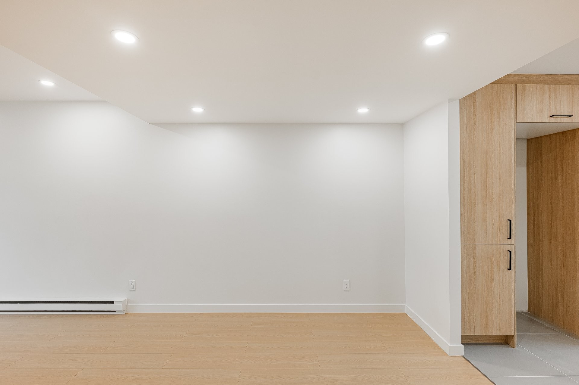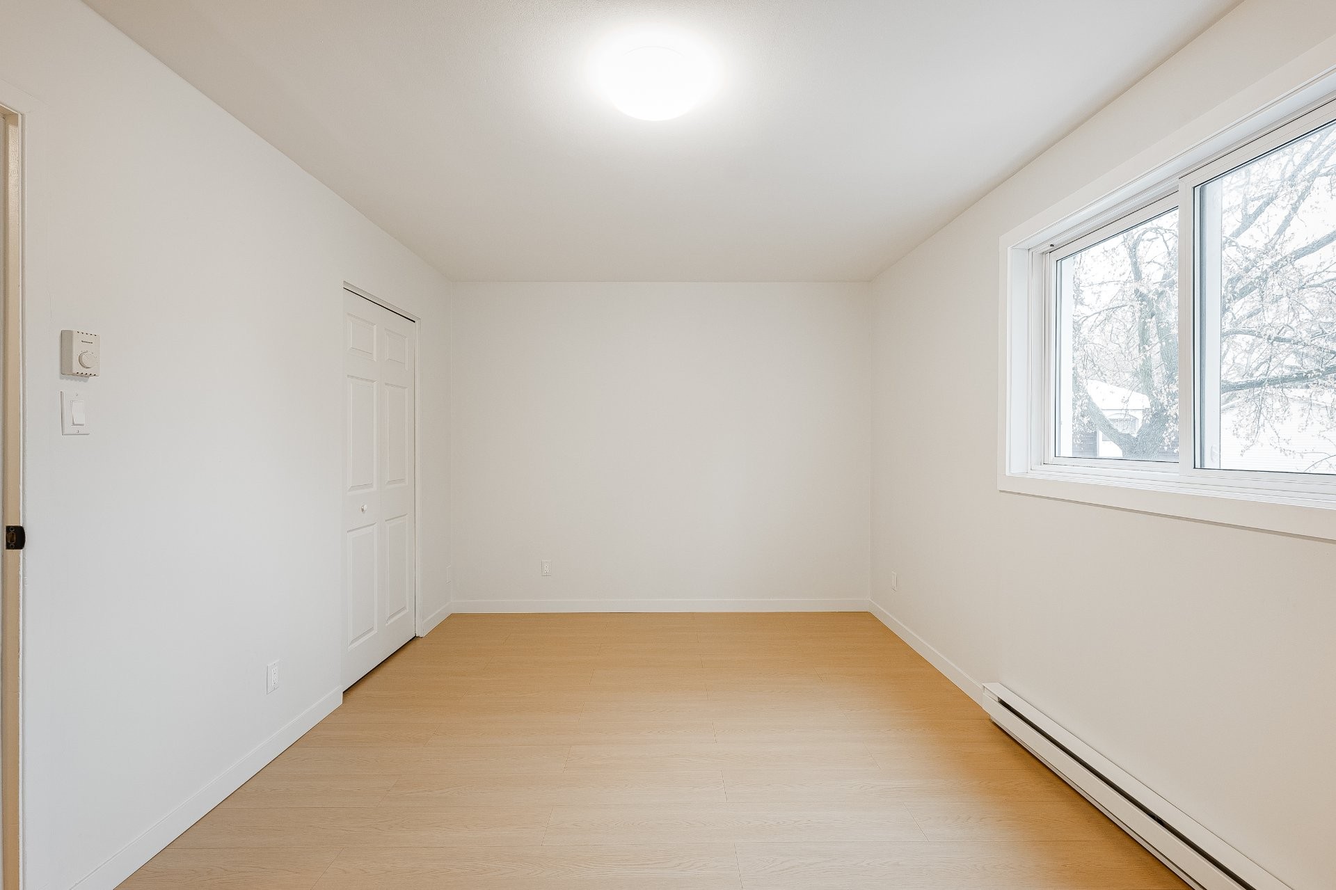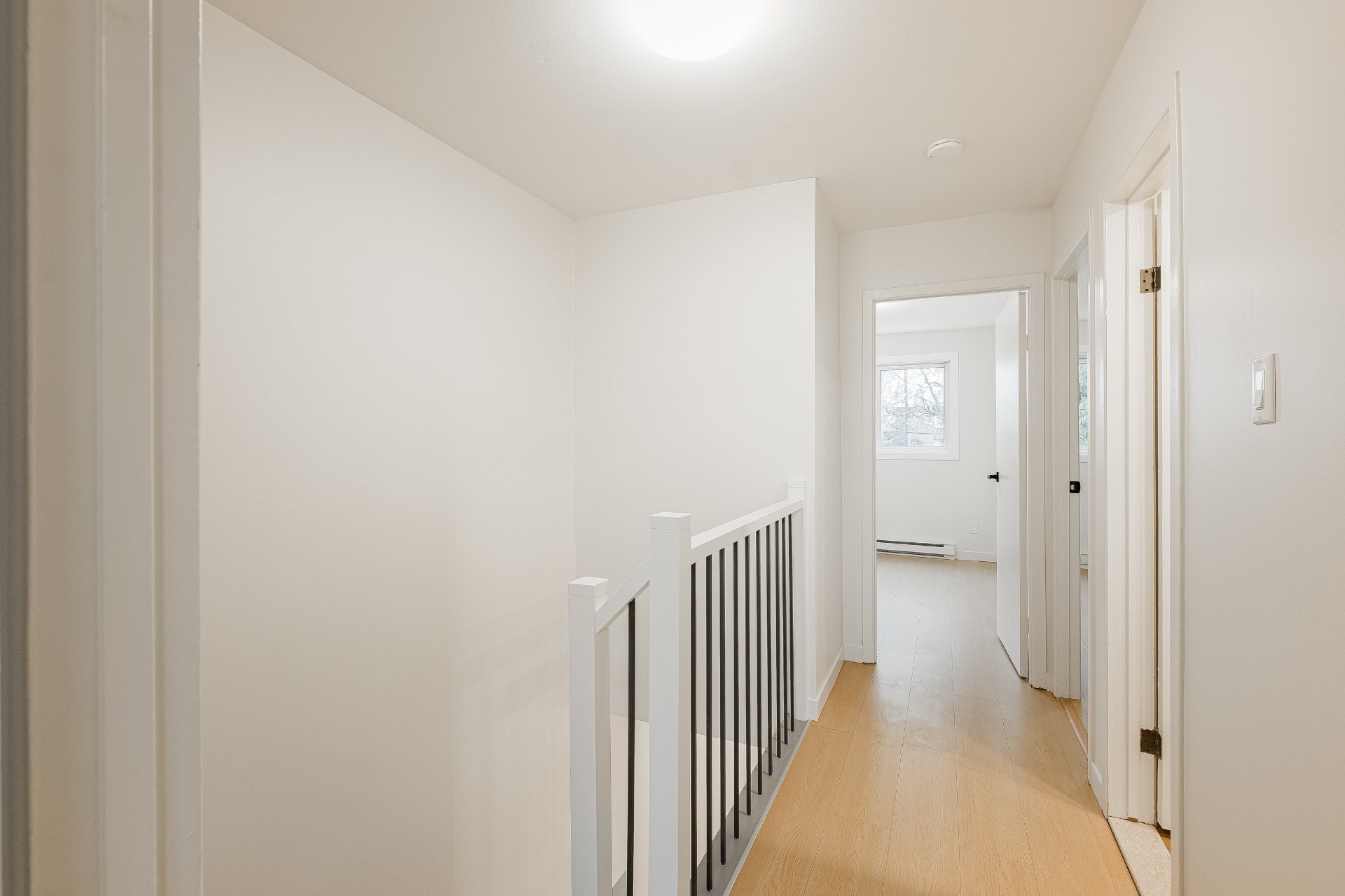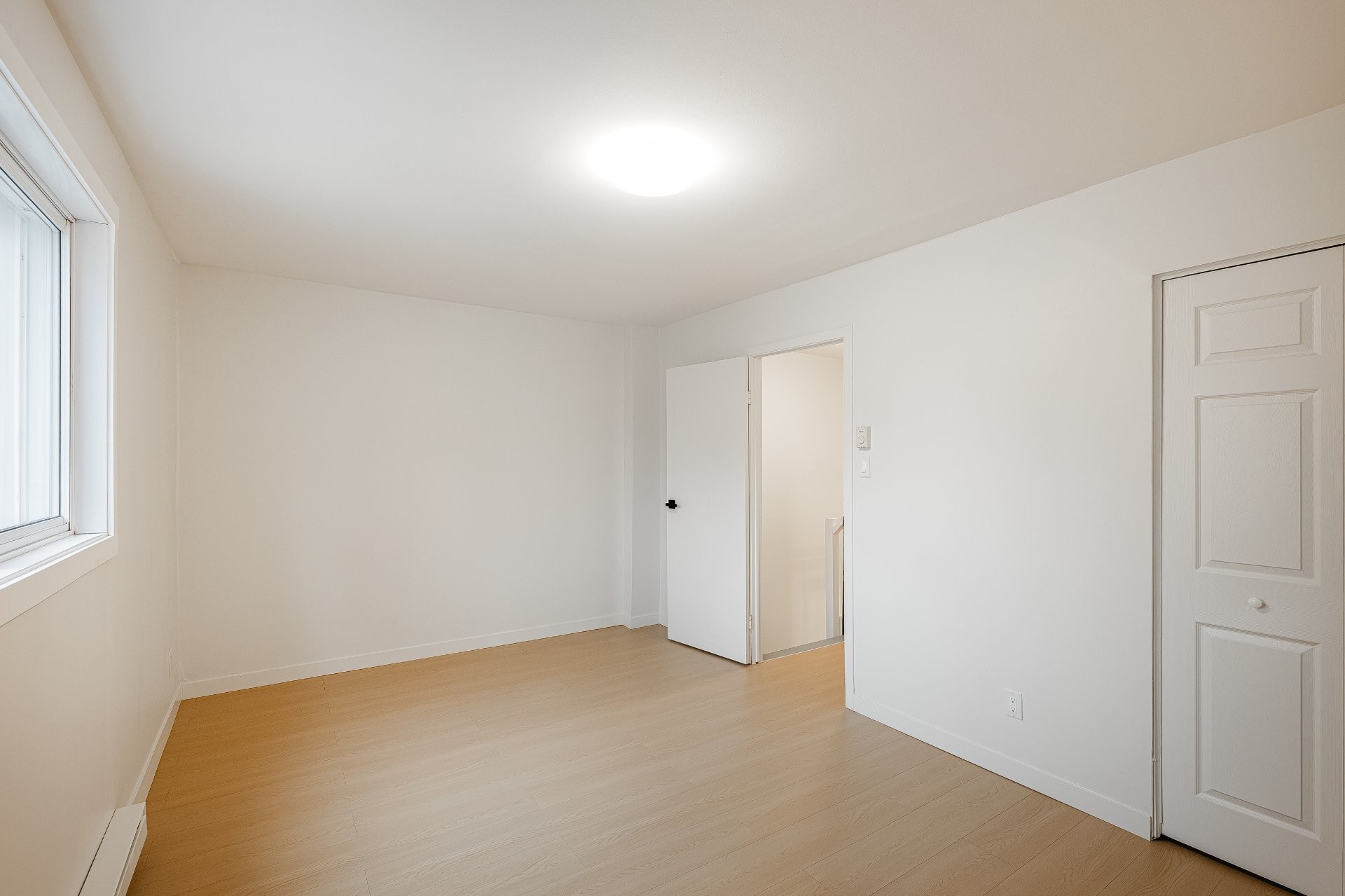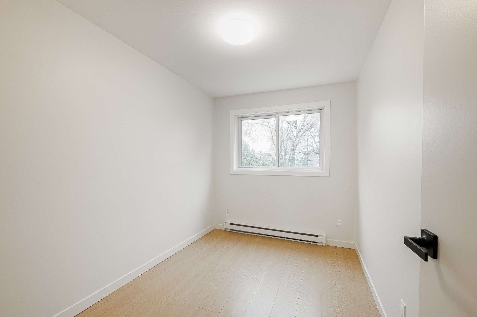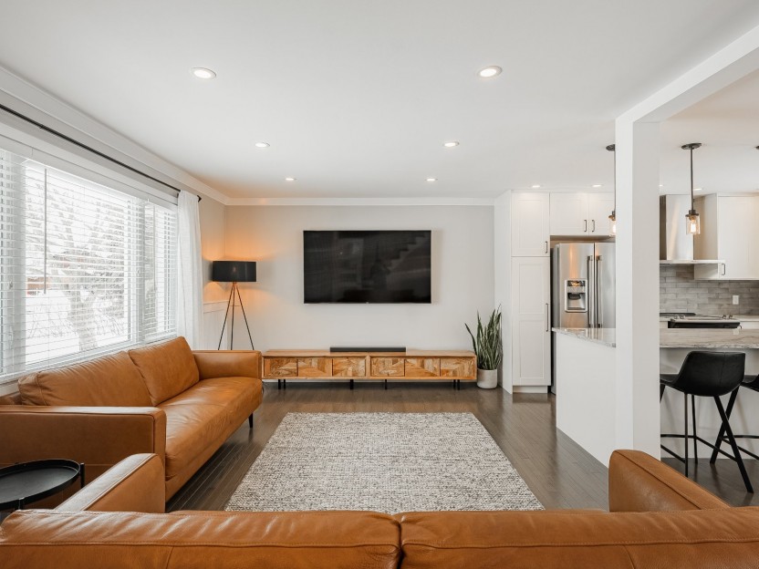 **Welcome to 4878 Lake Road -- a fully renovated, turnkey townhouse located in the heart of Dollard-des-Ormeaux.**Recently completed from top to bottom, this home offers modern finishes, bright living spaces, and a thoughtfully redesigned layout ideal for today's lifestyle. The brand-new kitchen stands out with its clean contemporary design: two-tone cabinetry, soft wood accents, sleek black hardware, tiled backsplash, recessed lighting, and a large window that fills the space with natural light. Perfect for cooking, hosting, or simply enjoying the open, airy atmosphere. The main living area has been completely refreshed with new flooring, recessed lighting, and a smooth flow leading to the backyard through large patio doors -- an ideal extension for outdoor living. A new wall-mounted heat pump ensures year-round comfort. Upstairs, the renovated bathroom features modern fixtures, a deep tub/shower combo, matte-black hardware, and a clean, minimalist aesthetic. Each bedroom offers generous natural light and fresh finishes, ready for your personal touch. The basement expands the living space with a fully redone family room -- perfect for a home theatre, gym, playroom, or office -- along with excellent storage options. Located steps from parks, schools, Centennial Park, and multiple amenities, this property combines the peace of a residential street with the convenience of being near Fairview, public transit, and commuter routes.**Highlights:*** **Fully renovated in 2025*** Modern two-tone kitchen with new cabinetry, backs plash & lighting