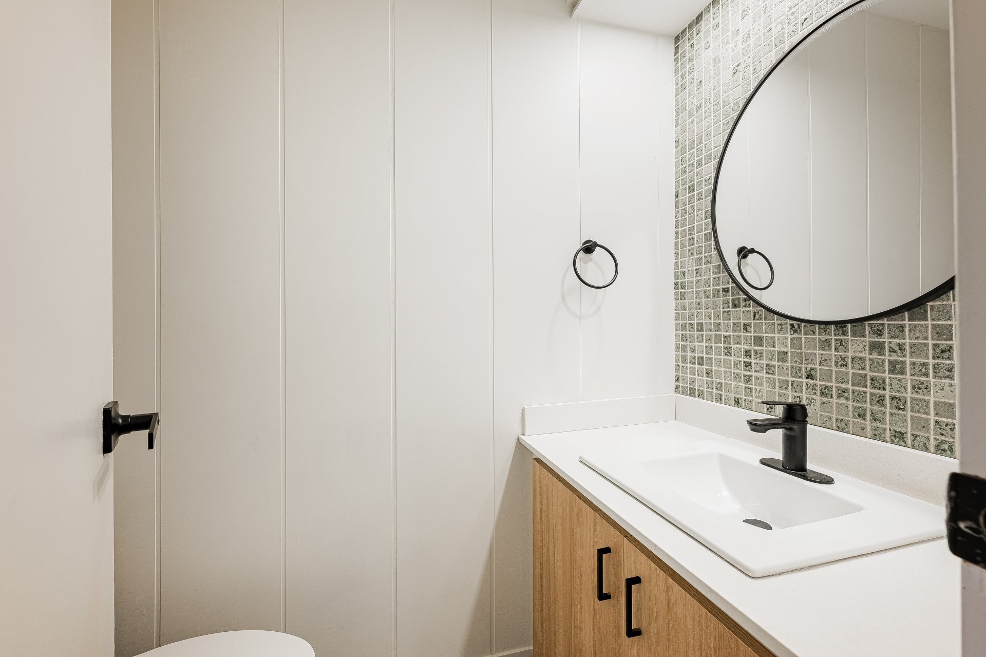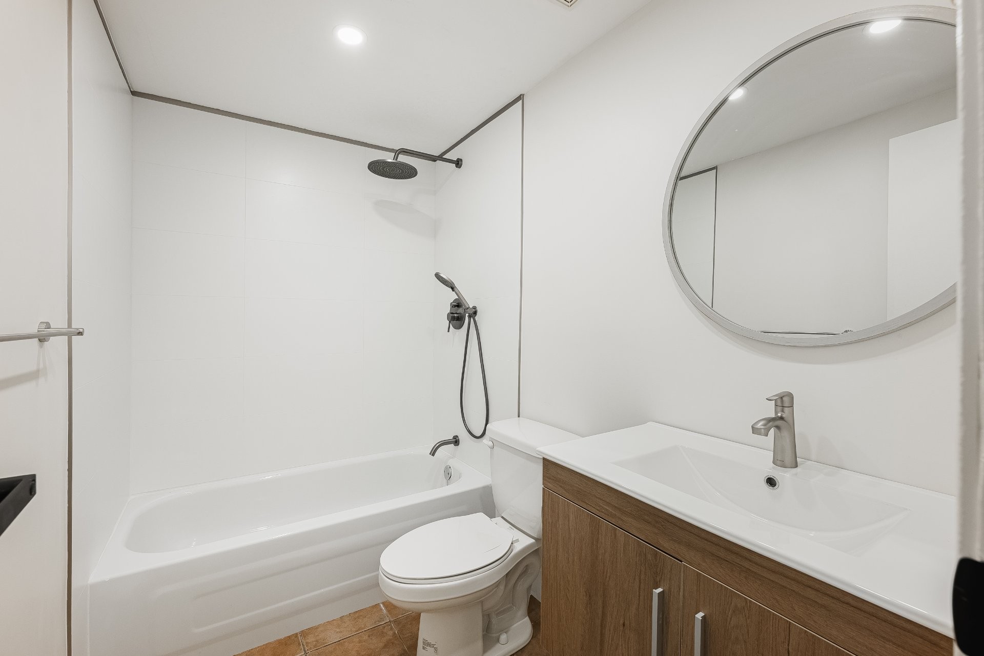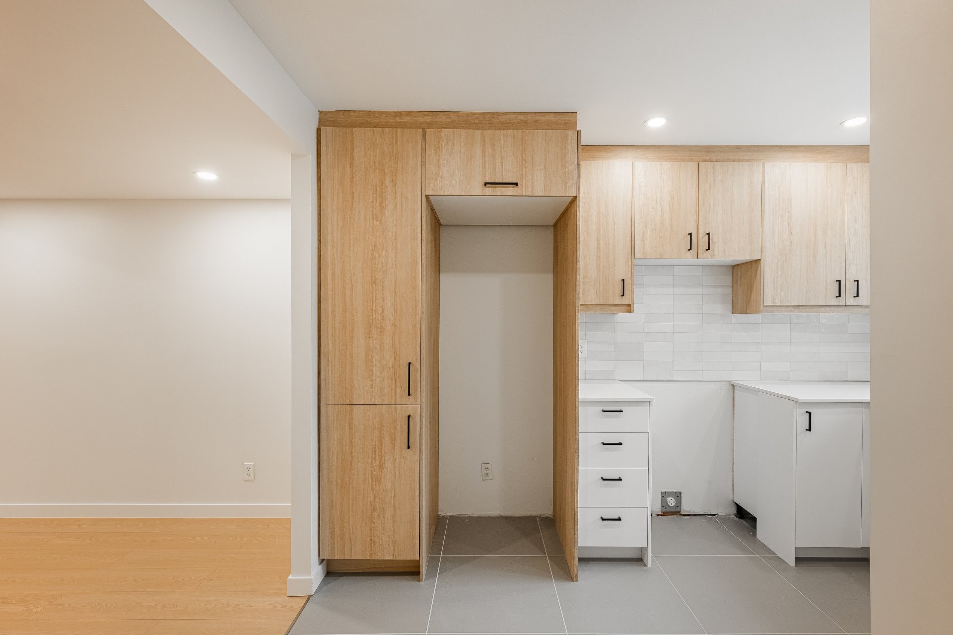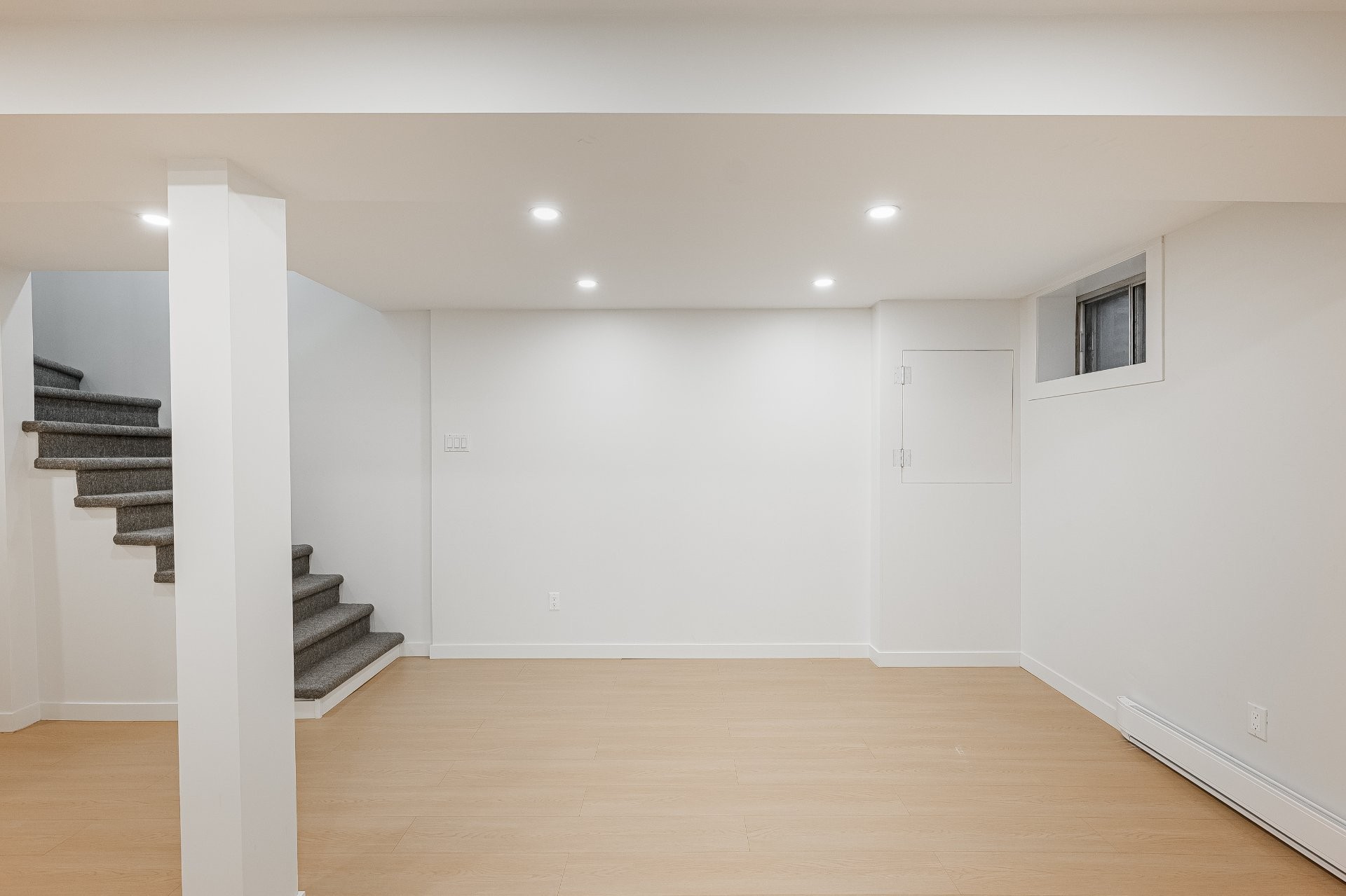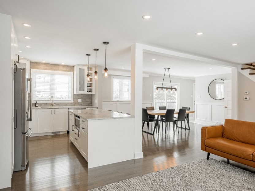 **Welcome to 4878 Lake Road -- a fully renovated, turnkey townhouse located in the heart of Dollard-des-Ormeaux.**Recently completed from top to bottom, this home offers modern finishes, bright living spaces, and a thoughtfully redesigned layout ideal for today's lifestyle. The brand-new kitchen stands out with its clean contemporary design: two-tone cabinetry, soft wood accents, sleek black hardware, tiled backsplash, recessed lighting, and a large window that fills the space with natural light. Perfect for cooking, hosting, or simply enjoying the open, airy atmosphere. The main living area has been completely refreshed with new flooring, recessed lighting, and a smooth flow leading to the backyard through large patio doors -- an ideal extension for outdoor living. A new wall-mounted heat pump ensures year-round comfort. Upstairs, the renovated bathroom features modern fixtures, a deep tub/shower combo, matte-black hardware, and a clean, minimalist aesthetic. Each bedroom offers generous natural light and fresh finishes, ready for your personal touch. The basement expands the living space with a fully redone family room -- perfect for a home theatre, gym, playroom, or office -- along with excellent storage options. Located steps from parks, schools, Centennial Park, and multiple amenities, this property combines the peace of a residential street with the convenience of being near Fairview, public transit, and commuter routes.**Highlights:*** **Fully renovated in 2025*** Modern two-tone kitchen with new cabinetry, backs plash & lighting