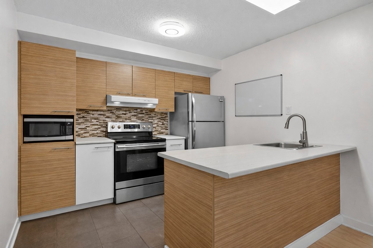 Unité lumineuse et aérée de 1 chambre sur deux niveaux, avec chambre en mezzanine et plafonds de 15 pieds. Cuisine rénovée avec comptoirs en...