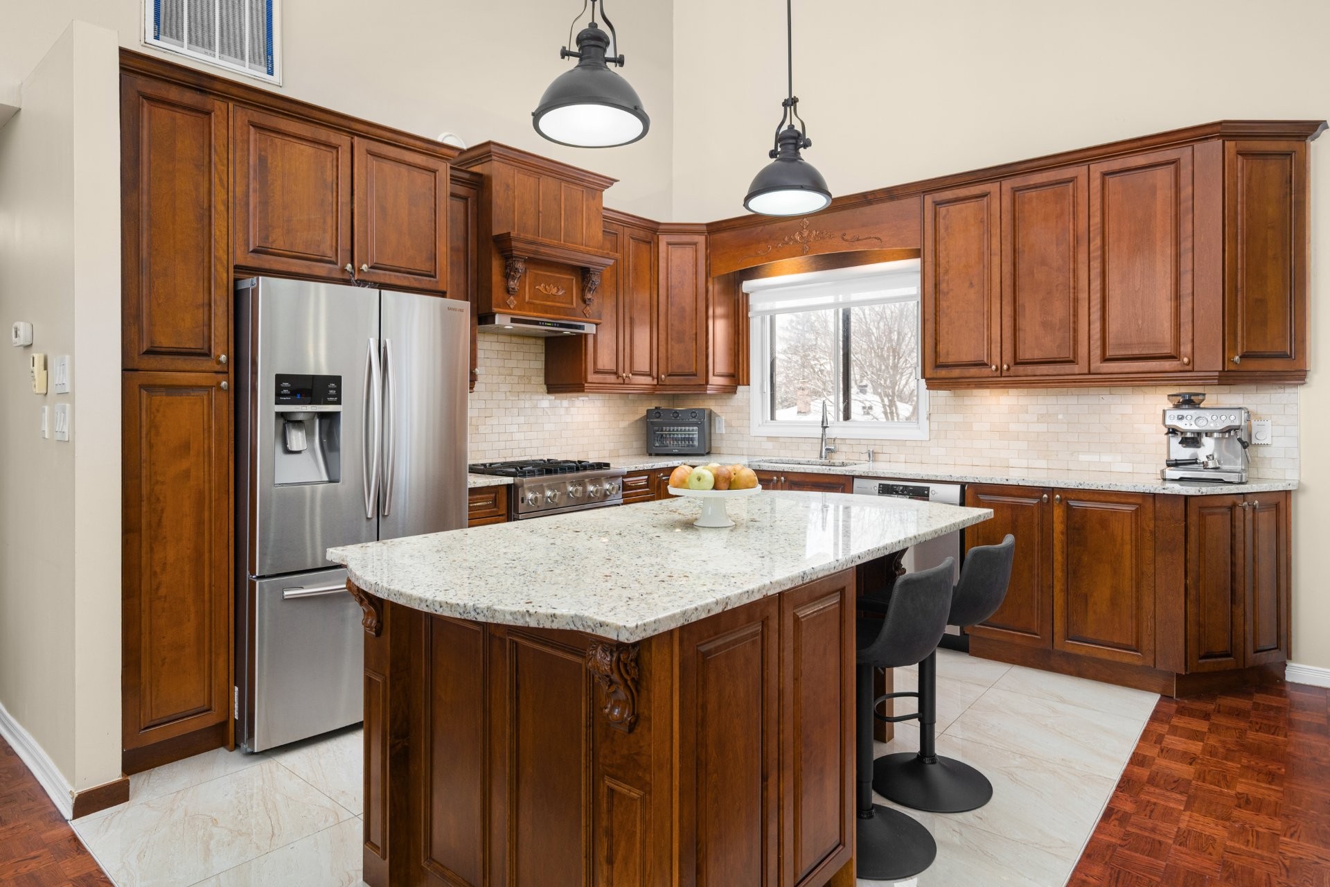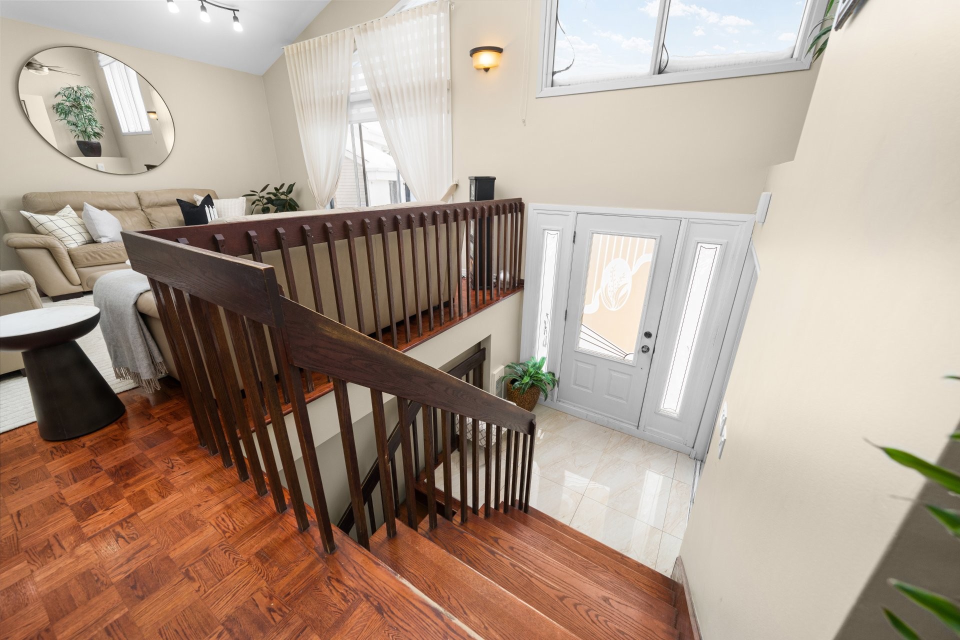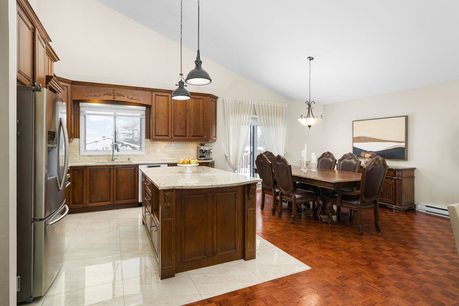 -Welcoming entrance hall leading into a spacious main living area-Living room with cathedral ceiling creating impressive volume-Large room ideal for hosting-Beautiful Kitchen with solid wood cabinets and premium granite countertops offering excellent functionality and potential-3 spacious bedrooms and a large full bathroom