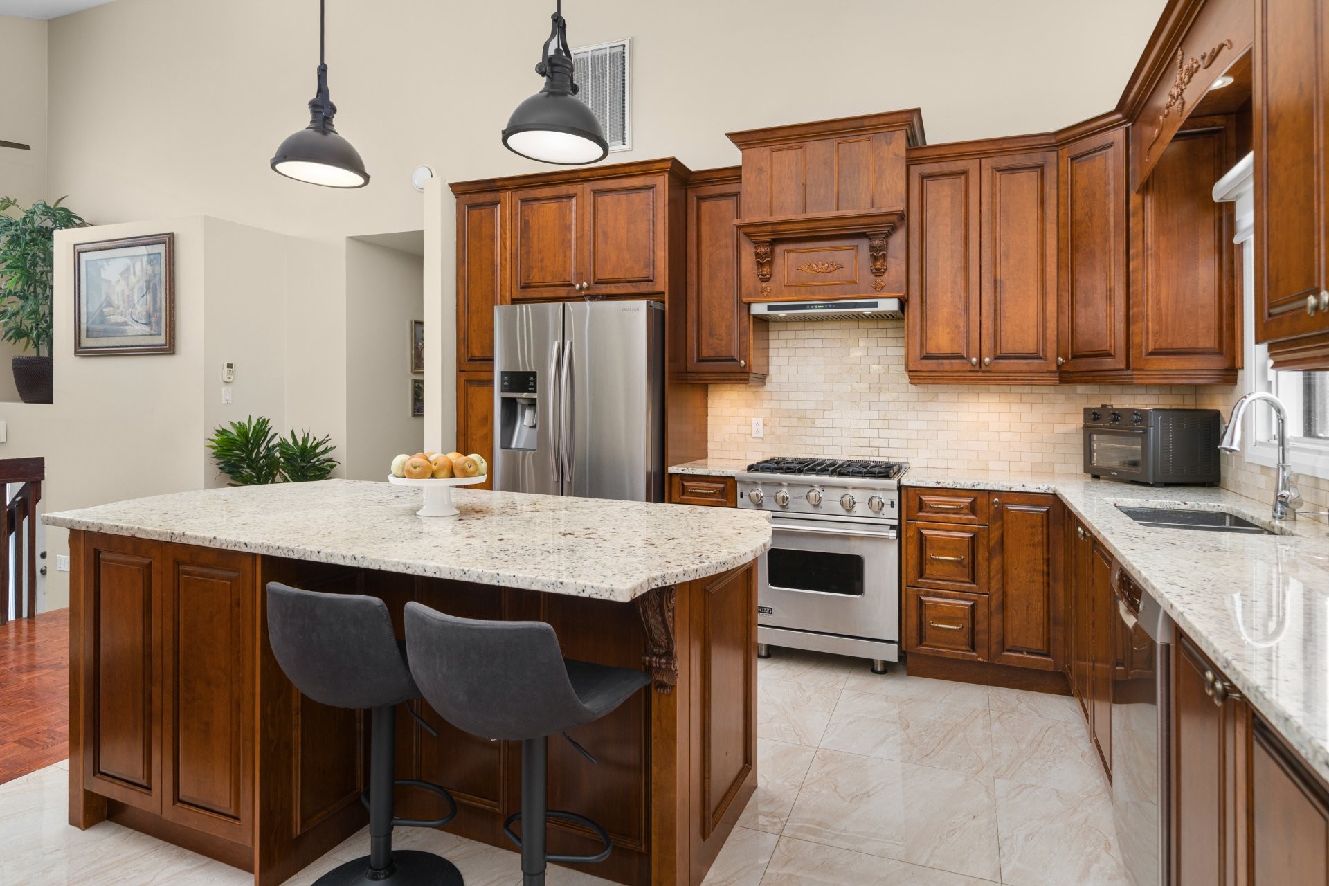 -Spacious family room ideal for: Home theater, Playroom, Gym or office space-Additional bedroom at the garden level with second full bathroom, Separate laundry room-Direct access to yard, offering practicality and convenience