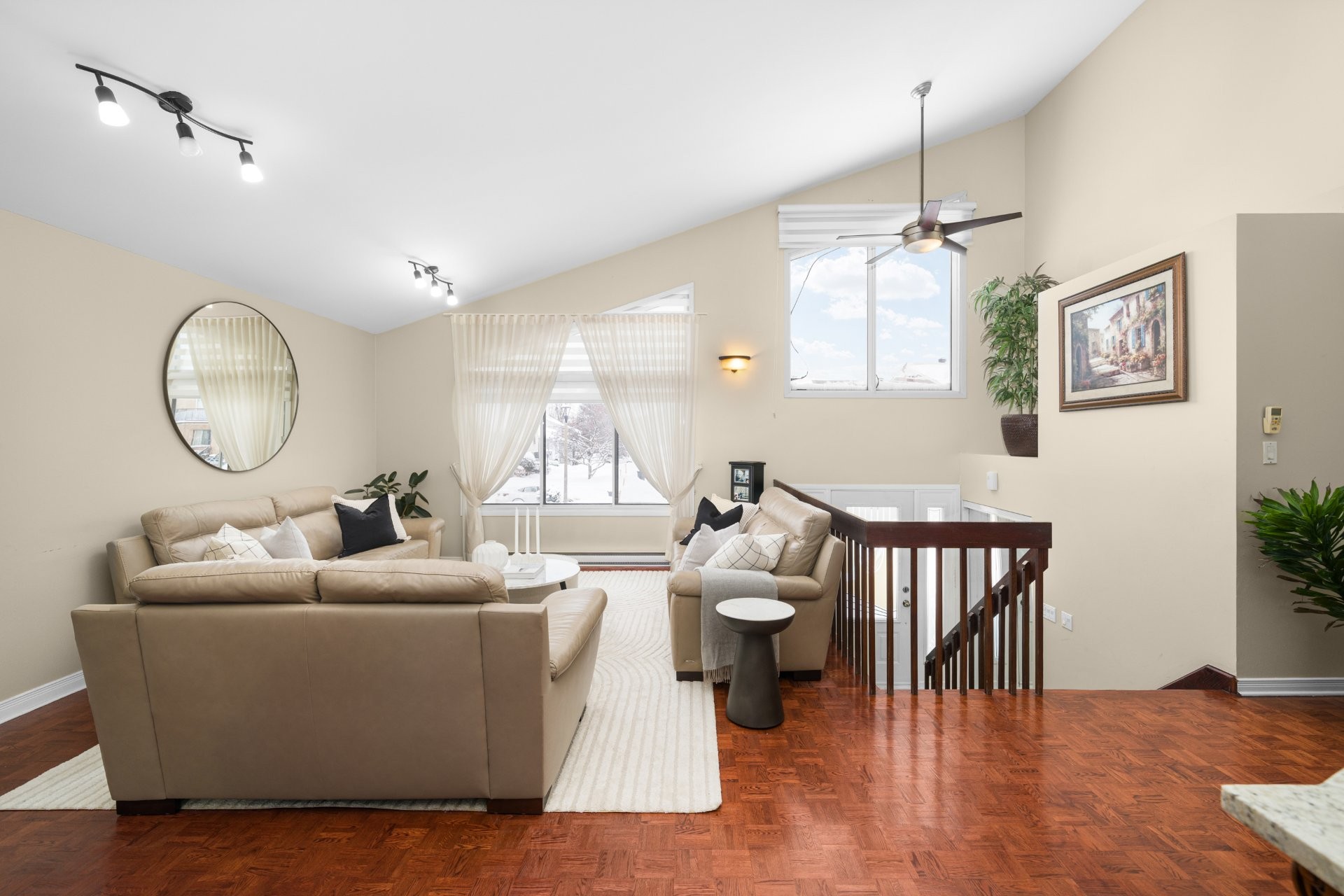 Exceptional raised bungalow distinguished by its cathedral ceilings and expansive open layout. This residence delivers remarkable volume, natural light, and a refined sense of space throughout. The main living areas flow seamlessly, enhanced by large windows and elevated ceiling heights rarely found in comparable homes. Featuring a spacious double garage, generous living areas, and a versatile lower level ideal for family living or entertaining. Situated on a sizeable lot in a quiet, established section of Pierrefonds, close to parks, schools, services, and major access routes. A rare opportunity combining scale, comfort, and architecture.