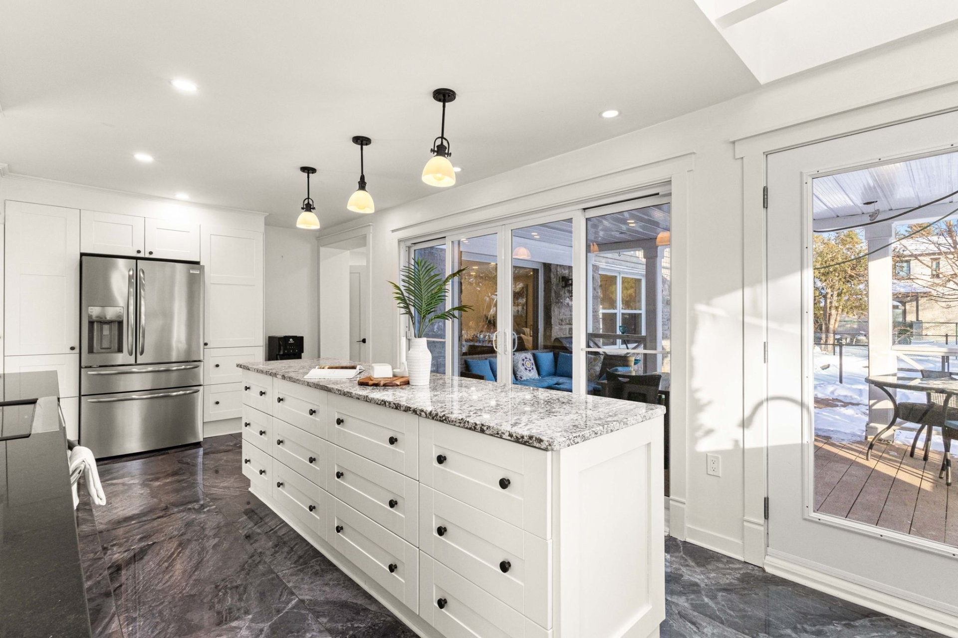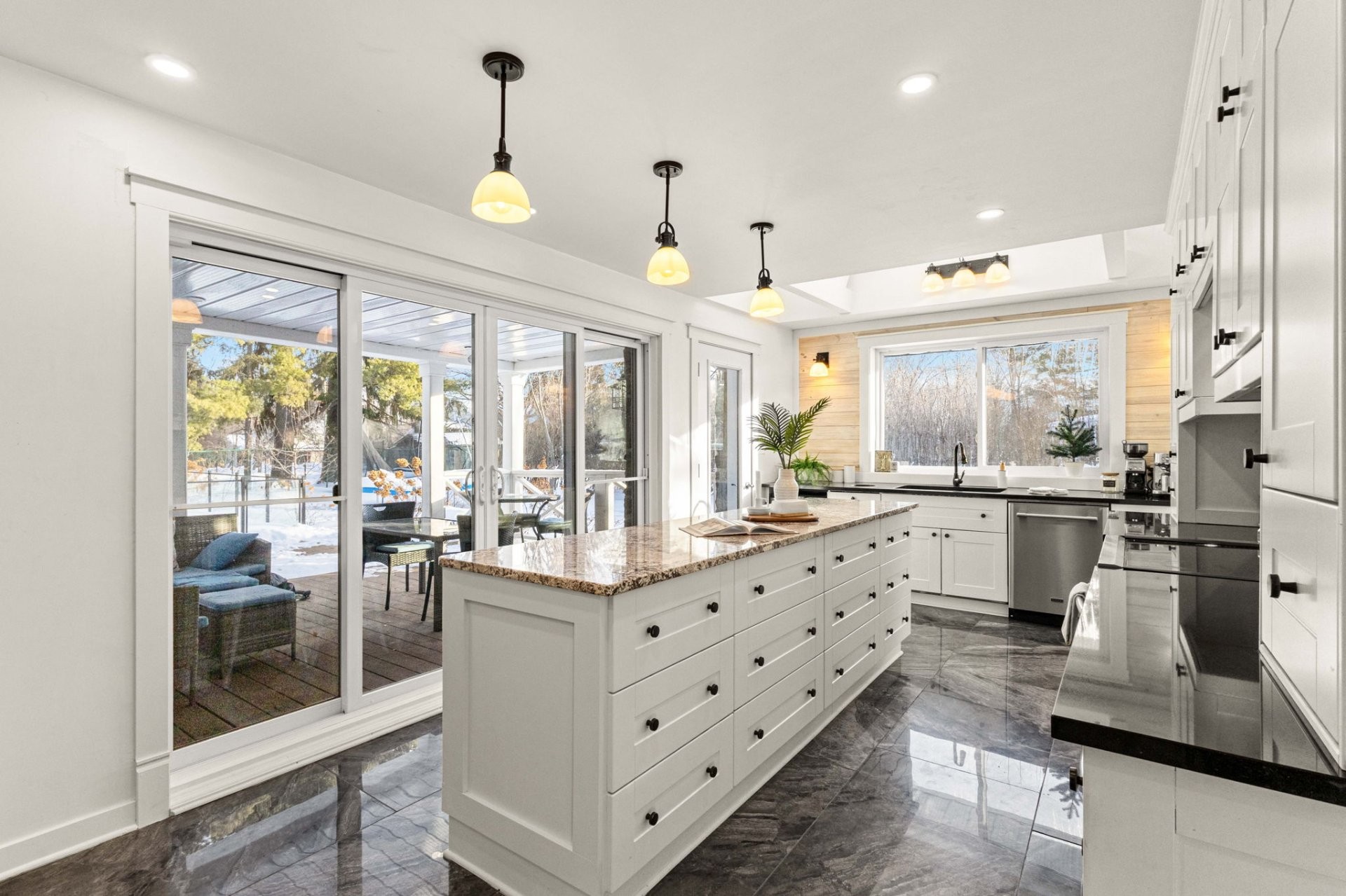 Set on a quiet private cul-de-sac in Baie-D'Urfé, this fully renovated home is ideal for families seeking comfort, style, and tranquility. Thoughtfully designed for both everyday living and entertaining, it offers two welcoming living rooms, an elegant dining room, and a gorgeous kitchen bathed in natural light from abundant windows. Heated floors enhance most rooms for year-round comfort. The serene backyard is a true oasis with mature trees, a fenced in-ground pool, a covered patio, and ample green space. Perfectly located near excellent schools and daycares, and within walking distance to Lakeshore Blvd and Fritz Farm!