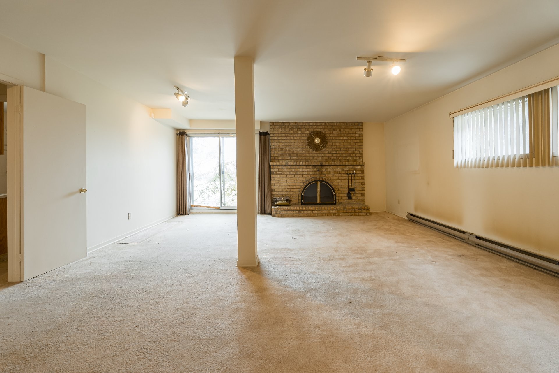 The lower level offers even more living space, including an additional bedroom, a large family room with a wood fireplace, and a generously sized laundry room with plenty of storage potential.