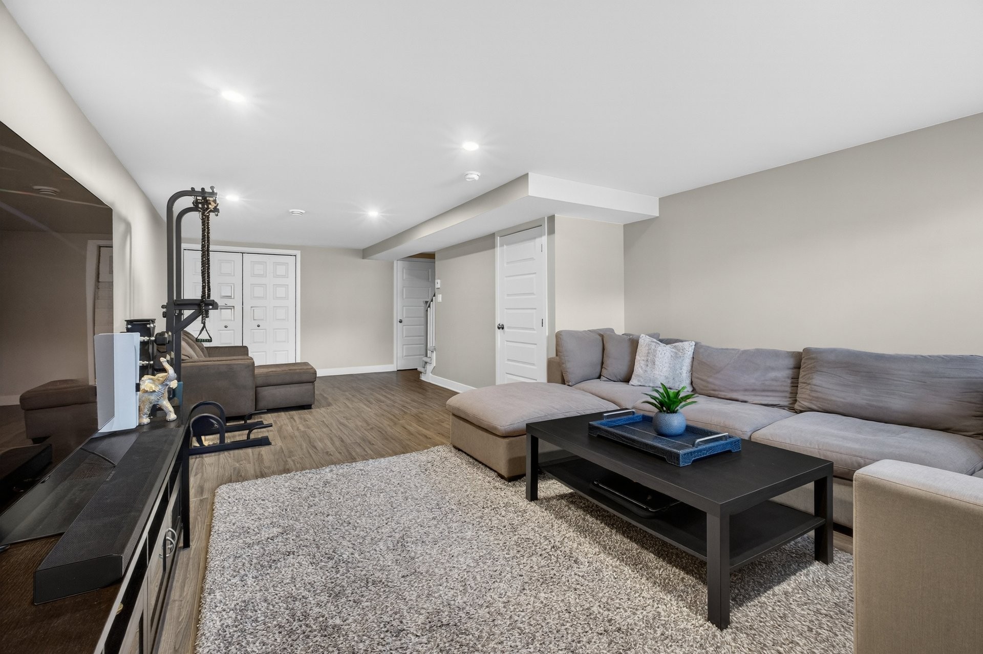 The finished basement is generously sized and enhanced with recessed lighting, creating a bright and inviting space.