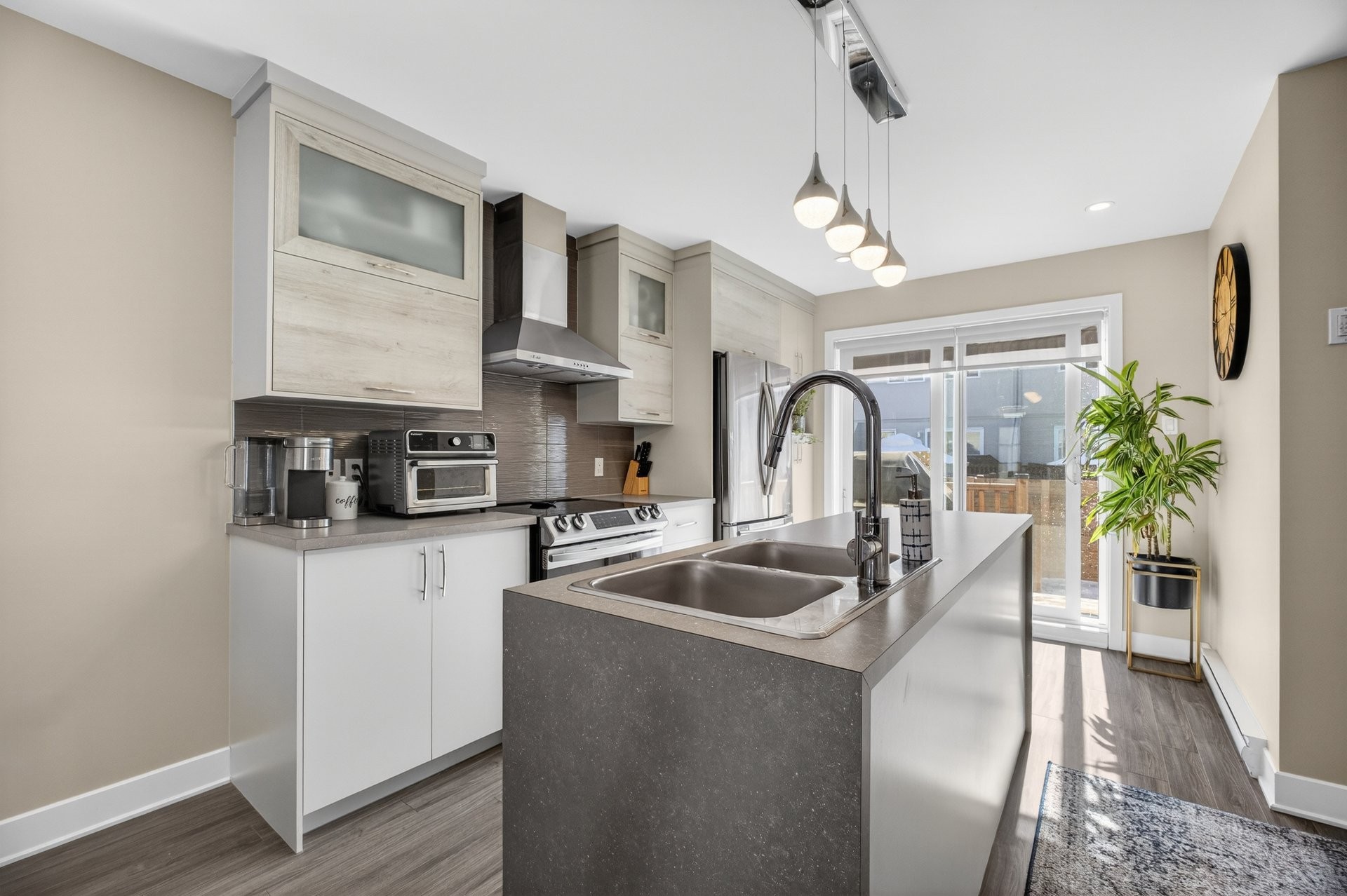 Located in the newer phase of the Place Chartrand project by Les Habitations Allard & Ménard, this 2018-built townhouse with two large bedrooms is a must-see. The main staircase features hardwood finishings while the living room boasts a barn wood accent wall.