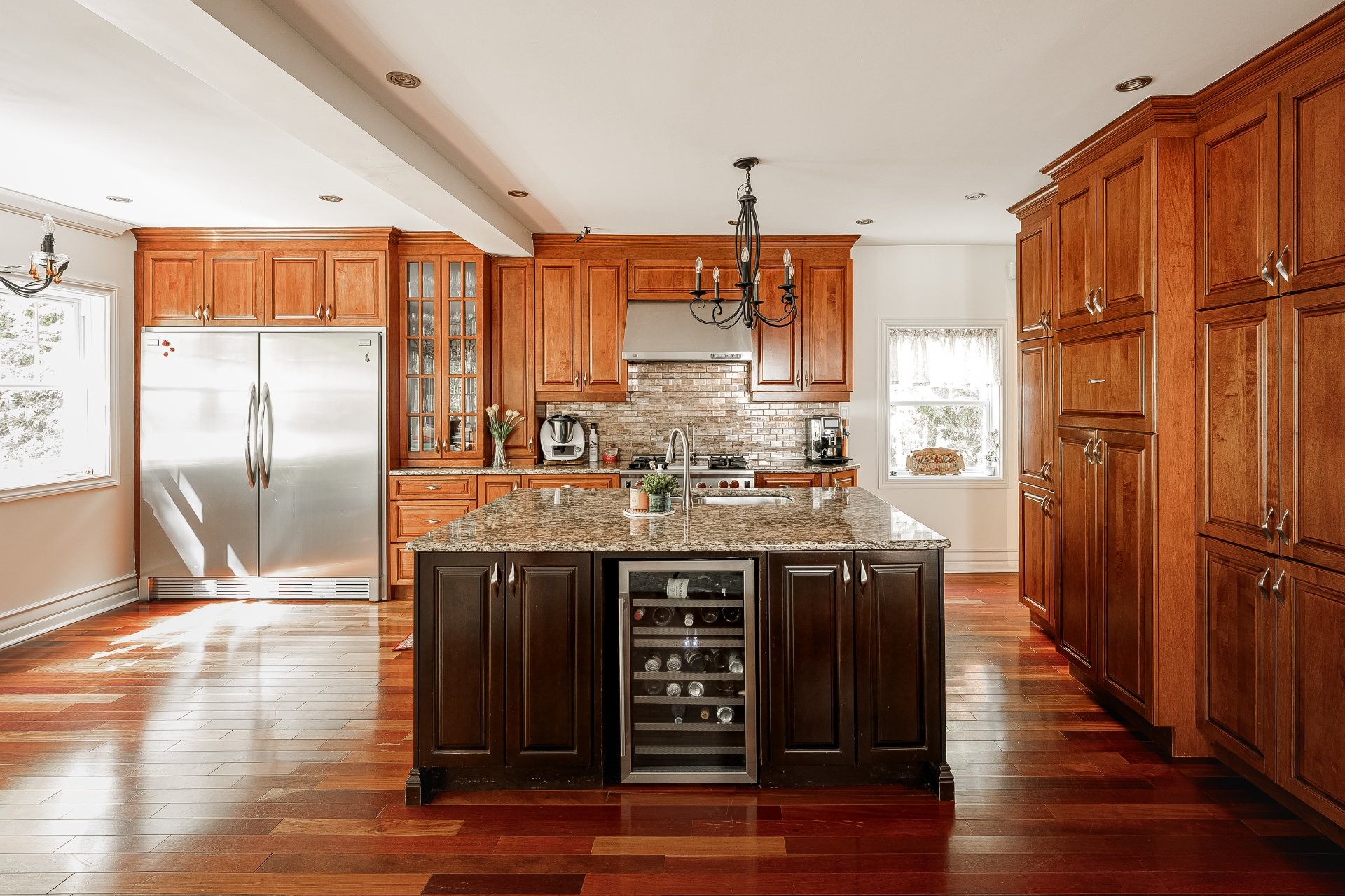Combo fridge/freezer Frigidaire brand, gaz cooktop Wolf brand, dishwasher,waste crusher, wine cellar Dany designer, washer dryer LG, central sweeper with accessories,shed, gazebo,chochere doors, abri tempo