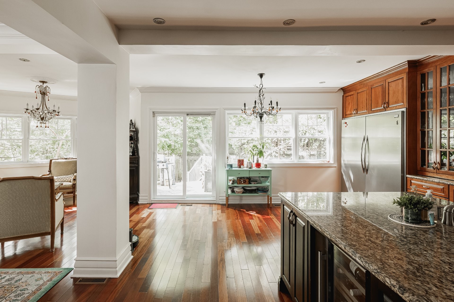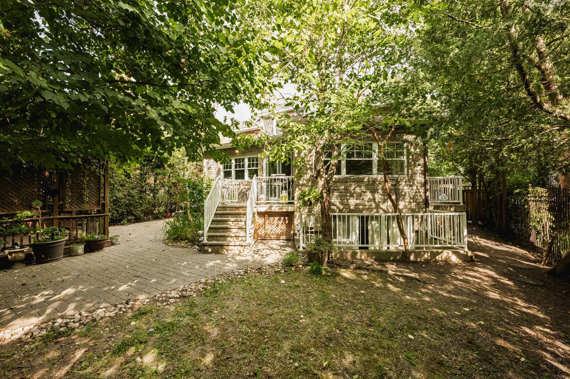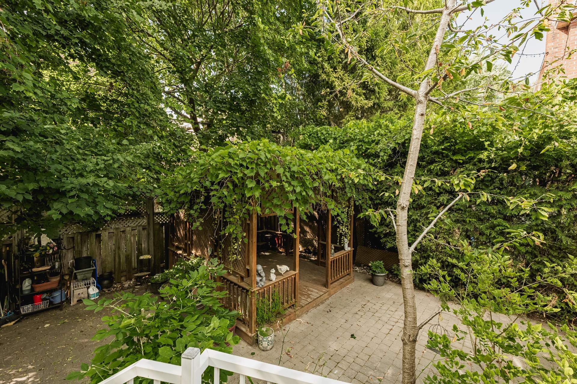 Tucked away on a quiet street, this beautifully renovated stone home offers 5 spacious bedrooms plus a nanny/guest suite with bath in the basement and an optional main floor office. Bright, open layout with large windows, beautiful Jatoba floors, and a high-end chef's kitchen featuring granite counters, hardwood cabinetry, and premium appliances. The private backyard oasis includes a stone patio, mature trees, and a custom gazebo--perfect for entertaining or relaxing. Steps to top schools, transit, and amenities.