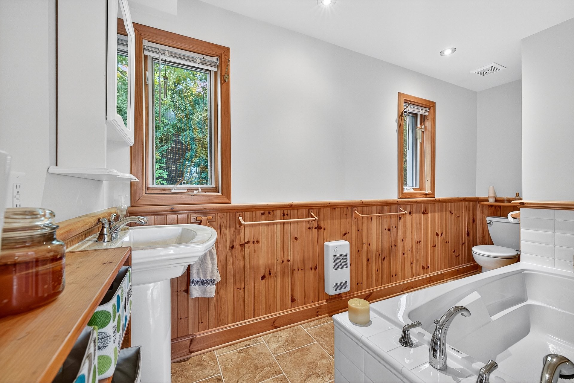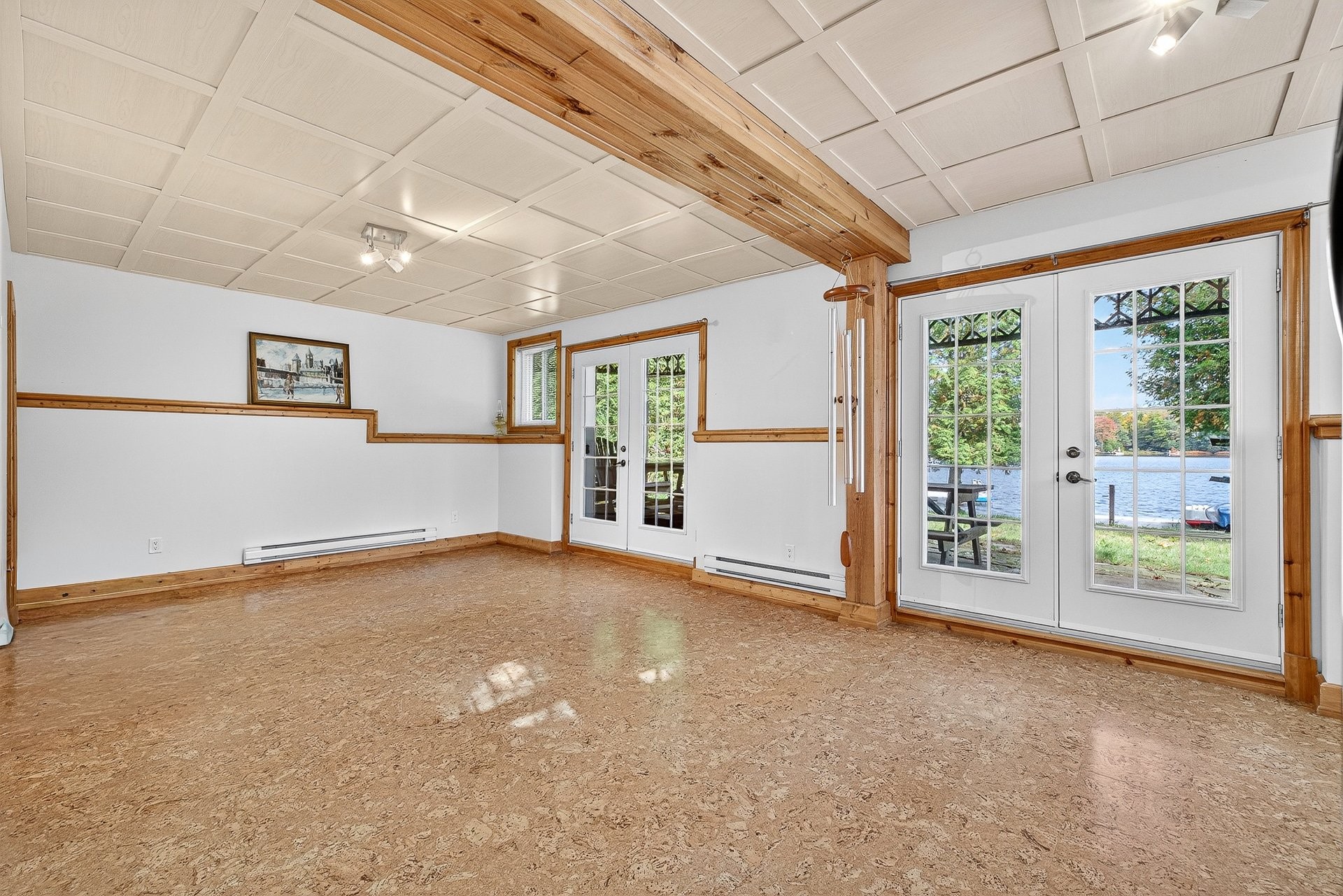 Outside, the wooded lot ensures a private and peaceful setting. Whether you are enjoying a morning coffee on the terrace, sharing a meal with friends, or simply relaxing, you'll appreciate the soothing ambiance created by the surrounding greenery and the sounds of nature. The property also offers exclusive access to Lac Bataille, known for its beauty and calm waters. Swim, paddle, or simply unwind by the lake -- it's a true nature retreat year-round.