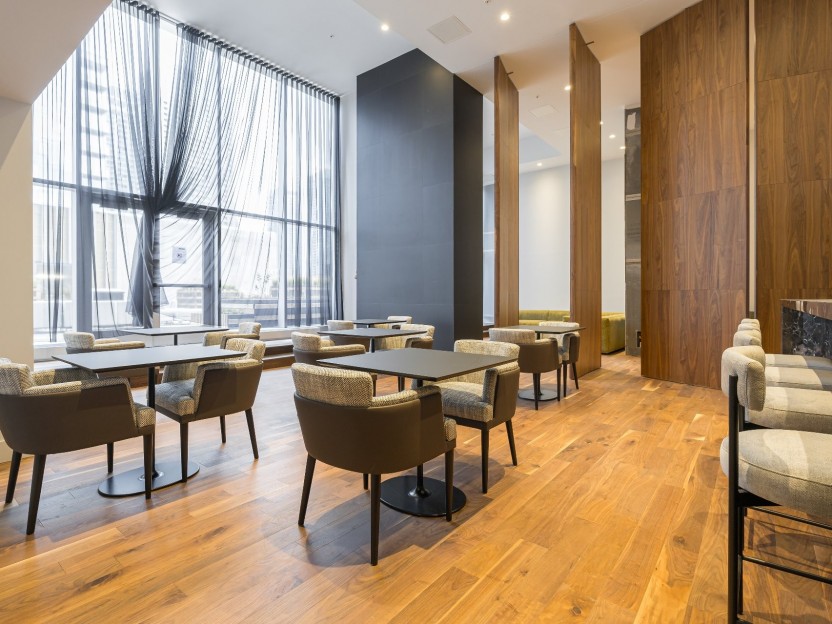 Its perfect location facing the river, in the heart of Old Montreal's activity, with its restaurants, designer boutiques, art galleries, bike path, and proximity to the city center, make it a perfect destination for living or having a pied-à-terre.