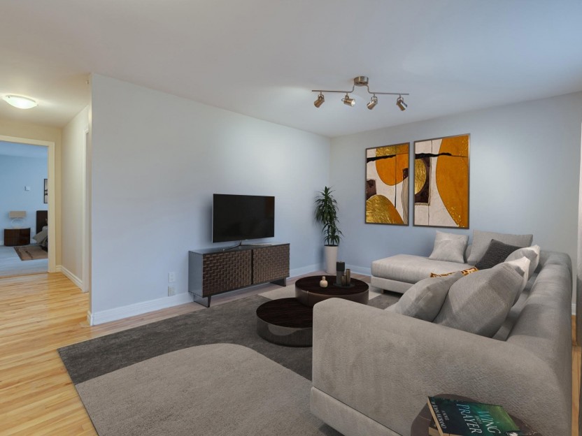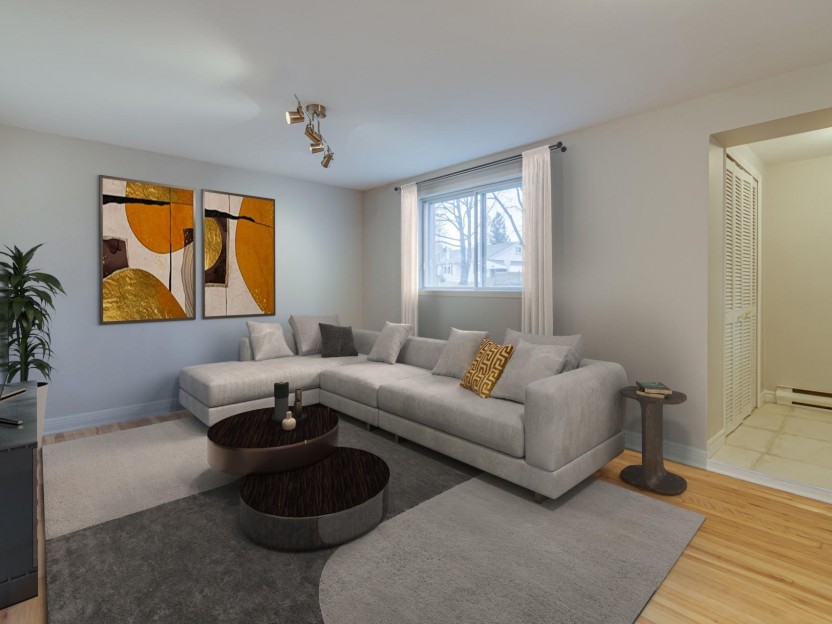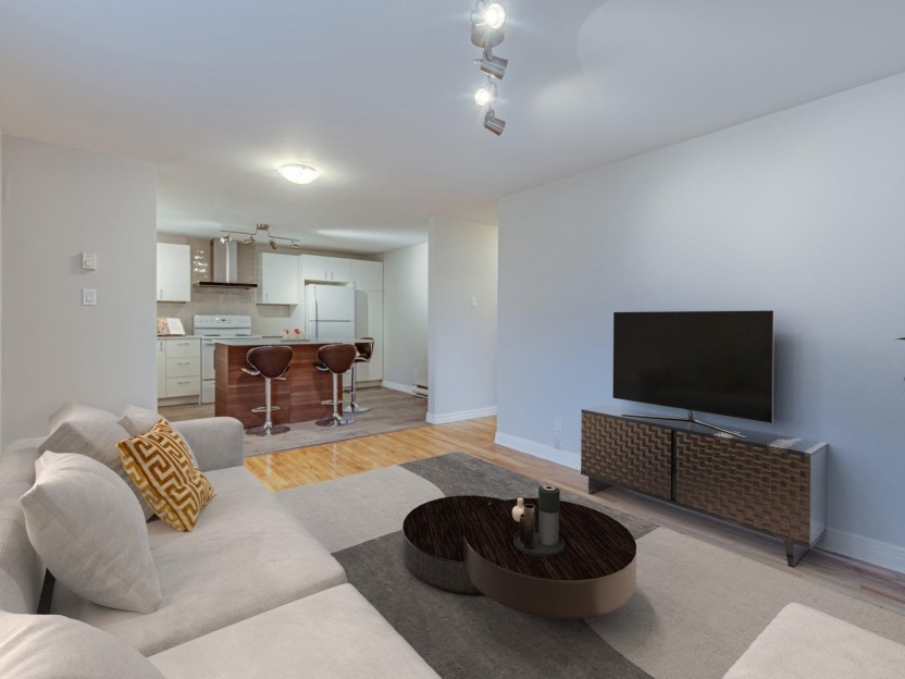 Magnifique appartement rénové de deux chambres à coucher et deux salles de bain, parfaitement situé à Dorval! L'espace de vie principal comp...