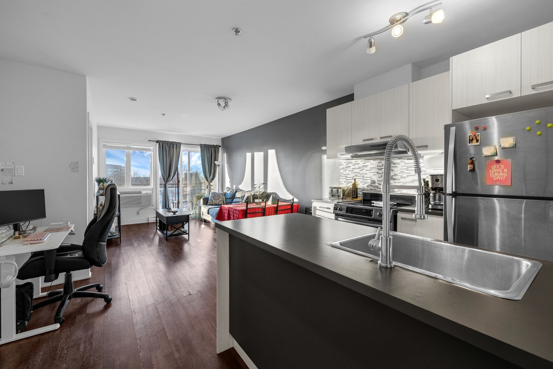 Bright top-floor (4th floor) west-facing condo offering rare direct sunset light that fills the living space with warm, natural light. Includes one outdoor parking spot conveniently located next to the side entrance and elevator. Well-maintained building with gym and jacuzzi. Located in a sought-after area of newer buildings, popular with young professionals and families. Walk to Summerlea Park and Lac Saint-Louis. Quick access to Highways 20 & 13, 15 min to downtown, 5 min to YUL, plus close to train and buses. Ideal for first-time buyers or downsizers. Contact us today to schedule your property visit!