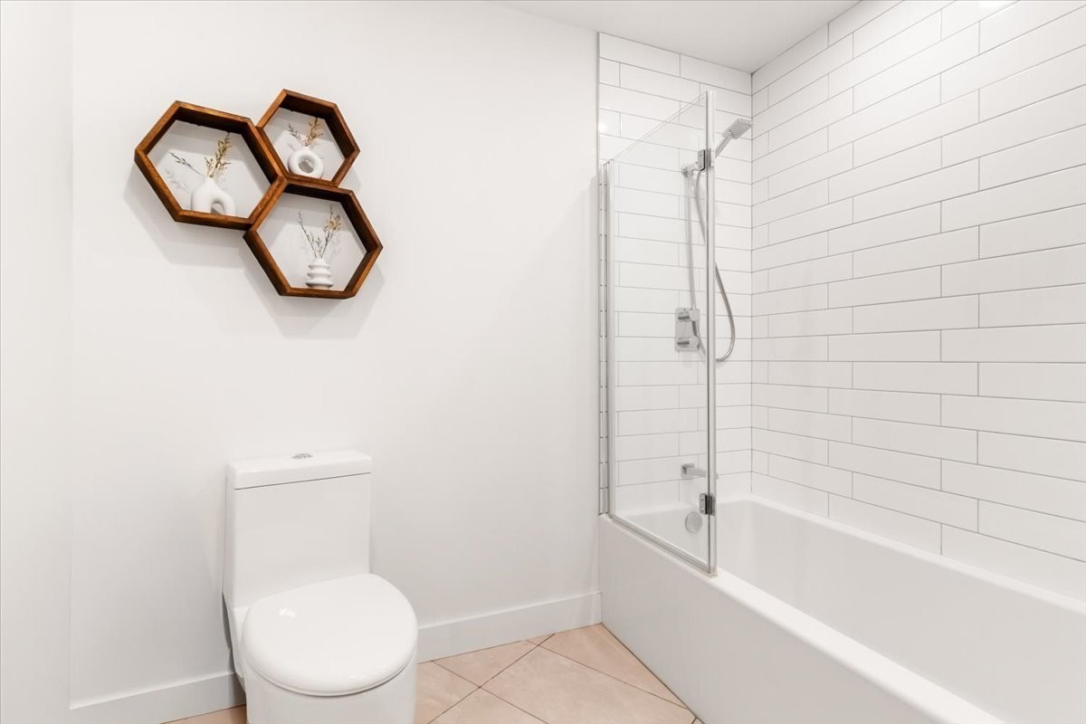 Functionality is woven into every detail -- from a spacious laundry room with hanging and coat space, to custom media units in the living room and primary bedroom. The primary suite offers a walk-through closet and elegant ensuite, while the second bedroom includes added storage.