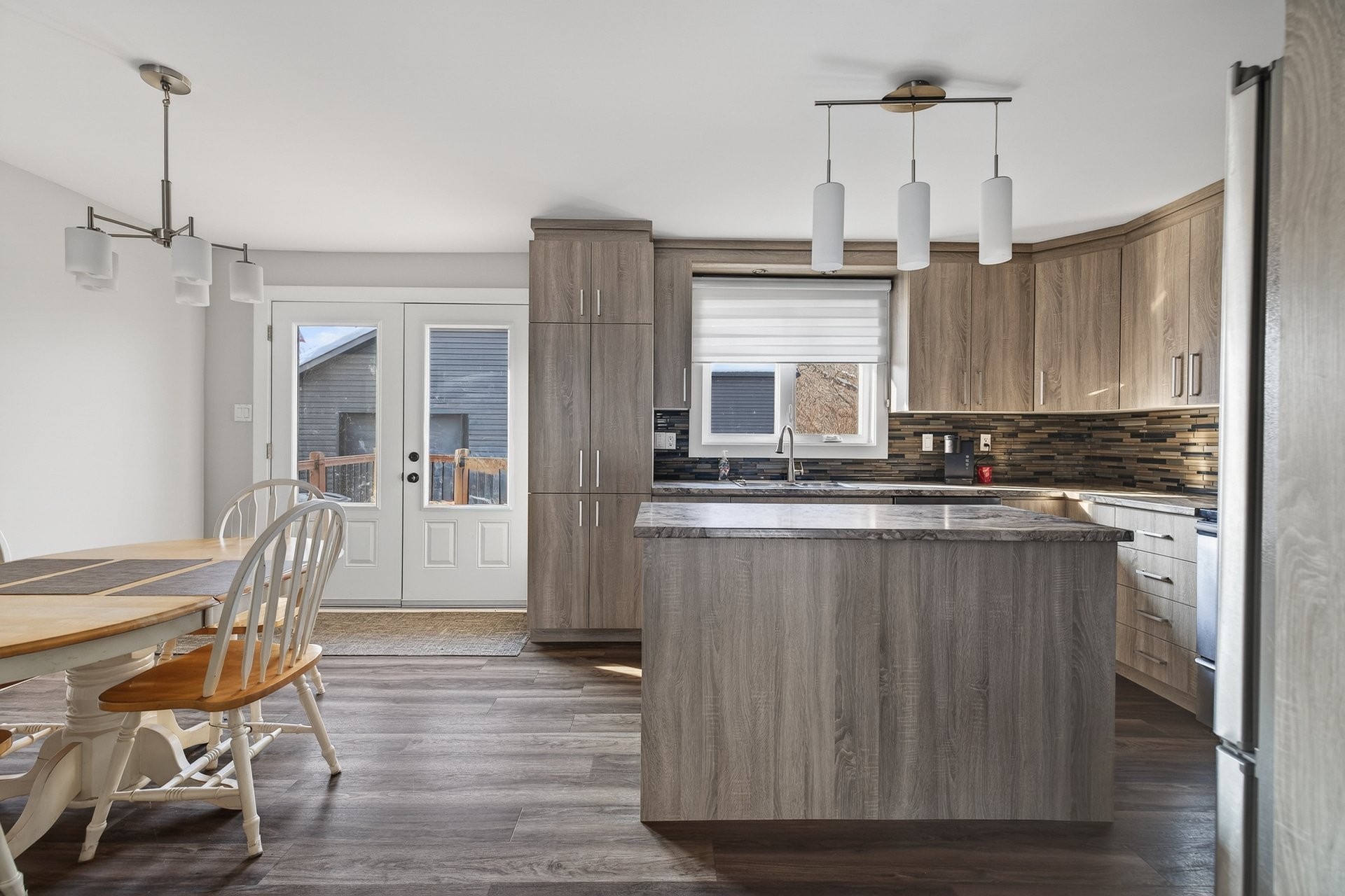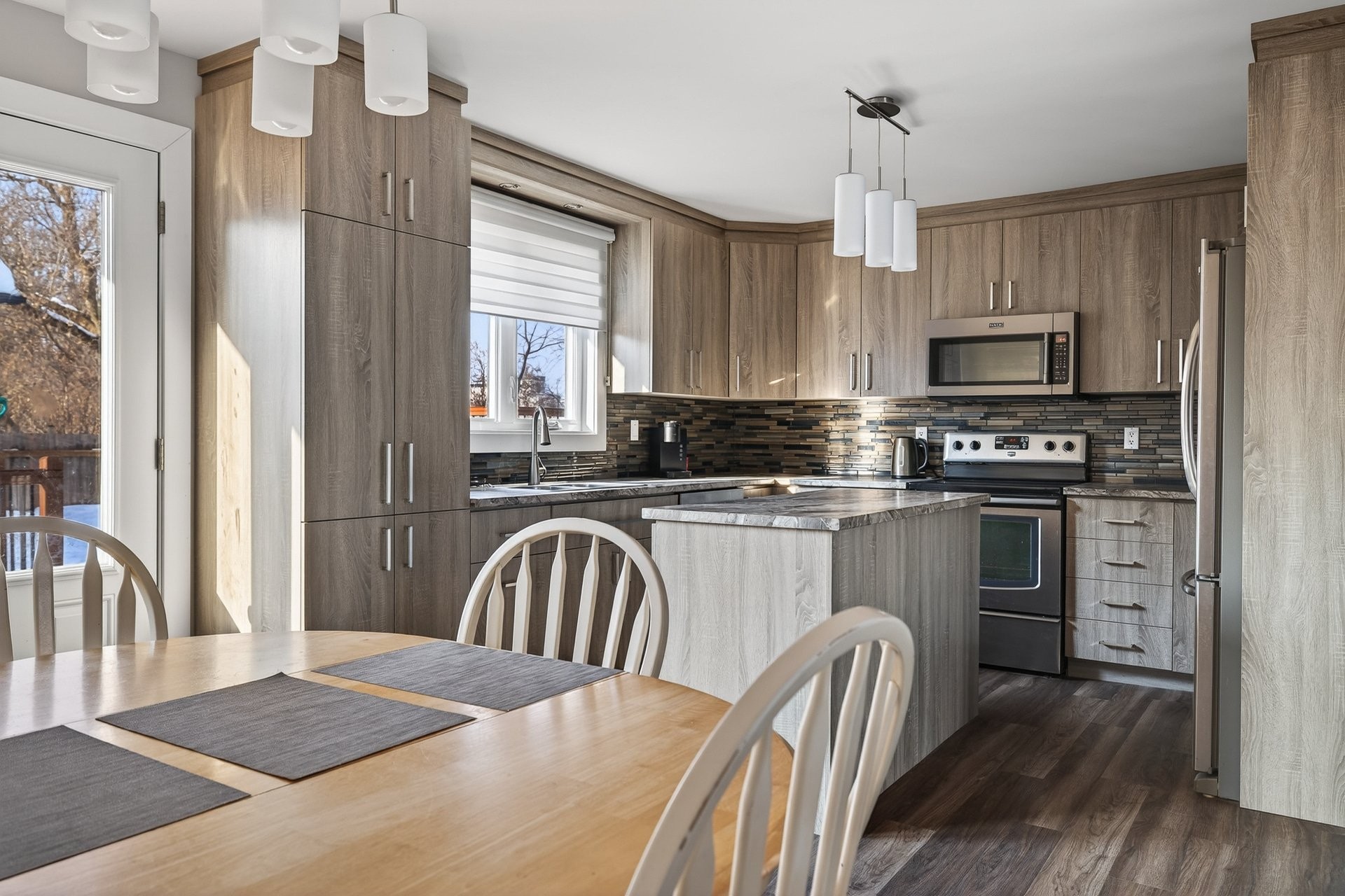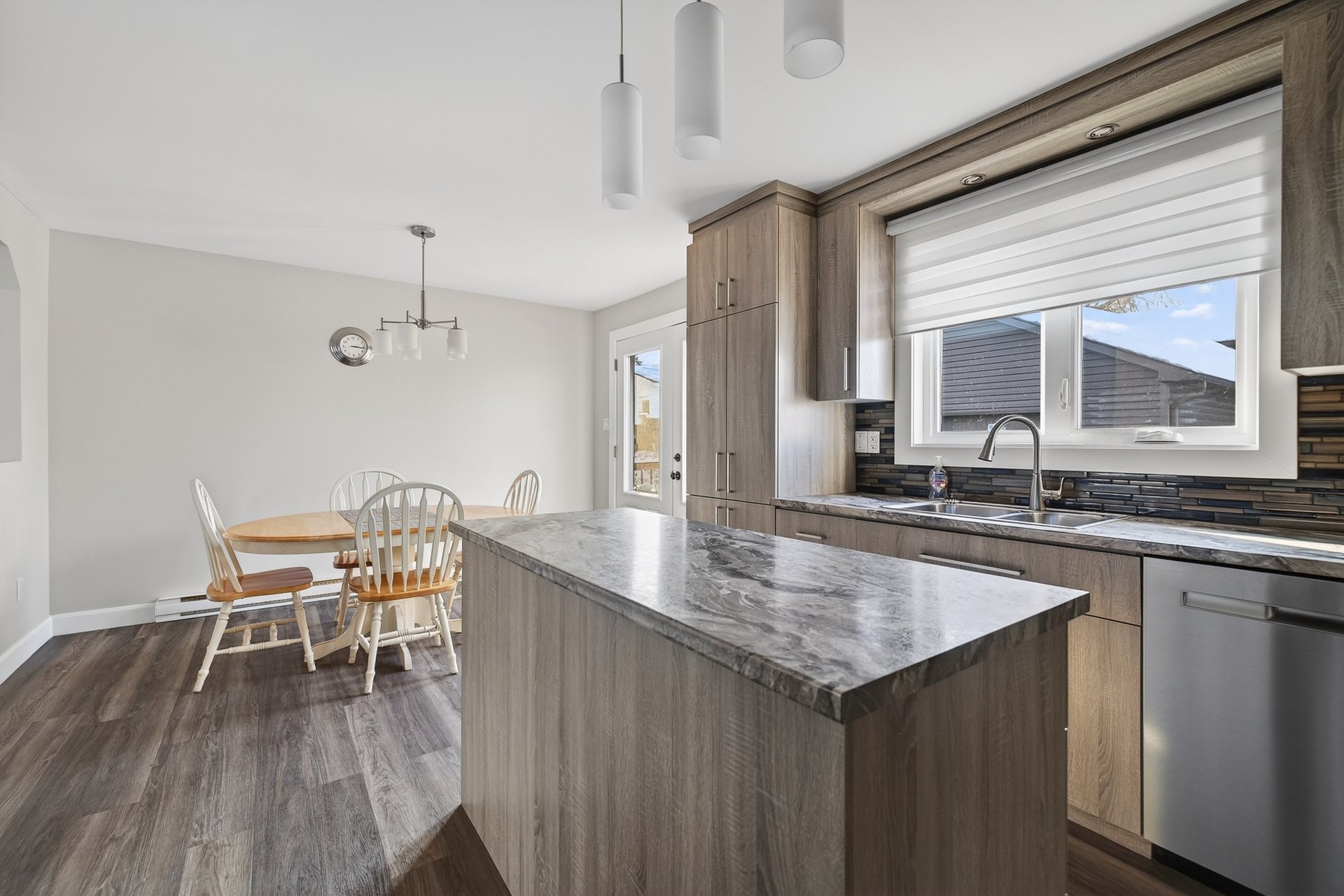 From the moment you step inside, you'll be charmed by the bright and inviting living area. The stunning kitchen, featuring a central island, offers ample workspace and storage, perfect for entertaining family and friends. It opens onto the dining room, which has a door leading to the backyard. On the other side is the living room, creating a harmonious and functional space.