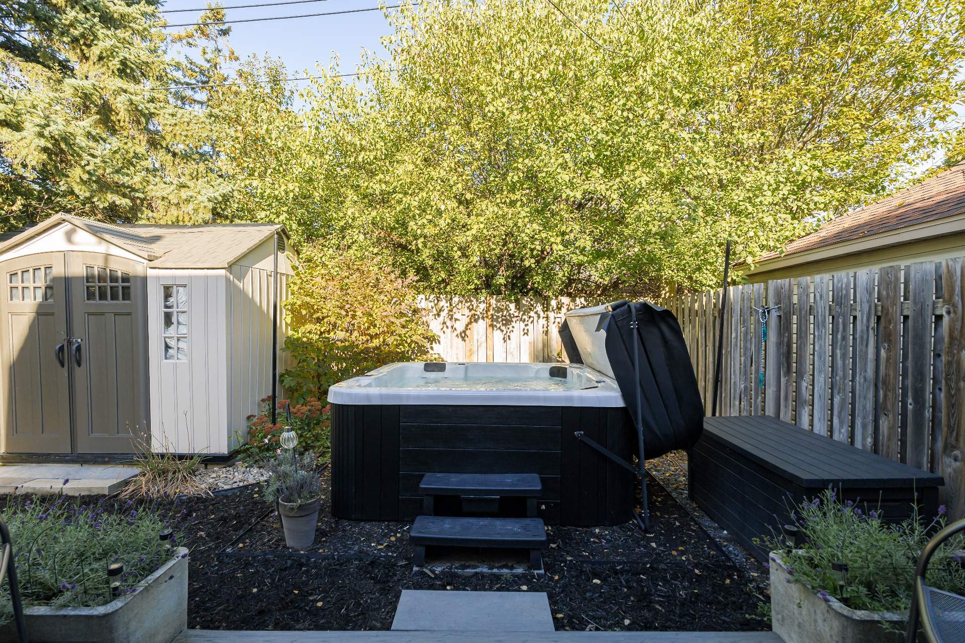 The main floor features a spacious kitchen with ample counter and storage space, seamlessly connected to an open-concept living and dining area - perfect for both everyday living and entertaining. Step outside to your fully enclosed backyard, complete with a composite deck, cabana, and a large gazebo surrounded by mature trees and hedges, offering a private, peaceful retreat. A convenient powder room completes the main level.