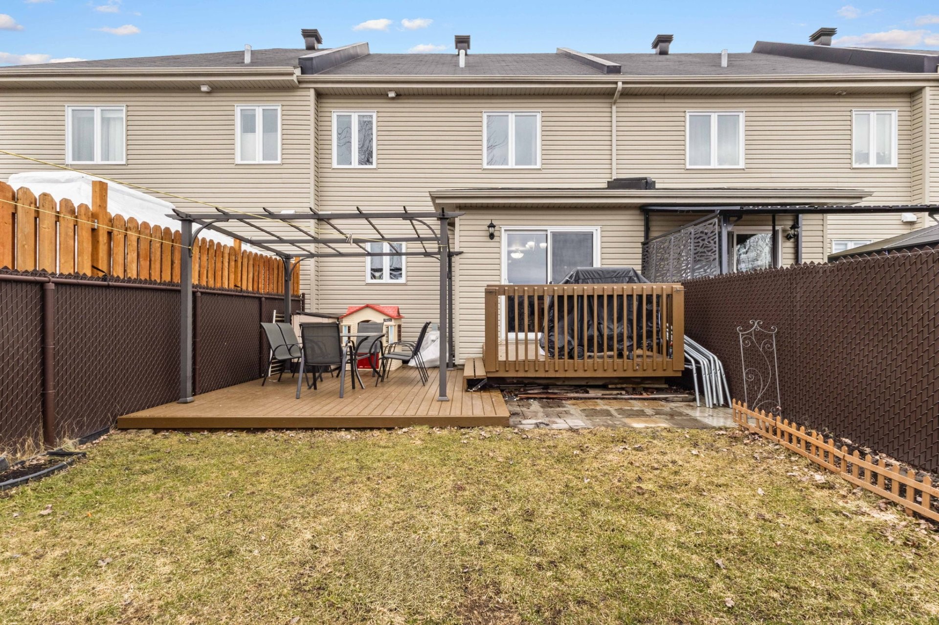 Outside, the private fenced yard offers total peace with no neighbours behind you. It features a generous terrace and a lovely gazebo - ideal for relaxing, barbecues or simply enjoying the outdoors.