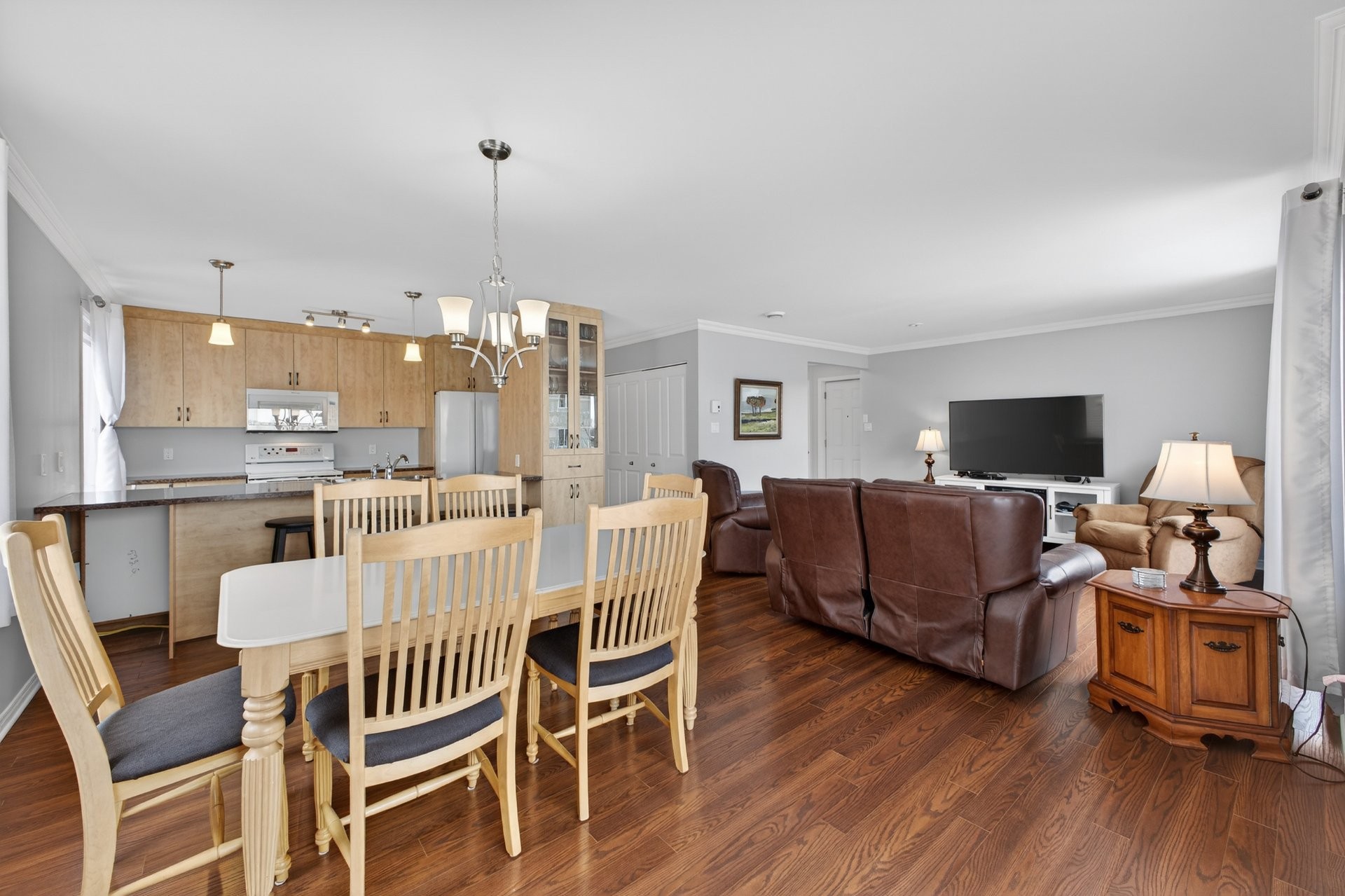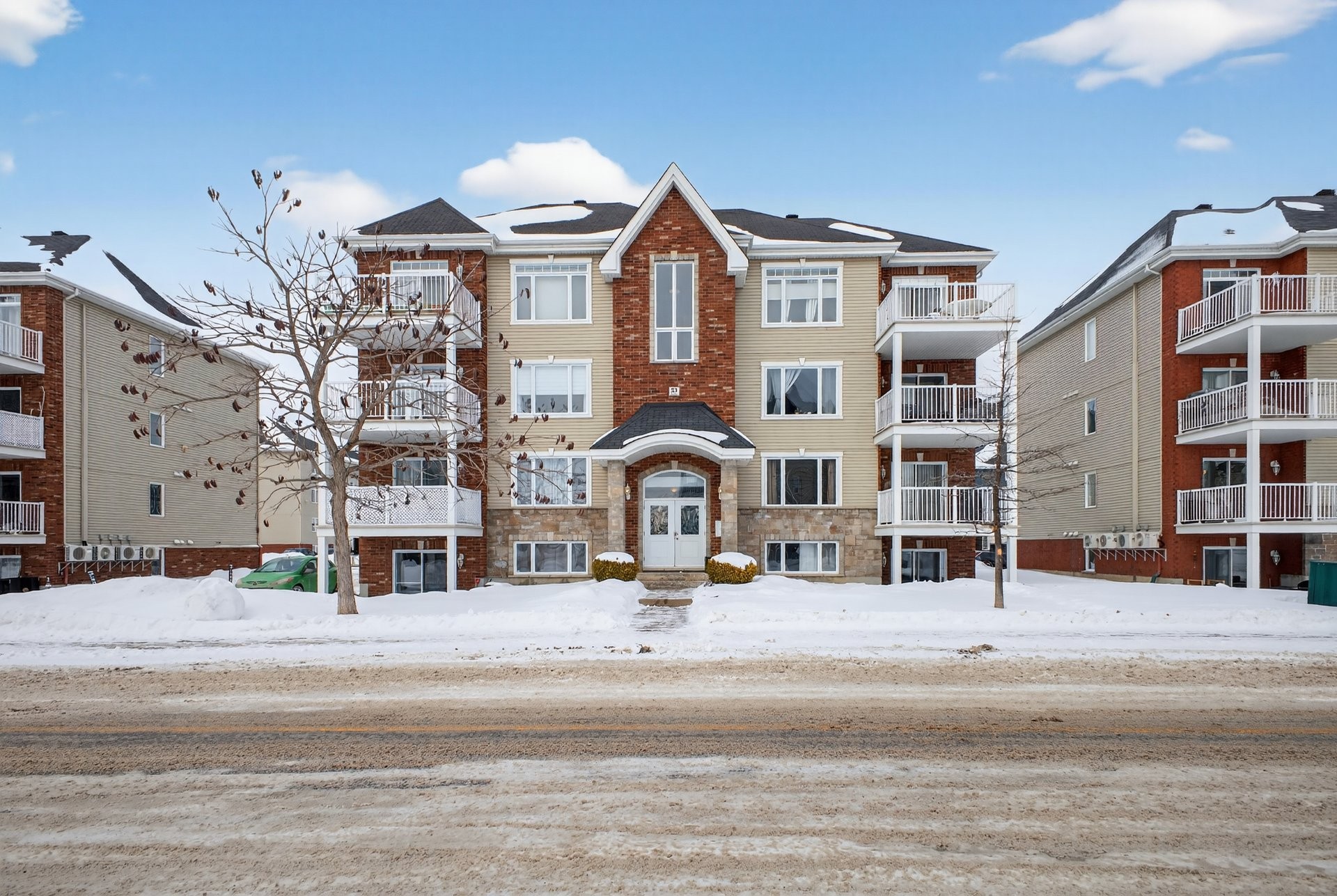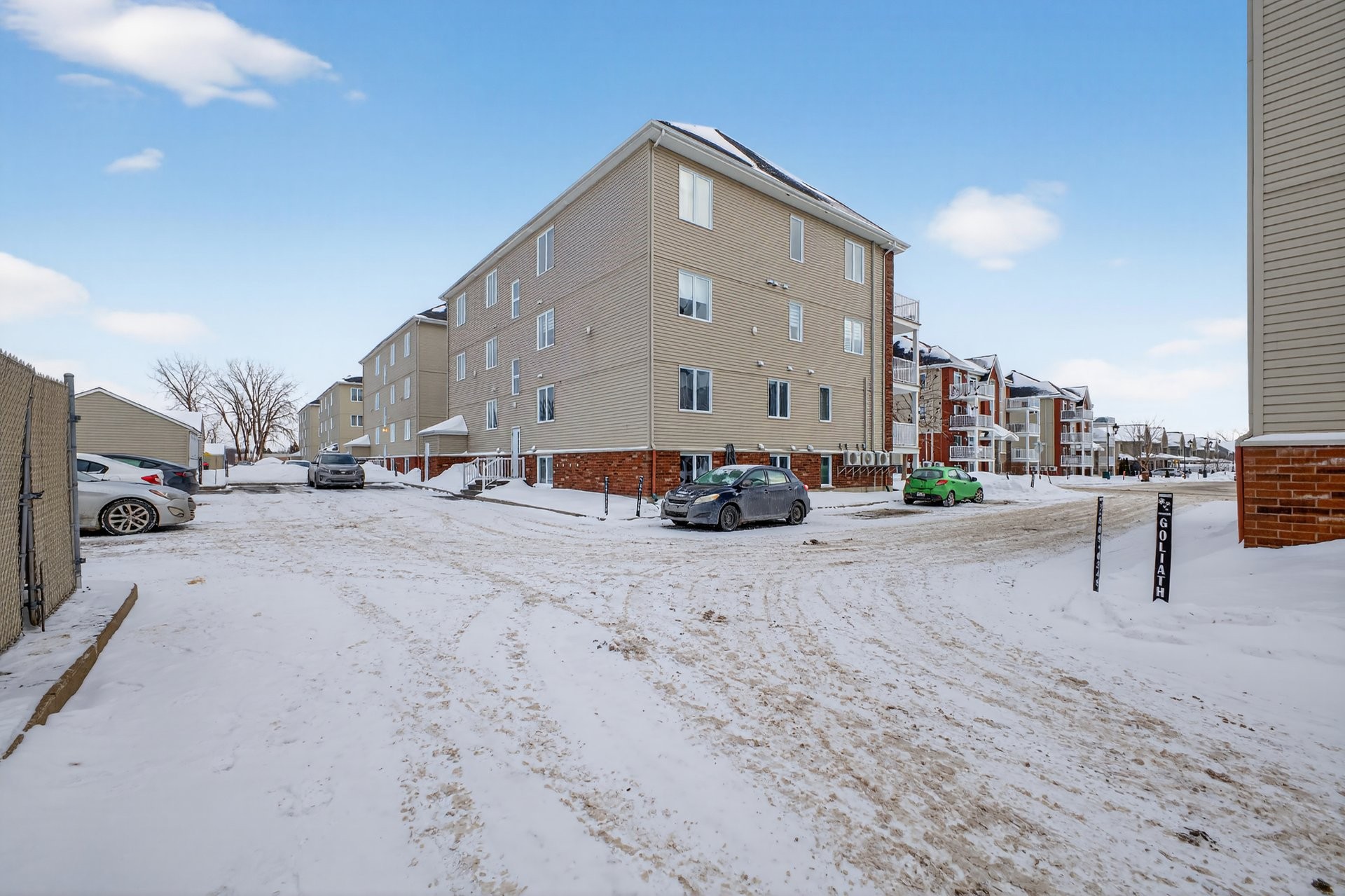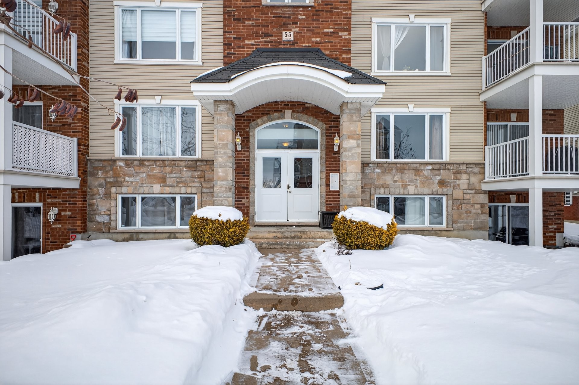 Bright, beautiful, and spacious 2nd-floor, 1,175 sq. ft. condo, nestled within a quiet neighbourhood in the heart of Châteauguay and close to all services, boasting stylish interiors, an open-plan living/diningkitchen area, a large private balcony, oversized windows, a chef's kitchen with bar (island), a primary bedroom with walk-in closet, a second guest bedroom or office, a large bathroom with a bath and separate shower, a washer/dryer closet, two parking spaces, exterior storage, and an intercom for controlled access. Pets allowed (maximum 30 lbs).