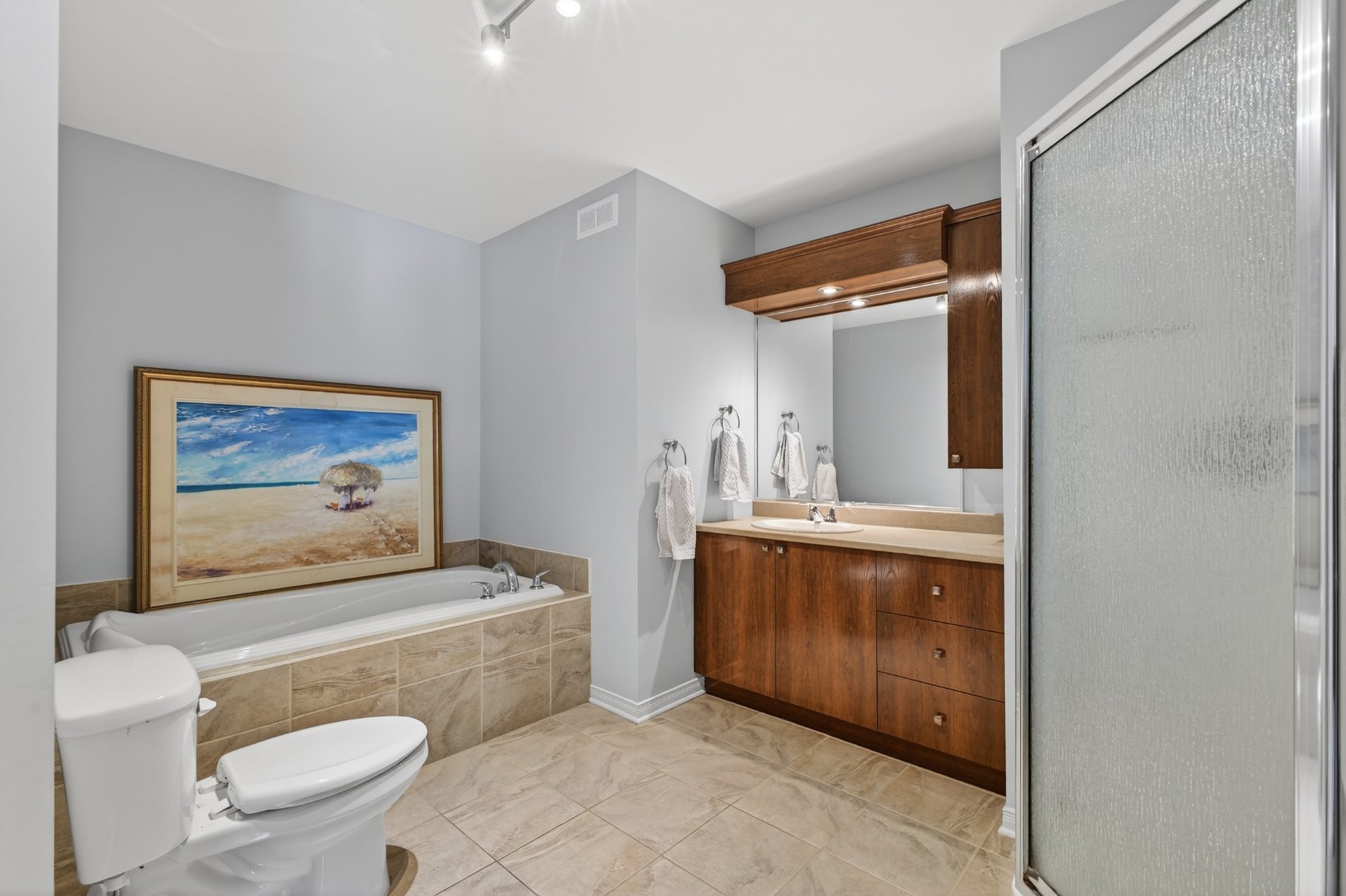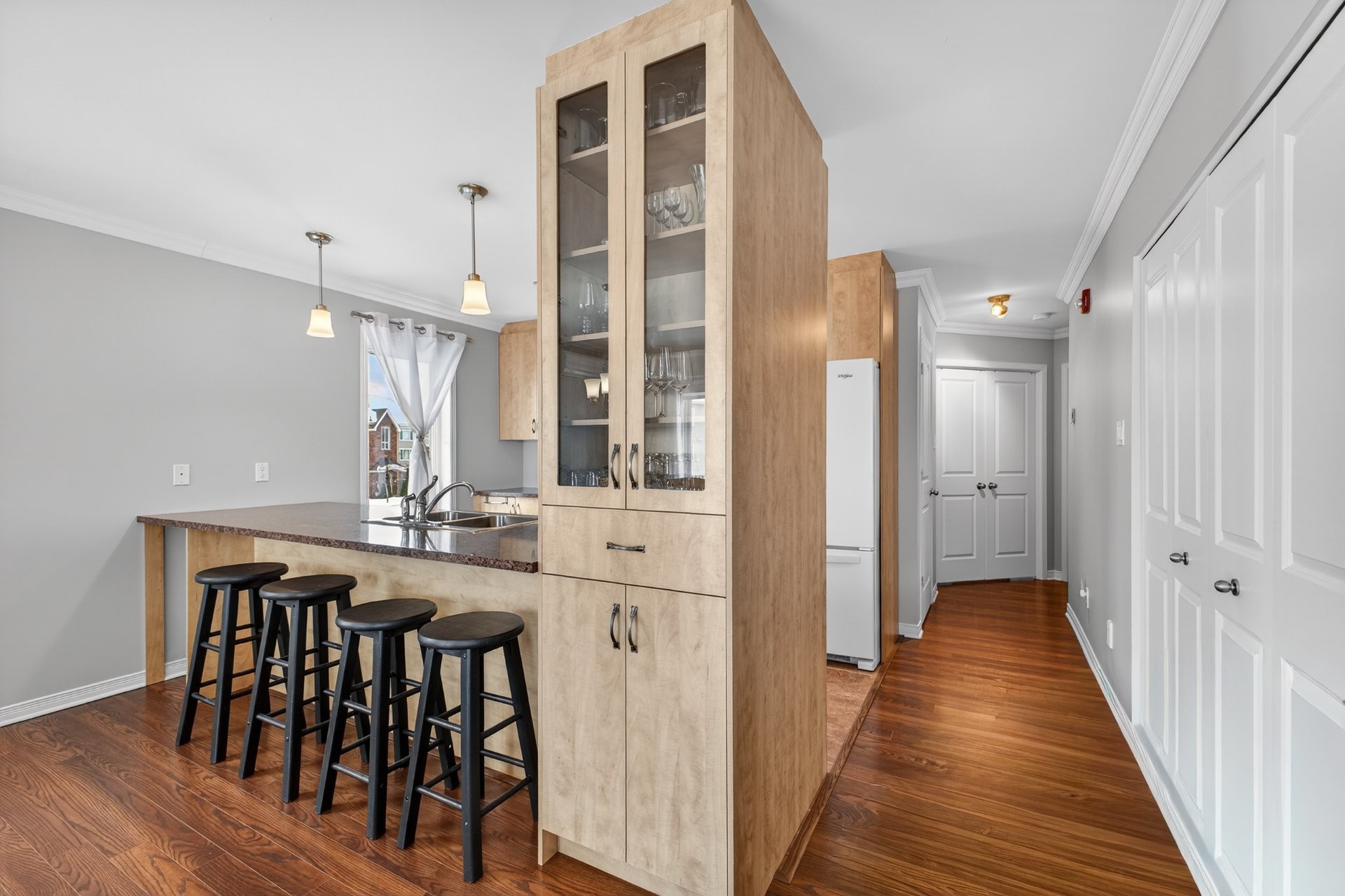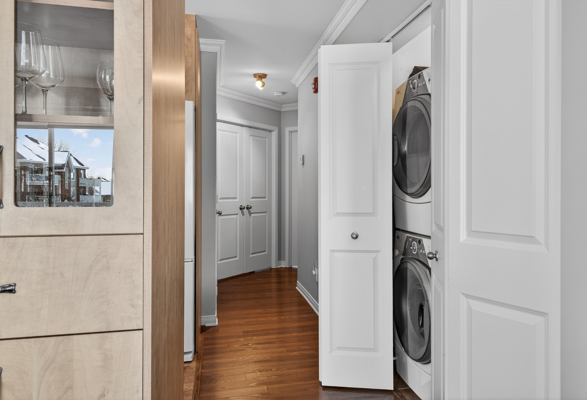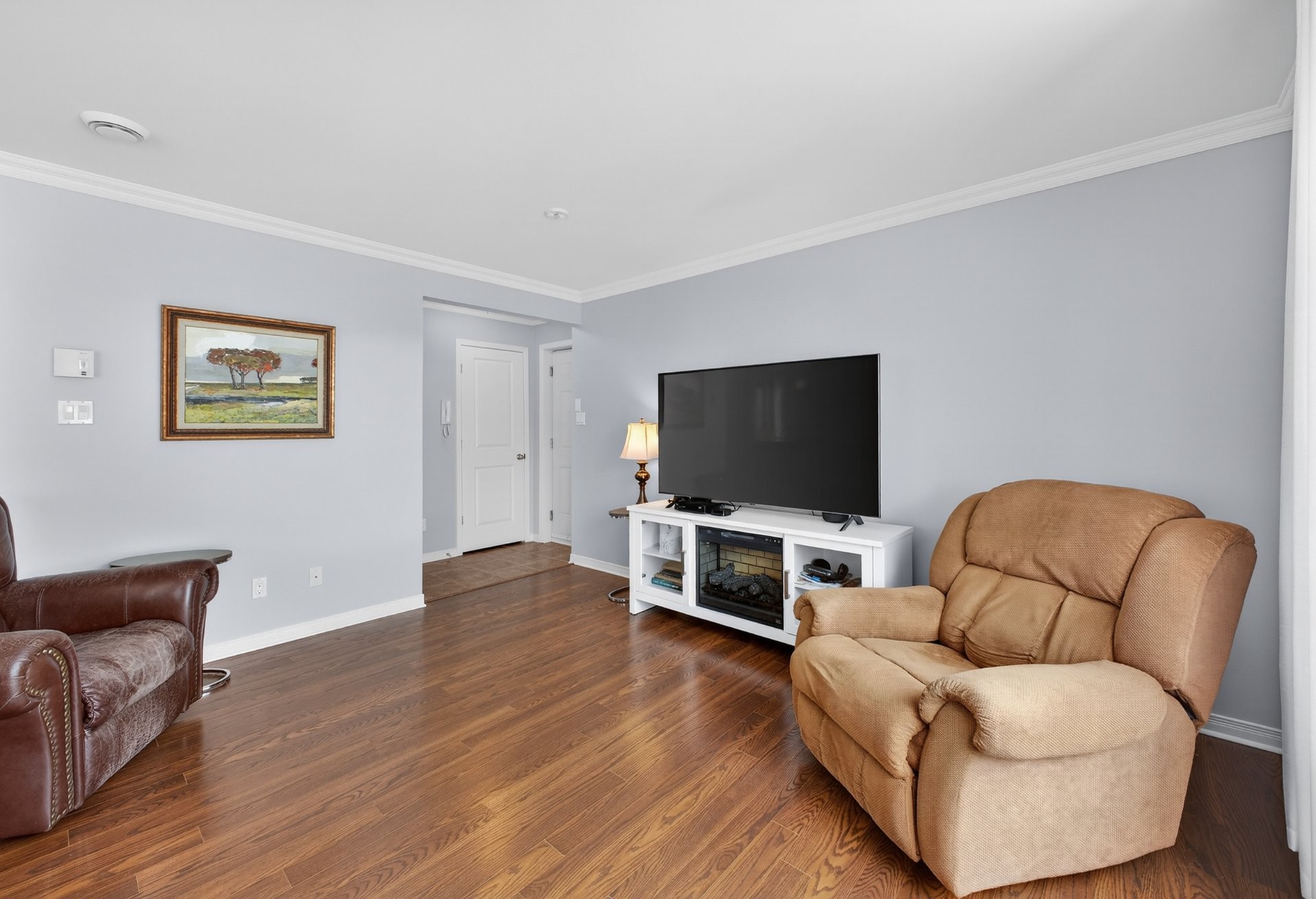 Bright, beautiful, and spacious 2nd-floor, 1,175 sq. ft. condo, nestled within a quiet neighbourhood in the heart of Châteauguay and close to all services, boasting stylish interiors, an open-plan living/diningkitchen area, a large private balcony, oversized windows, a chef's kitchen with bar (island), a primary bedroom with walk-in closet, a second guest bedroom or office, a large bathroom with a bath and separate shower, a washer/dryer closet, two parking spaces, exterior storage, and an intercom for controlled access. Pets allowed (maximum 30 lbs).