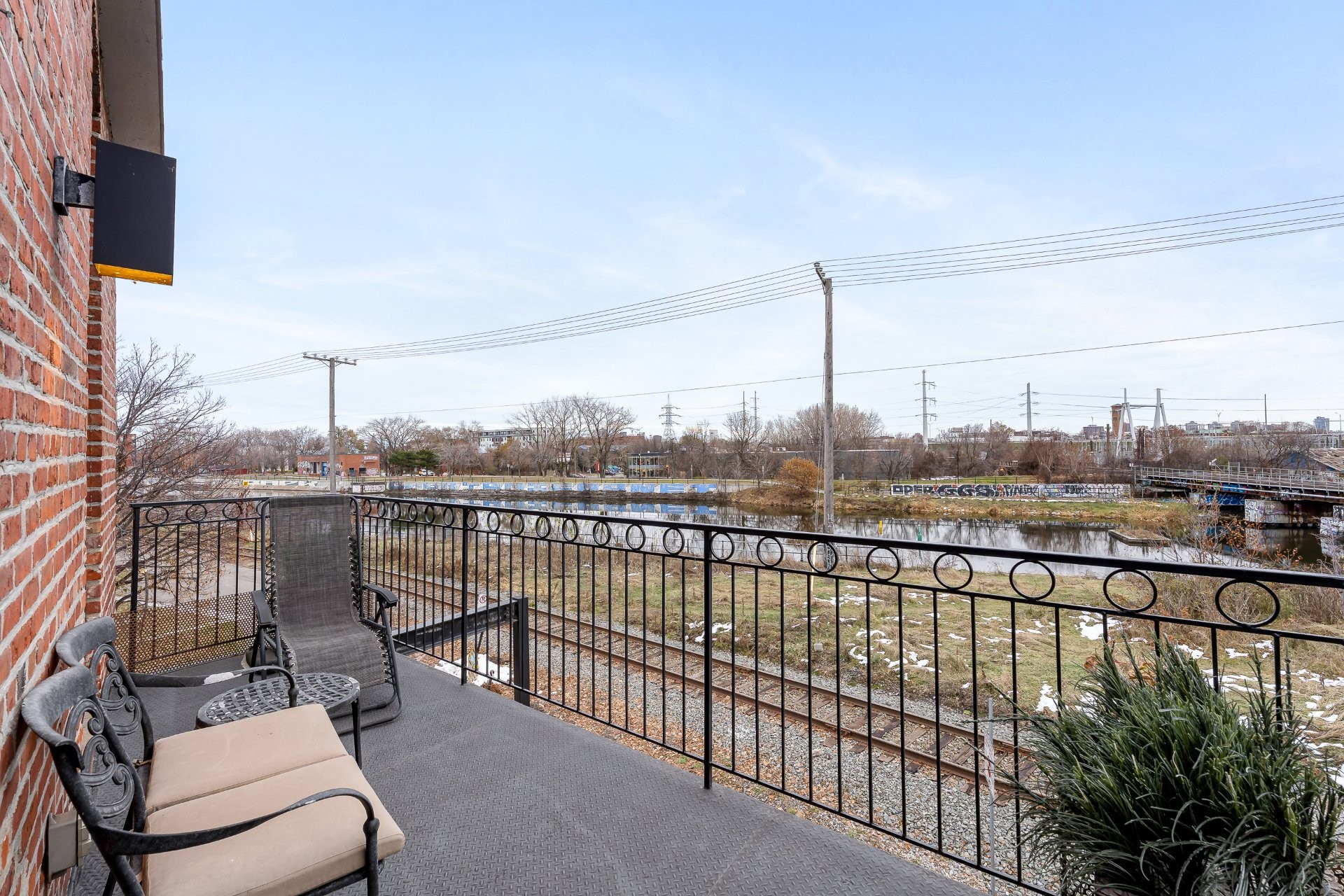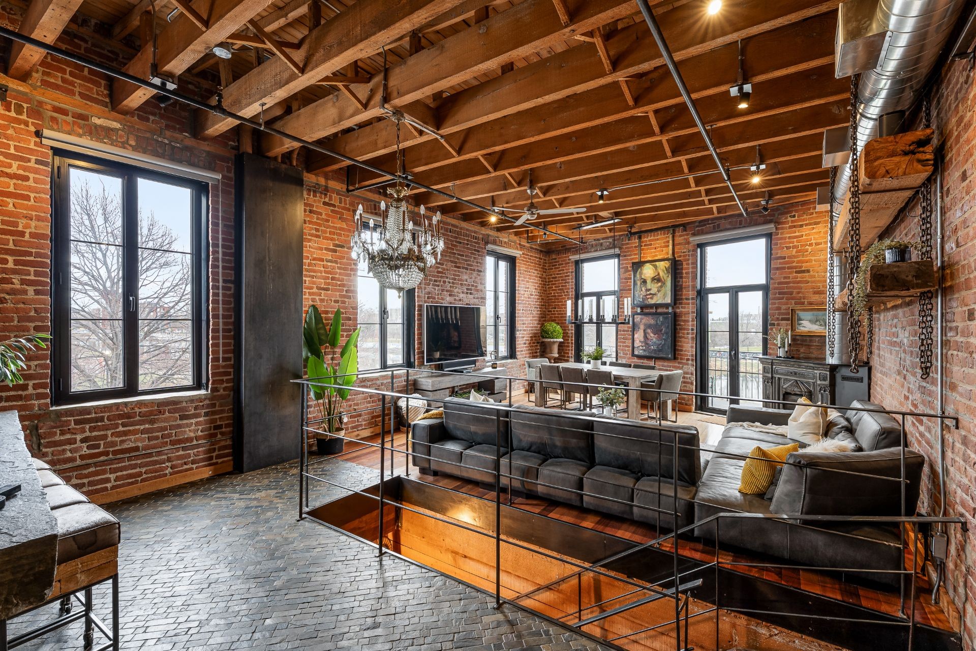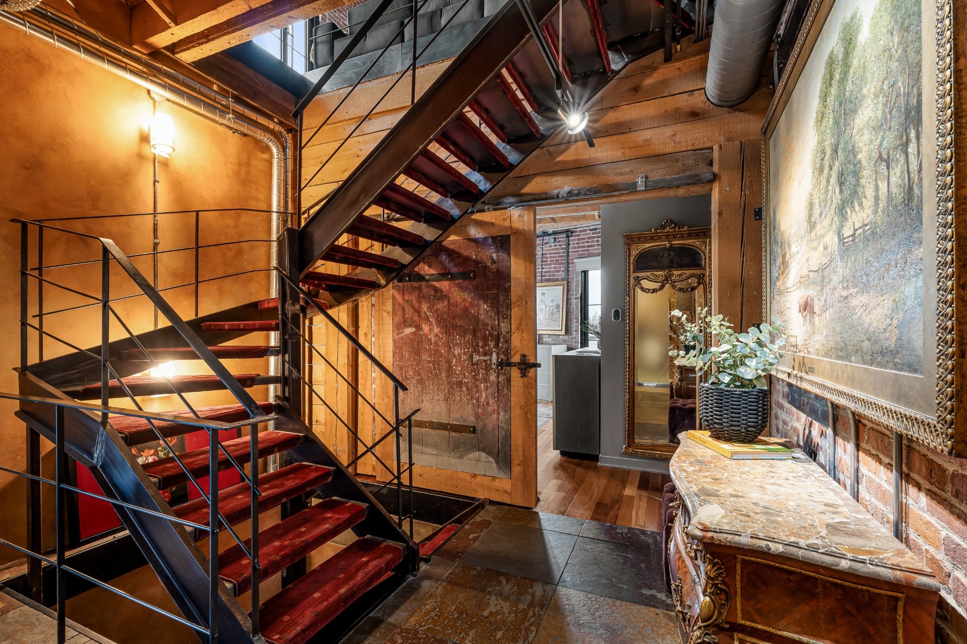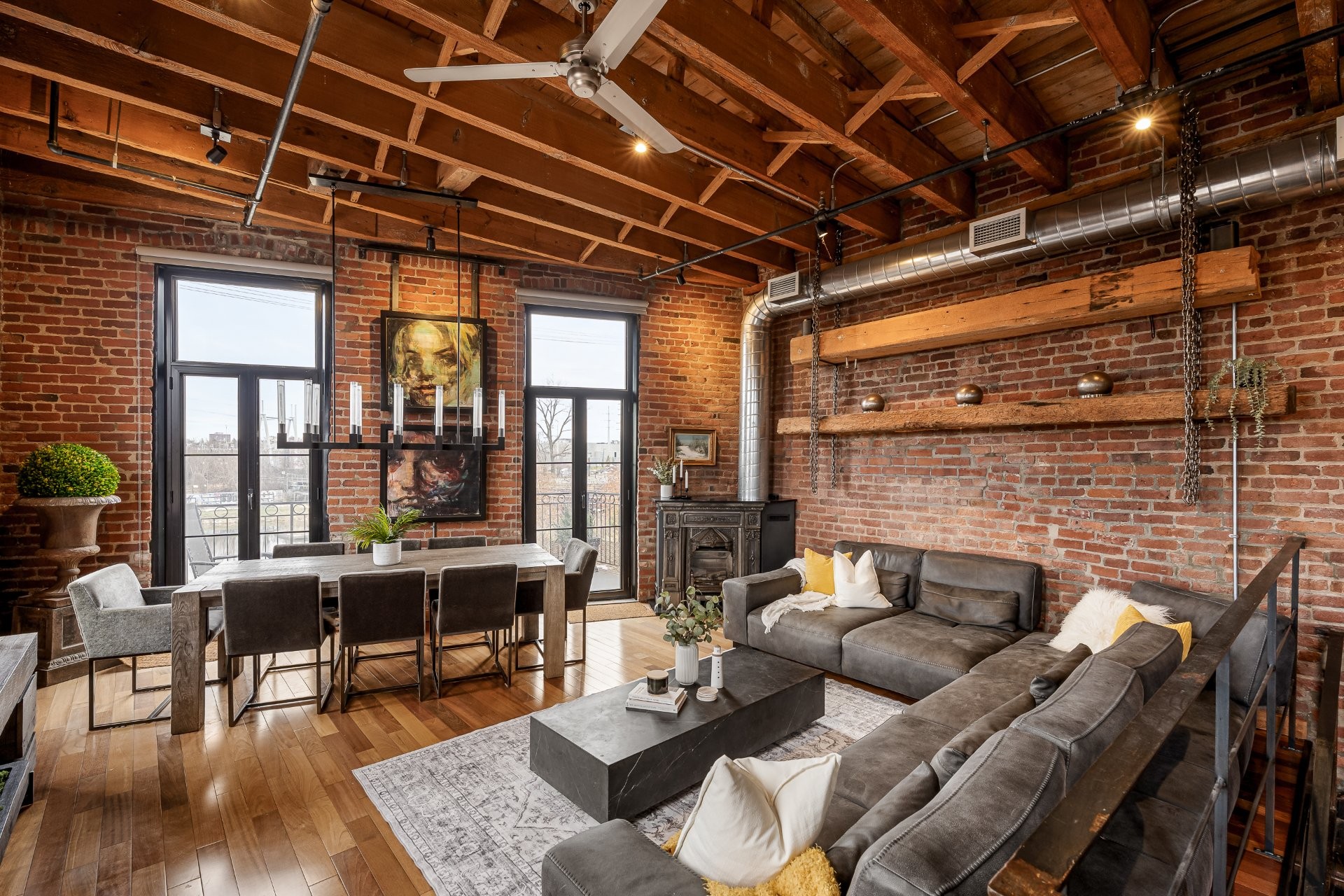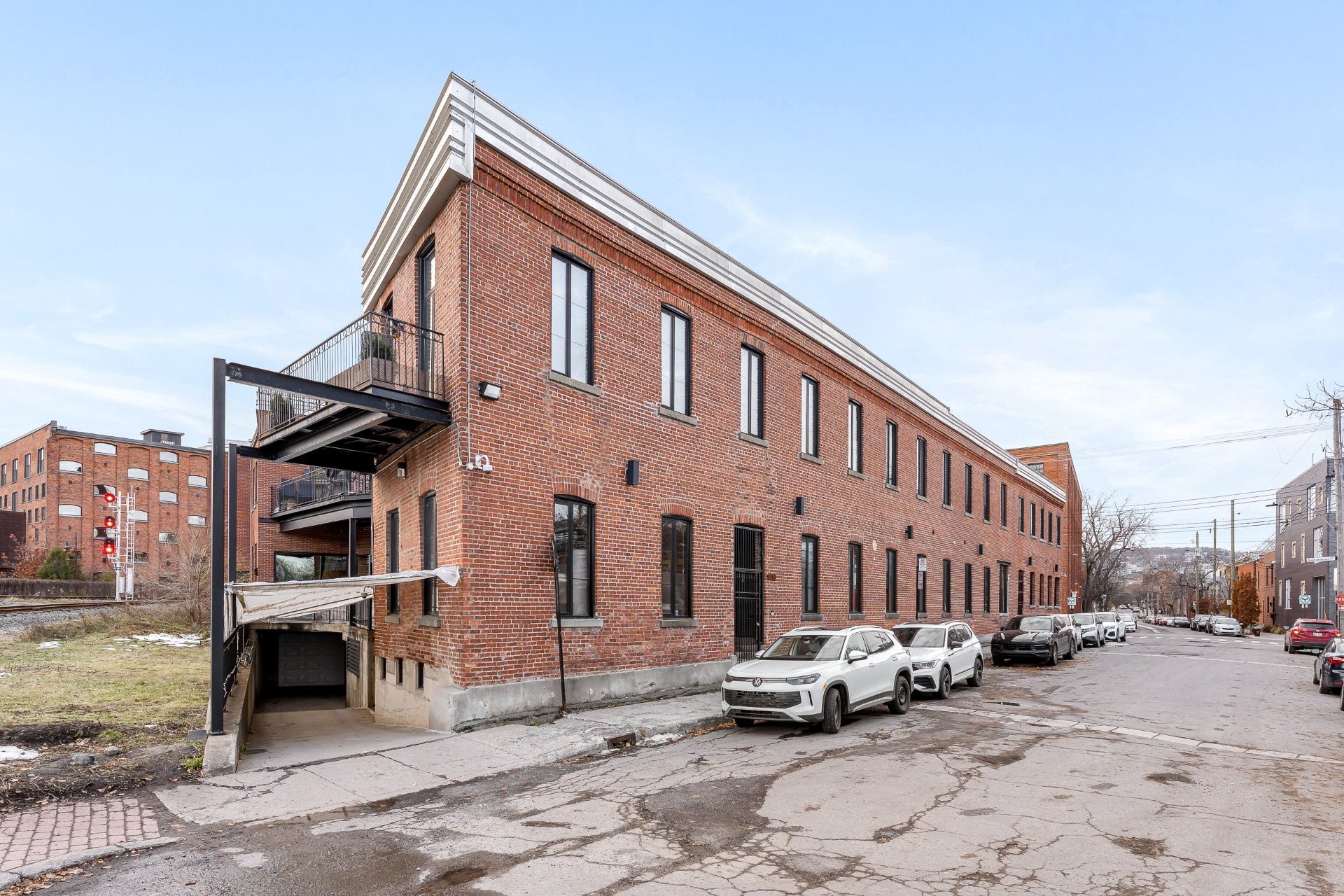 A hidden gem in Clos St-Ambroise! This stunning 2-level condo in a restored St-Henri tannery blends industrial charm with luxury finishes. Featuring 14-ft ceilings, exposed brick, original sliding doors, wood beams, and huge windows with water + city views. High-end materials throughout: exotic wood + slate floors, carved stone counters and sinks. Private entrance, spacious layout, open-concept living, and direct garage access with 2 parking spots. Steps from Atwater Market + Lachine Canal. Stylish, bright, and truly one of a kind!