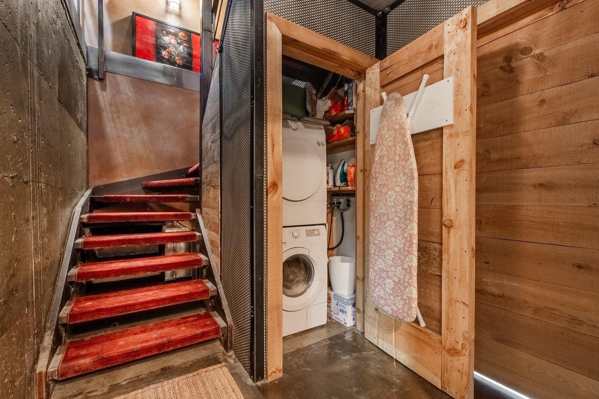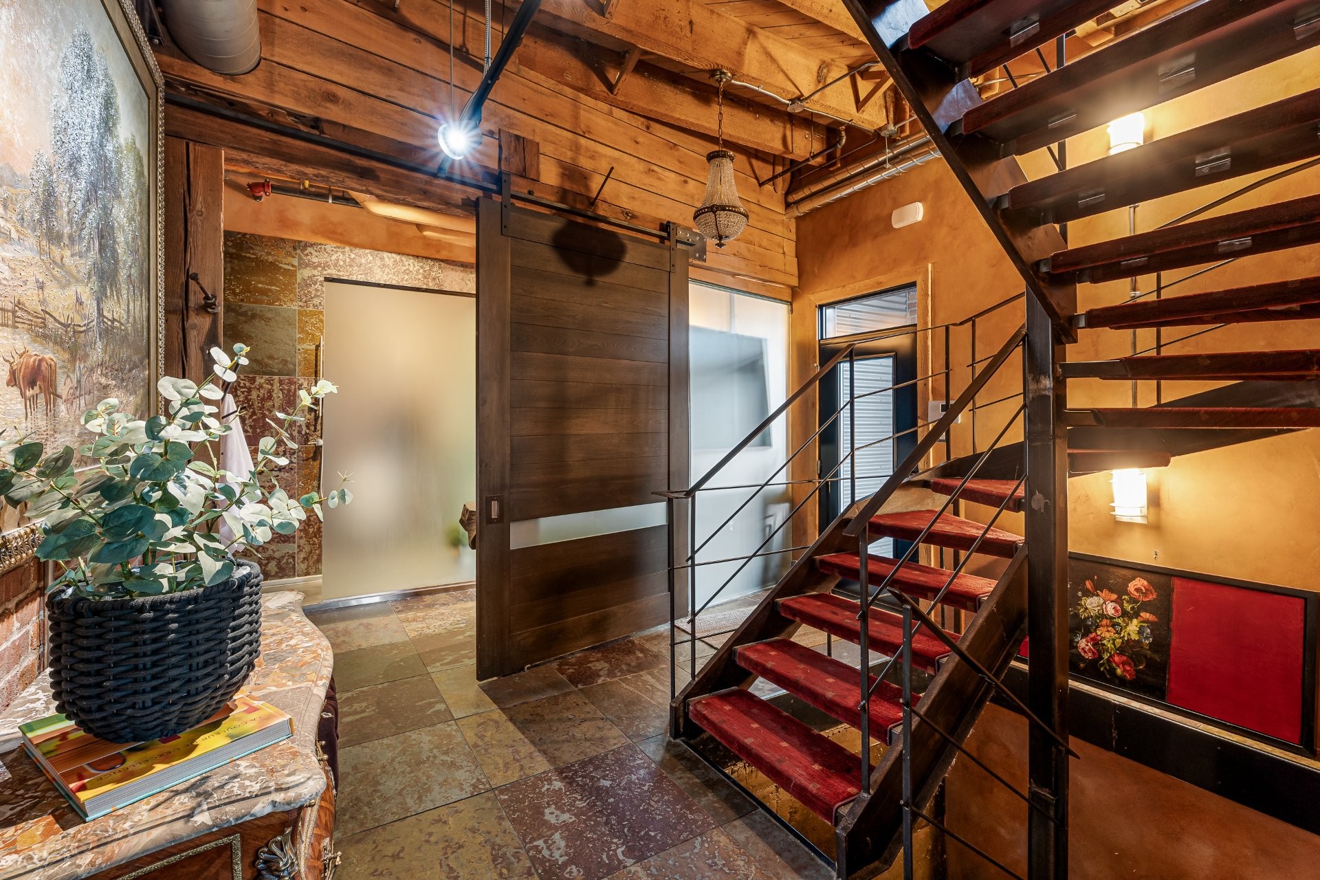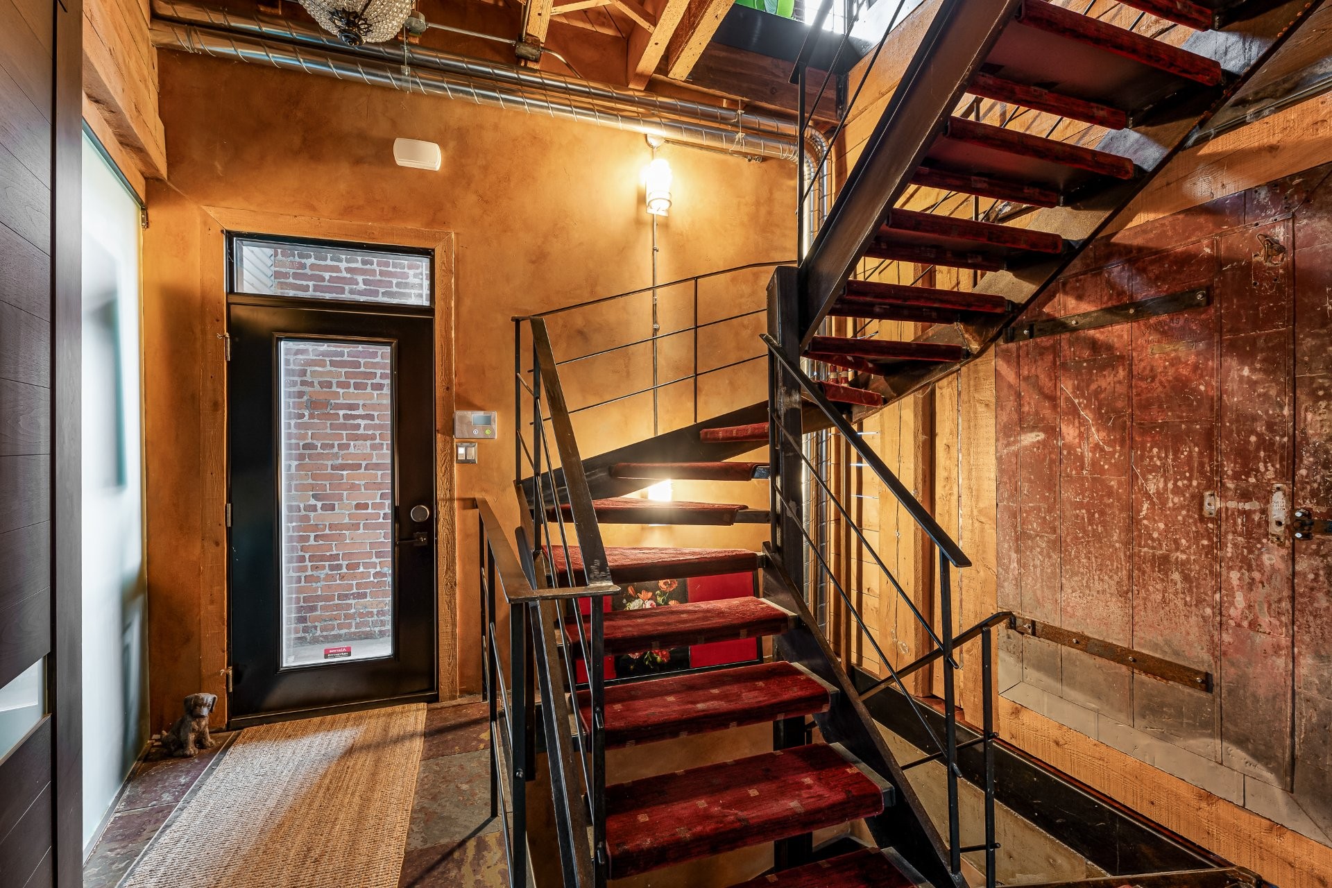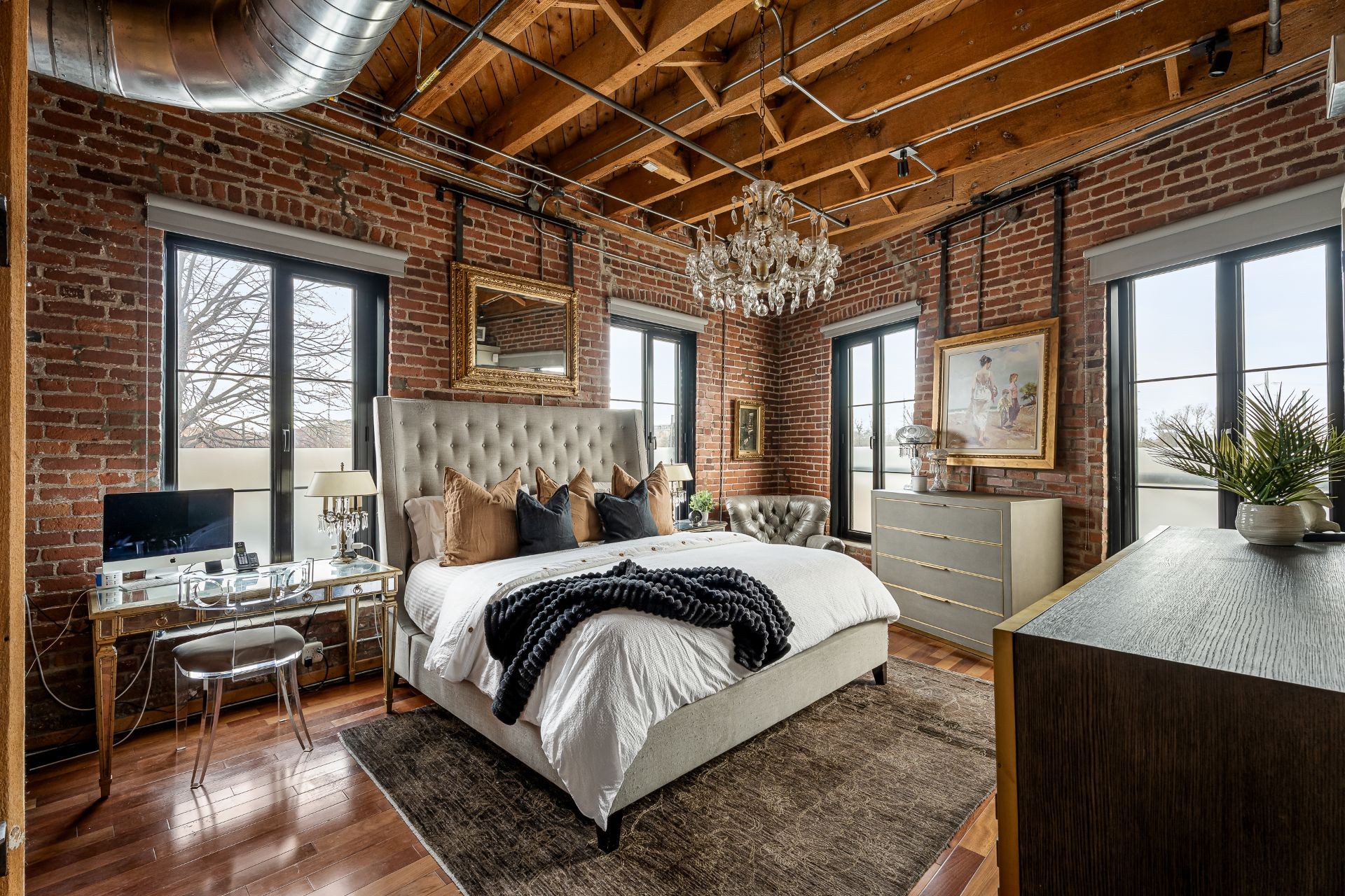 The space is a masterpiece of contrasts and craftsmanship. Soaring 14-foot ceilings, oversized windows, exposed brick, original sliding factory doors, wooden beams, and visible piping all nod to the building's industrial past--while tailor-made, high-end finishes add warmth and elegance throughout. Floors are a striking mix of exotic hardwood and natural slate, setting the tone for a home that's as rich in character as it is in comfort.