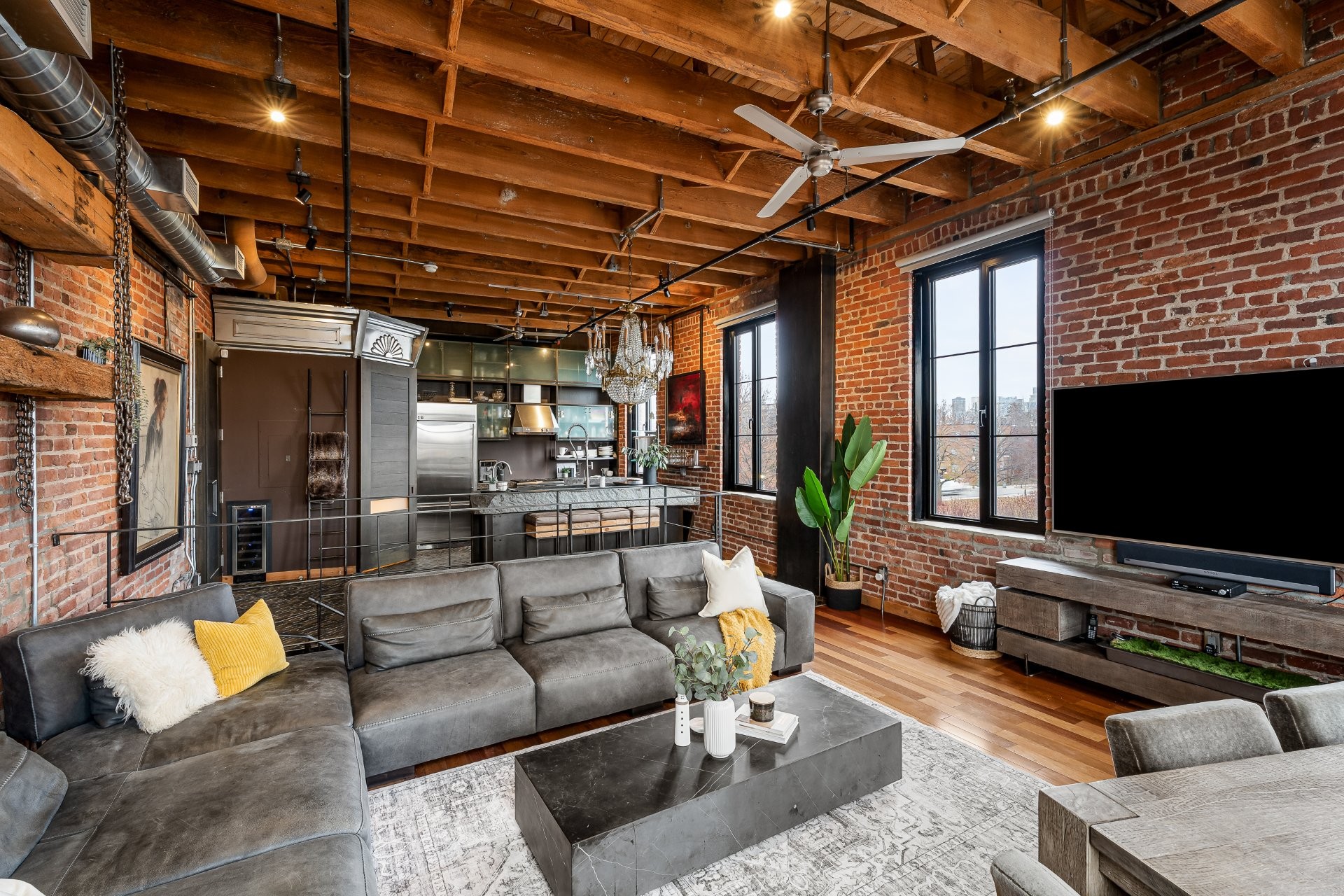 Steps from the Atwater Market and the Lachine Canal, this unique two-level home offers breathtaking views of the water and the city skyline. From the moment you enter through its private, secured street-level entrance, you'll feel like you've discovered a secret sanctuary--one that seamlessly blends raw industrial charm with refined luxury.